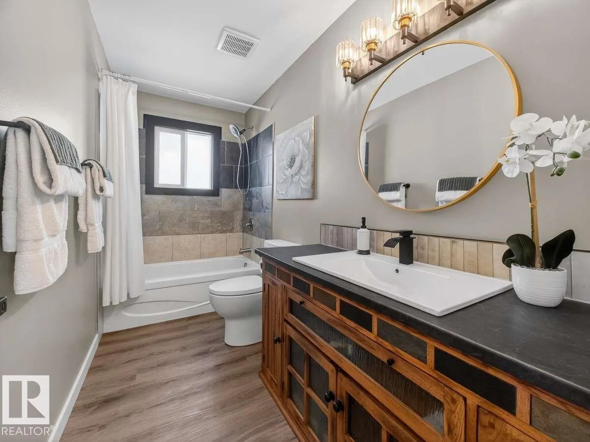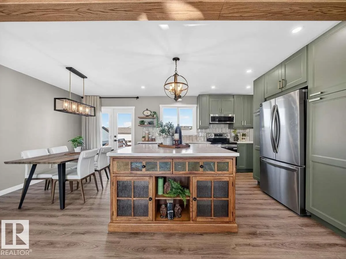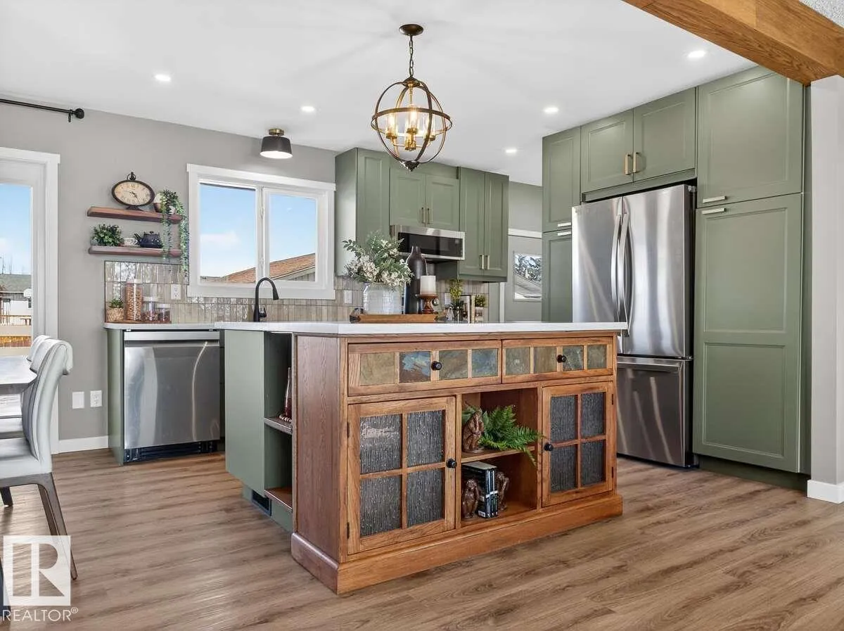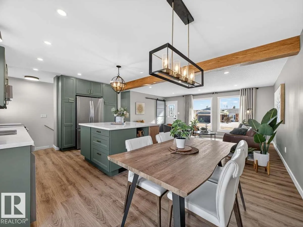For more info, please click on View Listing on Realtor® Website. This charming, detached bungalow blends modern updates with timeless character, offering a welcoming and functional layout across both levels. The main floor features 3 comfortable bedrooms and a full bathroom along with standout design elements including a wood beam in the open concept area. The heart of the home is the stunning new kitchen, integrating wood cabinetry which complements the new cabinets, complete with solid-surface countertops, a large island, and stylish finishes that make cooking and entertaining a pleasure. Fresh flooring, paint, and light fixtures add to the clean, contemporary feel, while new windows, R60 attic insulation, and a new hot water tank provide efficiency and peace of mind. The fully finished basement expands your living space with a spacious family room, a dedicated laundry room, a second bathroom with a walk-in shower, and plenty of flexible space for storage, hobbies, etc. (id:27476)