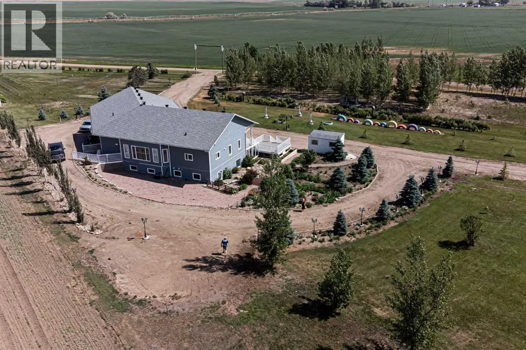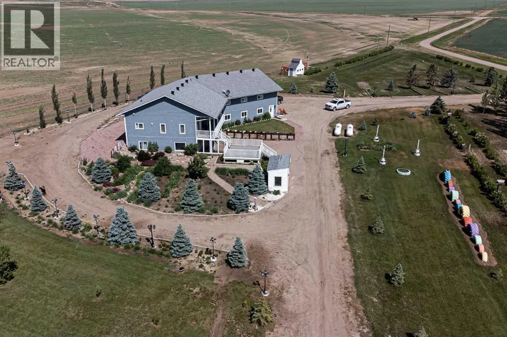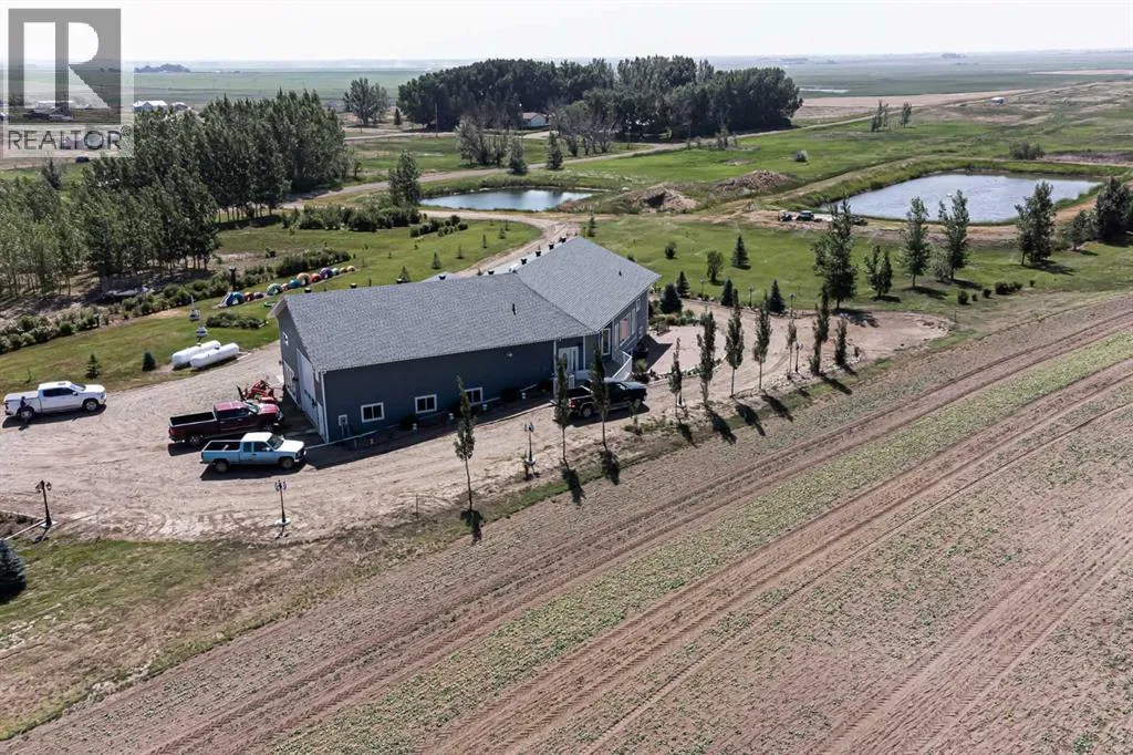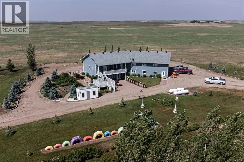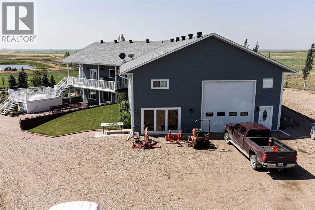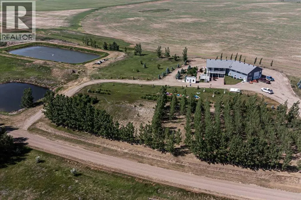 Country living with views as far as the eye can see, is what 11.61 Acre parcel of land can offer you and your family. This home is custom built and has storage and a place for absolutely everything. The egress in this home is outstanding. There are six entry/exits throughout the home. All doorways in the home are 36â wide making moving furniture a breeze. Whatâs really impressive is the main floor living and kitchen area with almost 14 foot vaulted ceilings, beautiful acacia hardwood floors, and a kitchen island that is 18 feet long and can sit 12 stools. The view from the living room is absolutely breathtaking. Not only does the kitchen have an impressive island, it also has been thought out very well with lots of electrical outlets, deeper cupboards, double stainless steel convection oven, touch control faucets, a sill granite sink with an instant hot water dispenser perfect for afternoon tea. The kitchen floor tile are 18â x 18â travertine floor which is stunning against the dark stained cabinets. The primary bedroom is right off of the kitchen area. The high ceilings host extra storage above the his and her closets. There is a built in surround system in the home. The ensuite also has tiled floors and a stacking laundry in the bathroom. The two windows in the en suite make it very bright. There is a tub/shower unit, low flush toilets, make-up counter and linen closet for extra storage. Up over the garage is an illegal suite with its own heating system. This is a perfect mother-in-law suite or just an extra bedroom. The suite does come finished with all appliances, including a washer and a dryer and has a Jacuzzi tub/shower. Thereâs also a large storage space beside the suite that could double as a library! There is a walkout basement in the home with several large windows, so it doesnât feel like a basement. The living space has a projector and screen as well as a stage area with built in speakers. The seller taught music lessons, and had her recitals here. (sta ge can be removed) Thereâs another good size bedroom in the basement and it is wired for TV/entertainment with a full bath not far away. The garage is absolutely massive 24â x 44â deep...a mechanics dream. Itâs fully equipped with a jib crane with a full bathroom. The plugs are endless. 3 x220 plugs and several 110 plugs with 20 amps so youâll never blow a breaker. There are 16 foot ceilings, so a lift easily could be installed. A full ventilation system, and the overhead garage door is 14â x 14â. Another special features is there are 3 fully functioning RV campsites. This acreage is located 15 Min. from Lomond where there is a school from k-12, grocery store, hardware store and restaurant. If youâre looking for peace and quiet, country living, look no further! (id:27476)