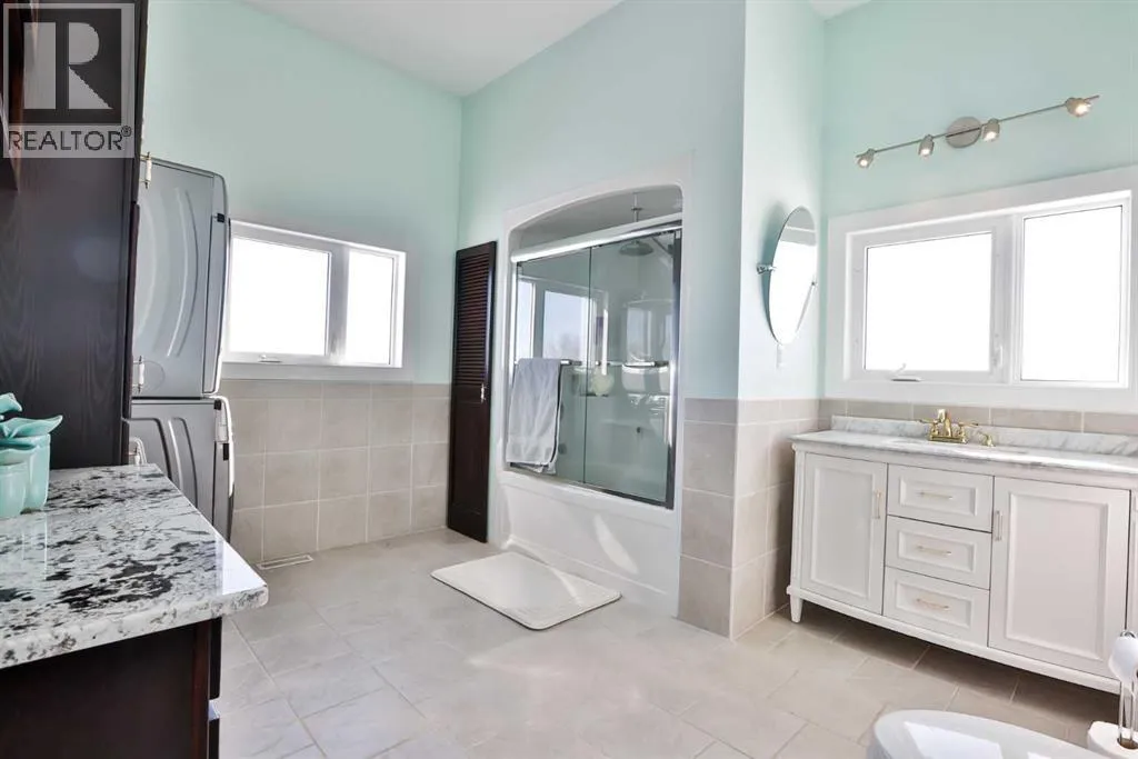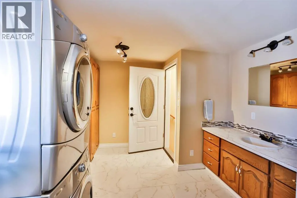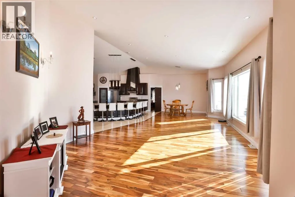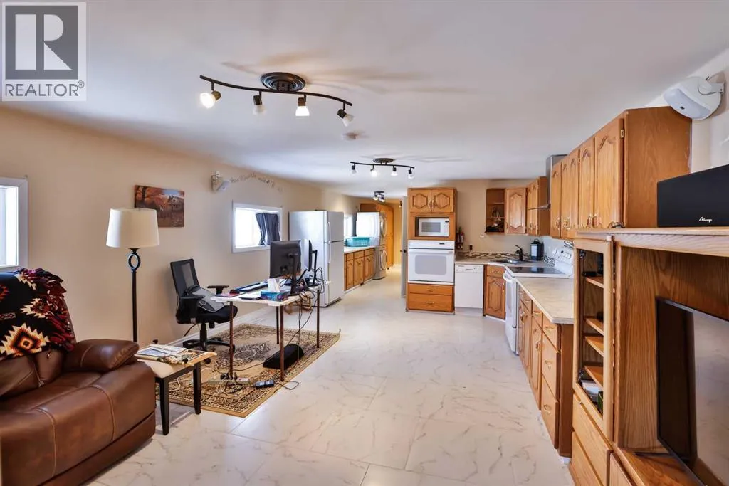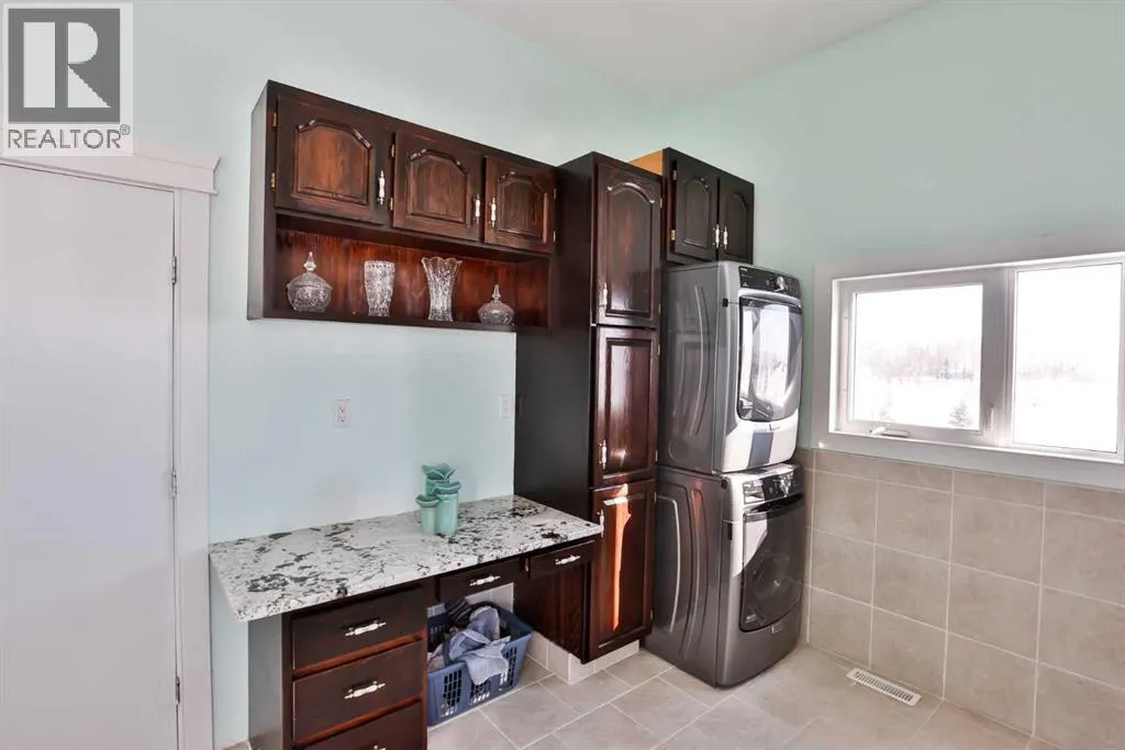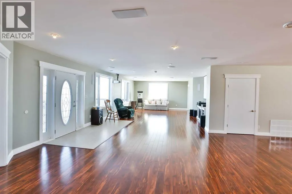 Country living with views as far as the eye can see, is what 11.61 Acre parcel of land can offer you and your family. This home is custom built and has storage and a place for absolutely everything. The egress in this home is outstanding. There are six entry/exits throughout the home. All doorways in the home are 36â wide making moving furniture a breeze. Whatâs really impressive is the main floor living and kitchen area with almost 14 foot vaulted ceilings, beautiful acacia hardwood floors, and a kitchen island that is 18 feet long and can sit 12 stools. The view from the living room is absolutely breathtaking. Not only does the kitchen have an impressive island, it also has been thought out very well with lots of electrical outlets, deeper cupboards, double stainless steel convection oven, touch control faucets, a sill granite sink with an instant hot water dispenser perfect for afternoon tea. The kitchen floor tile are 18â x 18â travertine floor which is stunning against the dark stained cabinets. The primary bedroom is right off of the kitchen area. The high ceilings host extra storage above the his and her closets. There is a built in surround system in the home. The ensuite also has tiled floors and a stacking laundry in the bathroom. The two windows in the en suite make it very bright. There is a tub/shower unit, low flush toilets, make-up counter and linen closet for extra storage. Up over the garage is an illegal suite with its own heating system. This is a perfect mother-in-law suite or just an extra bedroom. The suite does come finished with all appliances, including a washer and a dryer and has a Jacuzzi tub/shower. Thereâs also a large storage space beside the suite that could double as a library! There is a walkout basement in the home with several large windows, so it doesnât feel like a basement. The living space has a projector and screen as well as a stage area with built in speakers. The seller taught music lessons, and had her recitals here. (sta ge can be removed) Thereâs another good size bedroom in the basement and it is wired for TV/entertainment with a full bath not far away. The garage is absolutely massive 24â x 44â deep...a mechanics dream. Itâs fully equipped with a jib crane with a full bathroom. The plugs are endless. 3 x220 plugs and several 110 plugs with 20 amps so youâll never blow a breaker. There are 16 foot ceilings, so a lift easily could be installed. A full ventilation system, and the overhead garage door is 14â x 14â. Another special features is there are 3 fully functioning RV campsites. This acreage is located 15 Min. from Lomond where there is a school from k-12, grocery store, hardware store and restaurant. If youâre looking for peace and quiet, country living, look no further! (id:27476)