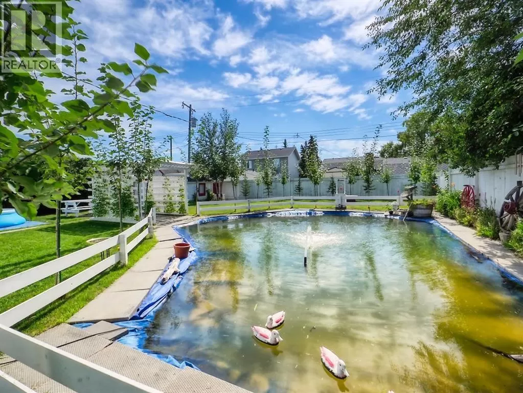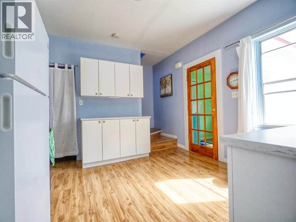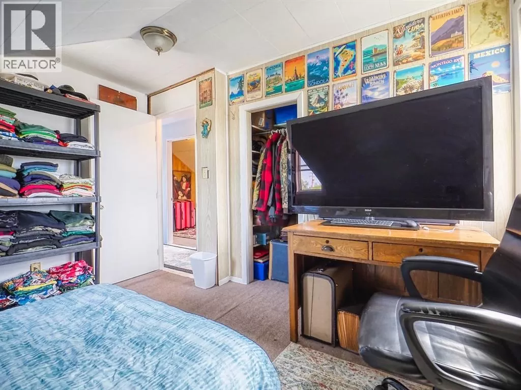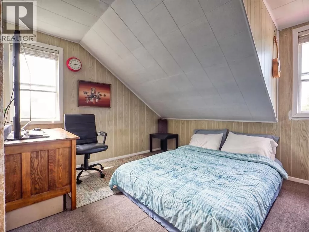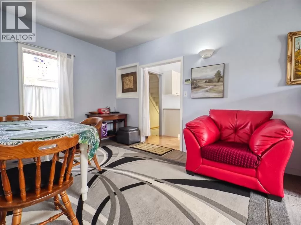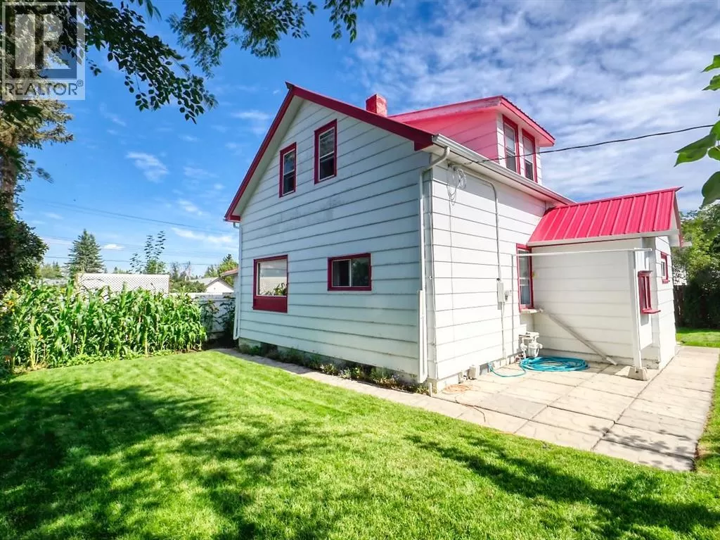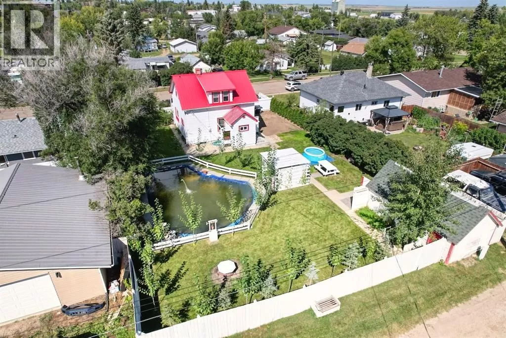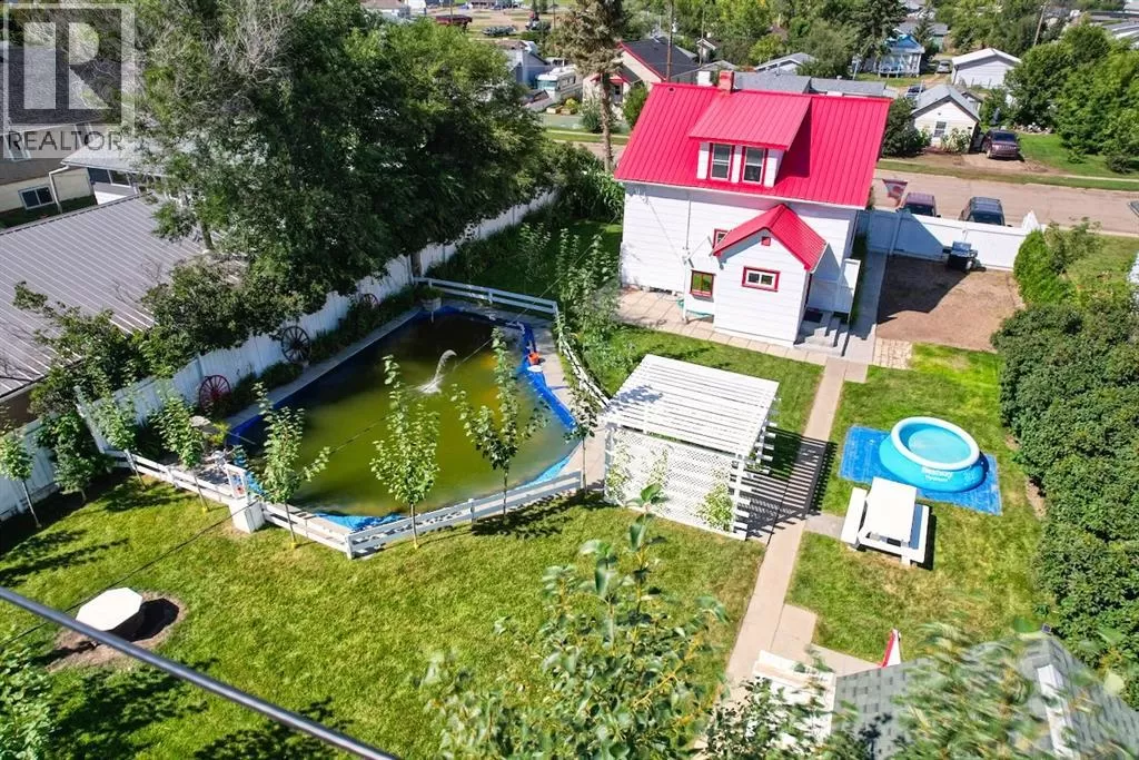 Don't miss checking out this one and a half story home in Trochu. The yard is literally your own oasis with flowers, garden, trees and a pond. This is a bright home with lots of natural light, Kitchen, dining area, living room and bathroom comprise the main floor, the bedrooms are upstairs. Out back is a shed / garage to use as a workshop or storage, would fit a smaller vehicle. (id:27476)
