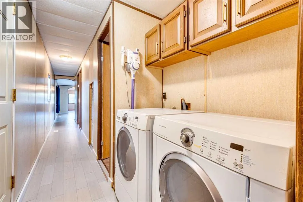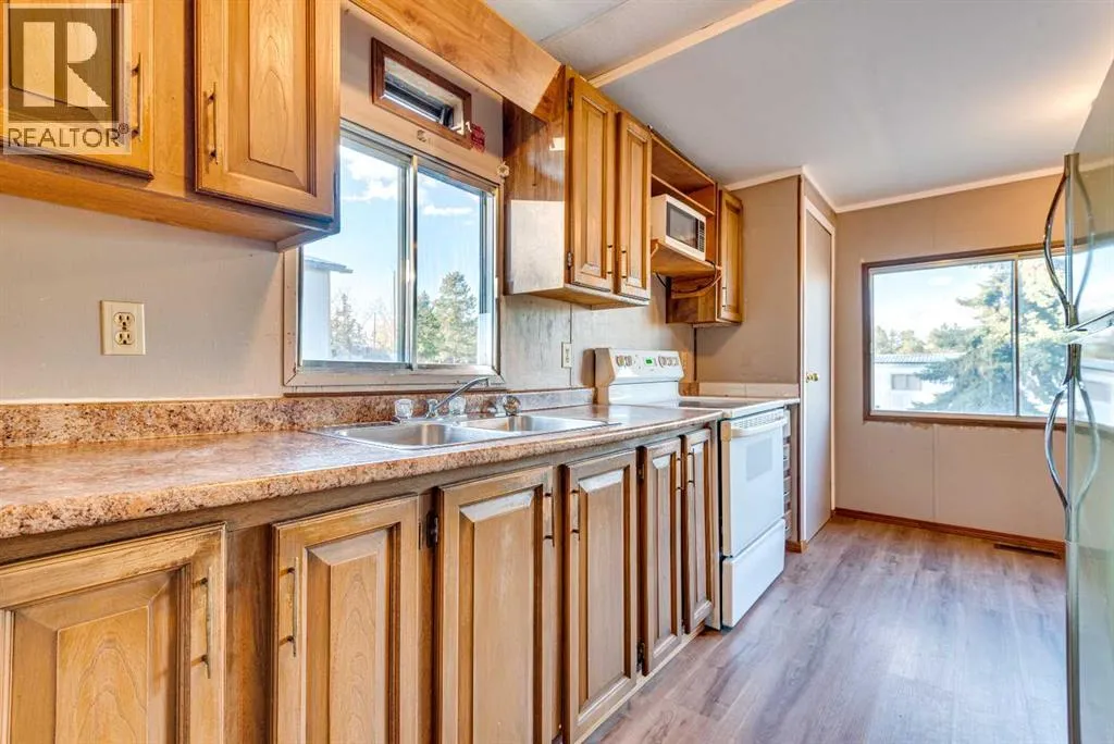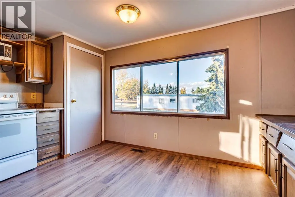 Move in Ready, 3 bedroom 1 bath mobile with many upgrades in the recent 2 years, many this summer, on a rented lot. Home features a bright and functional layout with a spacious living area, refreshed finishes, and a simple kitchen with a bright dining room, a larger primary and 2 more bedrooms of a comfortable size, and the full bathroom has recent updates. .Other upgrades include but are not limited to brand new skirting, new front stairs and lighting and the underbelly has been secured and refreshed with extra insulation, this September, new flooring throughout recently. This mobile is situated in the Trochu Mobile home park, with a very reasonable $330.00 a month lot lease, that covers water, sewer and garbage pick up, within walking distance to the local school, arena, pool, and downtown core as well as the local arboretum and numerous beautiful walking trails. (id:27476)