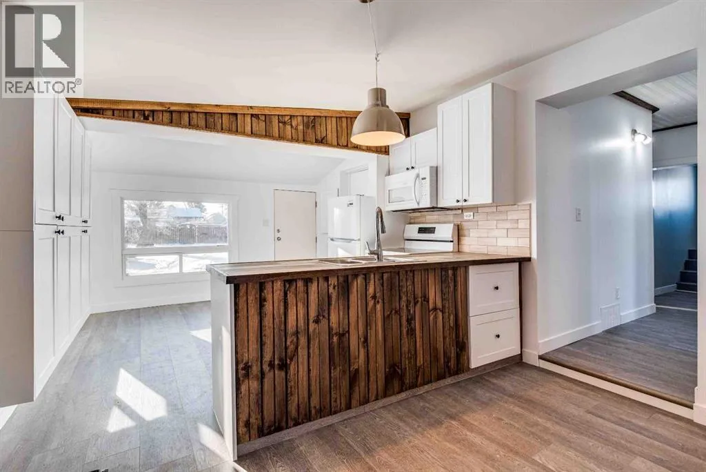 Quaint! Charming! Adorable! Welcome to 205 Trochu Aveâa fully renovated home, seamlessly blending modern chic with old house charm leaving you with a warm cottage comfort. The beautiful living room, boasts a custom hearth and gas stove., open to a trend and modern kitchen, and the home boasts a large master suite, with a second bedroom and a finished attic provides ample space for a single homeowner a couple or smaller family, main floor laundry, all the comforts of home. The yard is spacious and ready for your hearts desire, be it a new garage, or an expansive garden or a bit of both. This home is central Trochu and walking distance to the golf course, school, and the growing downtown. This is a cute old house made "all but new" with new appliances, flooring, paint, windows, siding, metal roof, hot water tank, and new Pex waterlines, and even a new 100 amp service. (id:27476)