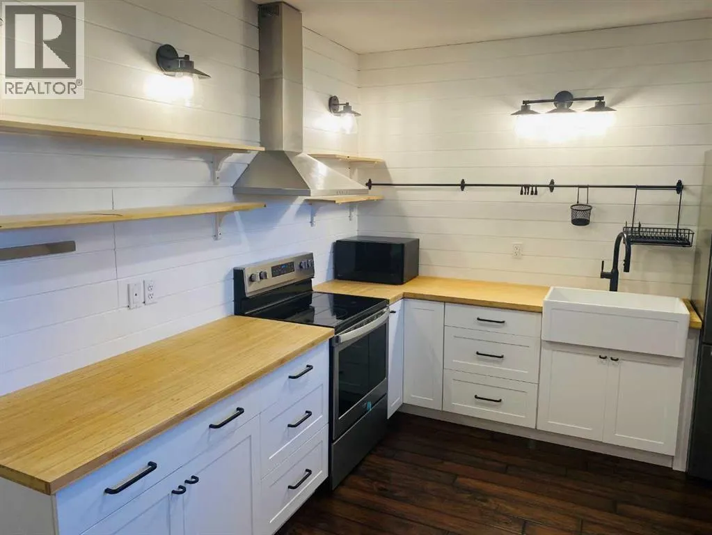 Experience the ultimate blend of mountain luxury and small-town charm in this meticulously maintained, custom-built masterpiece. The heart of the home is a stunning living room anchored by a Banff Springs style stone fireplace and flooded with natural light from massive, king-sized windows. For the culinary enthusiast, the gourmet kitchen shines with unique bamboo countertops, a warm pine-plank ceiling, and plenty of space for family gatherings. Retreat to spa-inspired bathrooms or the convenience of a main-floor primary bedroom, all while staying perfectly cool thanks to central air conditioning. This property also features a premium, self-contained Legal Suite boasting 9-foot ceilings, stainless steel appliances, and its own dedicated furnace and hot water systemâoffering incredible potential for rental income or multi-generational living. Located in the welcoming community of Trochu, this architectural gem offers a sophisticated lifestyle you won't want to miss! (id:27476)