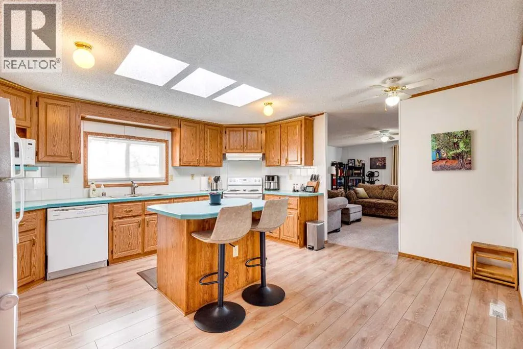Discover comfort, space, and convenience at 154 Devilder Ave, located in the charming Town of Trochu. Just blocks from the Trochu Golf & Country Club and within walking distance to schools, shopping, and the industrial area, this home offers an ideal blend of lifestyle and practicality. This well-kept recently updated 4-bedroom manufactured home features an open-concept layout with a bright and spacious living room, a functional kitchen with an eat-at island, and a formal dining area perfect for gatherings. Large windows fill the home with natural light, and the impressive 3-season sunroom adds valuable extra living space to enjoy much of the year. The home includes a 4-piece main bathroom and a 4-piece ensuite off the primary bedroom, providing comfort and privacy for the whole family. Outside, the fully fenced yard offers room to relax, garden, or play. A double garage accessible from the back alley, along with an additional parking pad, ensures plenty of space for vehicles, toys, or storage. A great opportunity in a friendly community â move-in ready and waiting for its next chapter. (id:27476)