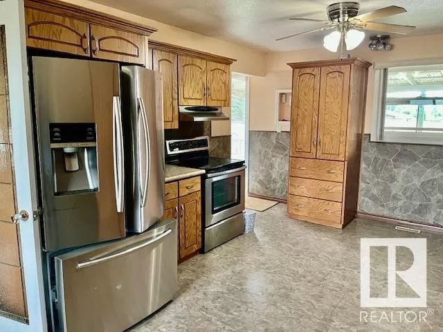 This bungalow has 4 Bedrooms plus a den - 2 bathrooms. There is an enormous kitchen and dining area and a spacious living room facing north. The Basement is fully finished and has a rec. room, bathroom, a den and bedroom plus the laundry/furnace room has plenty of storage space. Relax on the south facing covered deck or work in your insulated double garage. There is also a shed and space for the garden. The Kids can enjoy the public playground right in the back alley. Close to schools and shopping. Quick possession available and all the appliances stay, One of the bedrooms on the main level was converted to a laundry room if you choose or you can move it downstairs. (id:27476)