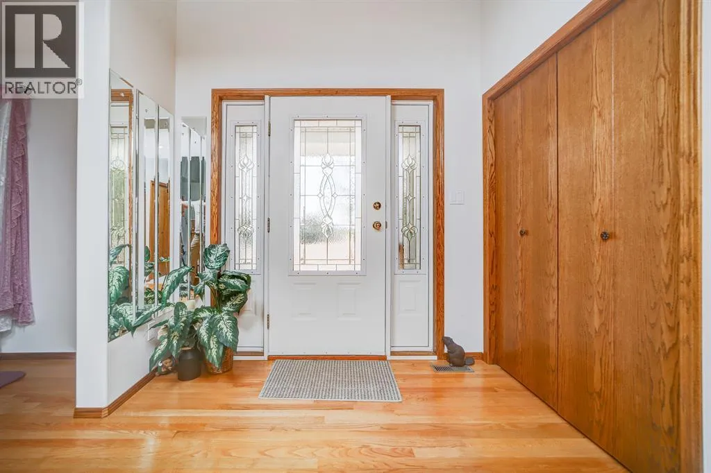 Looking for an acreage with space for the bustling family? Look no further. With over 3,000 square feet, this home will have space for everyone! As you enter the front door, you'll find a formal sitting area to the left, with glass doors and hardwood floors. From there you'll head into the main living room area featuring a grand vaulted ceiling allowing for extra windows that give more natural light, a gas fireplace for cold winter days and a door leading to the north deck. The Kitchen is loaded with cabinets and an island making it the perfect space for preparing your favourite family meals which you'll enjoy in the dining room right off the kitchen. The main floor is finished off with main floor laundry, an abundance of storage closets, a second access to the north deck and of course, access to the double garage that has a bonus storage space with double doors that open for quads, bikes or any toys needing inside storage. Up the spiral staircase to the upper level, you'll find an open space great for kids to play or for the family computer area or even to practise musical instruments that overlooks the living room. There are 2 large bedrooms and a full bathroom as well. In the basement there's still more space yet! The large family room is perfect for the teens to hang out, use as a library area or whatever creative idea sparks you. Relax in the spacious hot tub room that also conveniently has a 3pc bathroom. A theatre or games room would be the perfect use for the other large room also in the basement, the space in this house goes on and on! Hold family gatherings, birthday parties, reunions or the like on the huge lawn that is perfectly treed on the west side of the home. Plus there's irrigation for the trees and lawn too and it's all located just north of Vauxhall on highway 36. (id:27476)