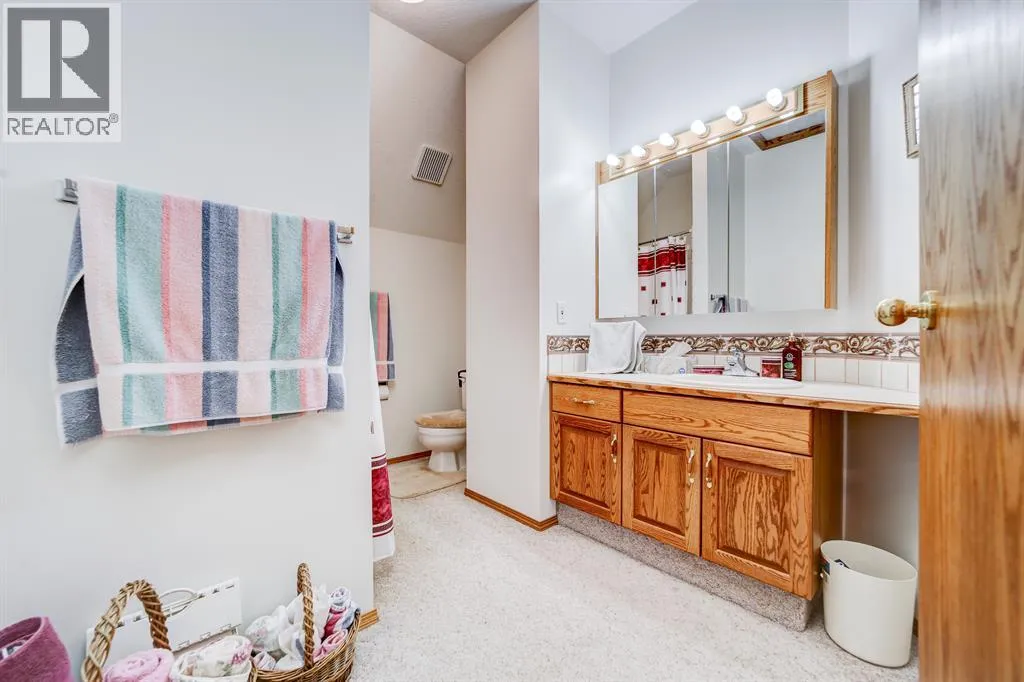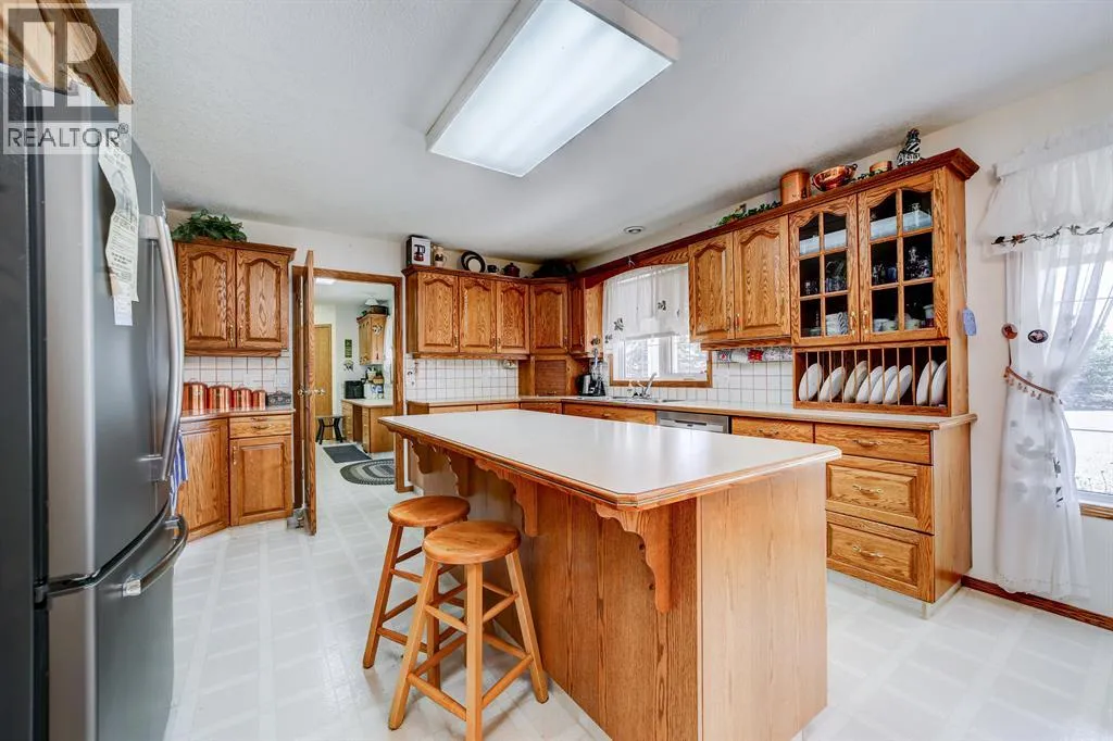 Looking for an acreage with space for the bustling family? Look no further. With over 3,000 square feet, this home will have space for everyone! As you enter the front door, you'll find a formal sitting area to the left, with glass doors and hardwood floors. From there you'll head into the main living room area featuring a grand vaulted ceiling allowing for extra windows that give more natural light, a gas fireplace for cold winter days and a door leading to the north deck. The Kitchen is loaded with cabinets and an island making it the perfect space for preparing your favourite family meals which you'll enjoy in the dining room right off the kitchen. The main floor is finished off with main floor laundry, an abundance of storage closets, a second access to the north deck and of course, access to the double garage that has a bonus storage space with double doors that open for quads, bikes or any toys needing inside storage. Up the spiral staircase to the upper level, you'll find an open space great for kids to play or for the family computer area or even to practise musical instruments that overlooks the living room. There are 2 large bedrooms and a full bathroom as well. In the basement there's still more space yet! The large family room is perfect for the teens to hang out, use as a library area or whatever creative idea sparks you. Relax in the spacious hot tub room that also conveniently has a 3pc bathroom. A theatre or games room would be the perfect use for the other large room also in the basement, the space in this house goes on and on! Hold family gatherings, birthday parties, reunions or the like on the huge lawn that is perfectly treed on the west side of the home. Plus there's irrigation for the trees and lawn too and it's all located just north of Vauxhall on highway 36. (id:27476)