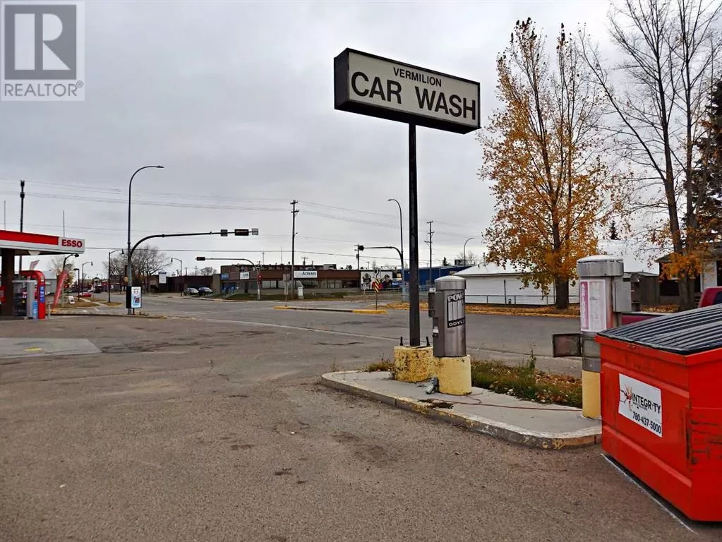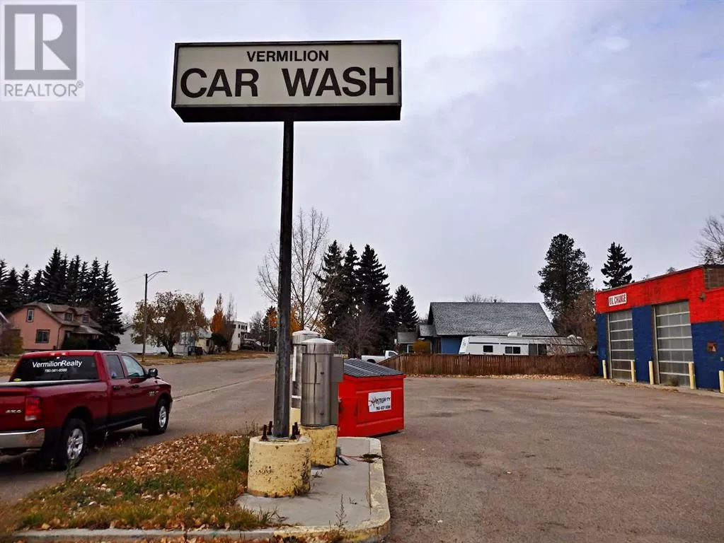 Opportunity Awaits. Situated in the heart of Vermilion, AB, boasting 3 full lots, this 3600+ SQ FT building supplies 5 bays with newer glass paneling. Although previously used as a car wash, it has mechanics-bay written all over it. One bay provides an industrial hoist while another supplies a mechanics bay/pit. The remaining 3 are currently set-up as wash bays. Also set-up is a main-office area as well as a public washroom. All 3 lots are zoned: C3 Highway Commercial which provides a wide array of suitable business (id:27476)