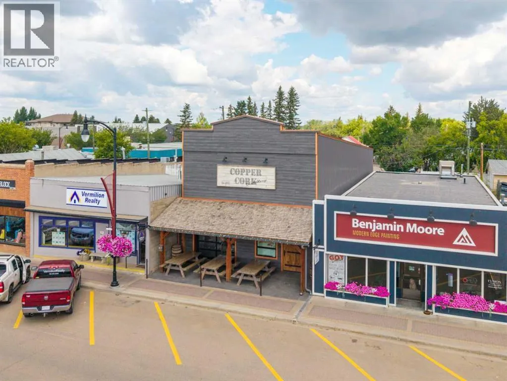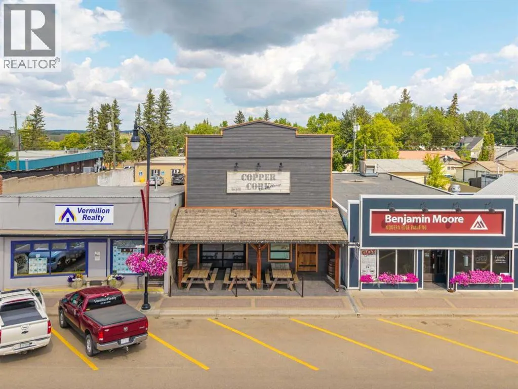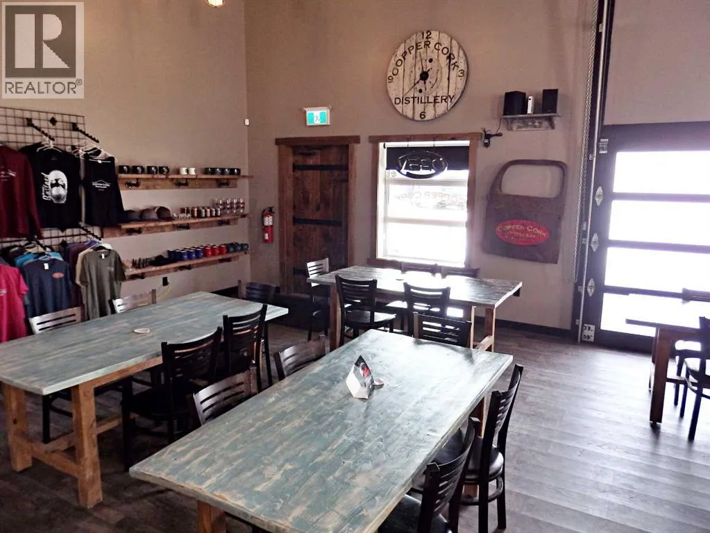 Incredible Business Opportunity. The Copper Cork Distillery situated in the Heart of Vermilion, AB. Built in 2018, the company has since attained a highly recognizable business with a strong brand identity. Lock, Stock, and Barrel; a completely turn-key operation with all inventory and assets included within list price. List Available: 800L Copper Still, delivery truck, all equipment etc. No expenses spared upon building; stamped concrete, rooftop HVAC unit, in-floor heat, PRIME location choice, oversized doors, as well as heavy-duty tables/chairs etc. Top of the line. The 2,240 SQ FT building has a capacity of 87 patrons (with patio included.) A gem of a building and the only distillery in-town. (id:27476)