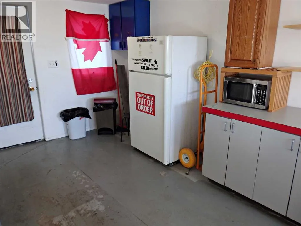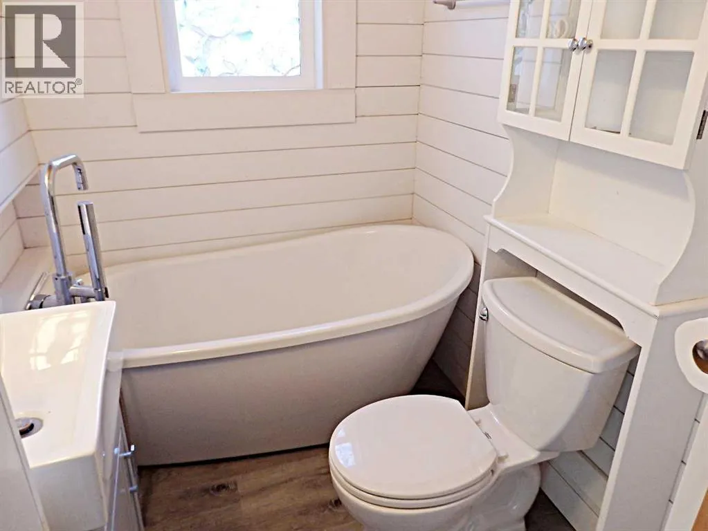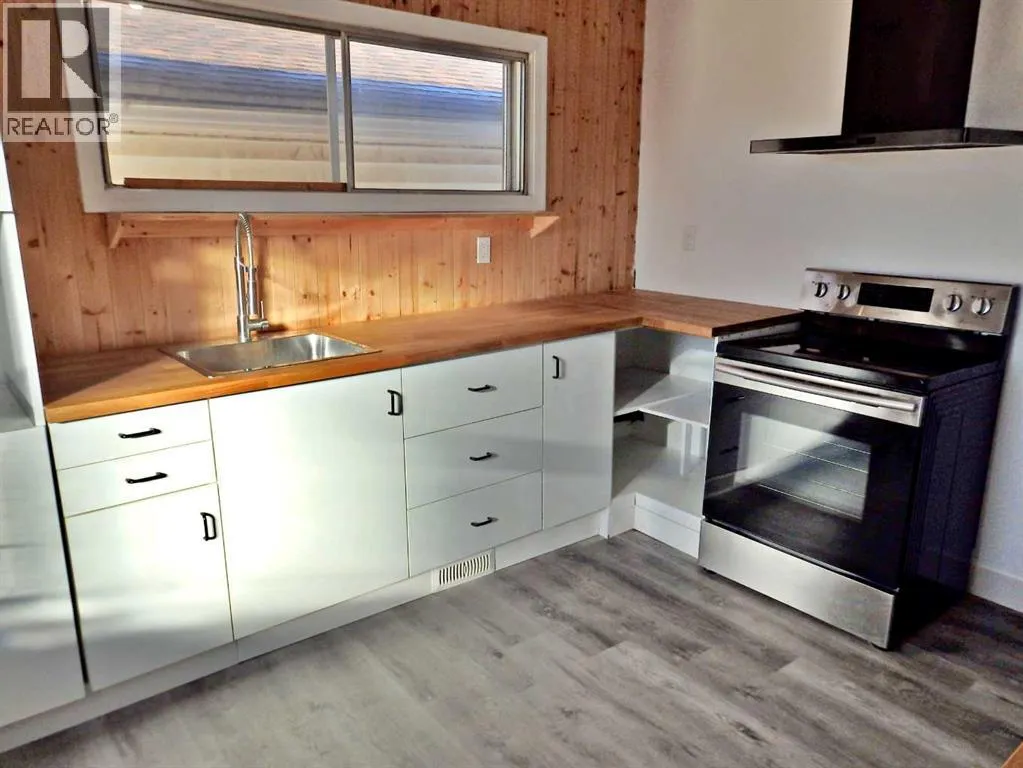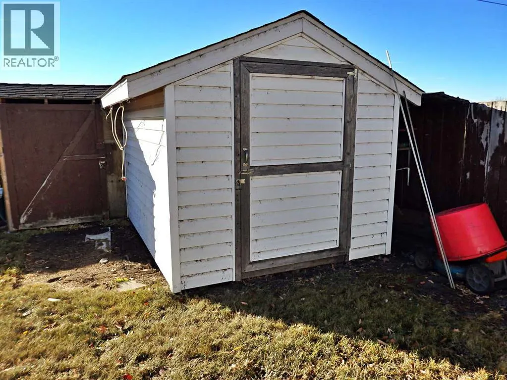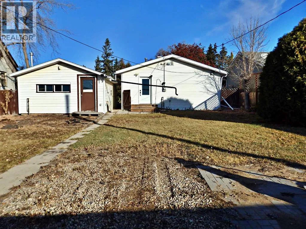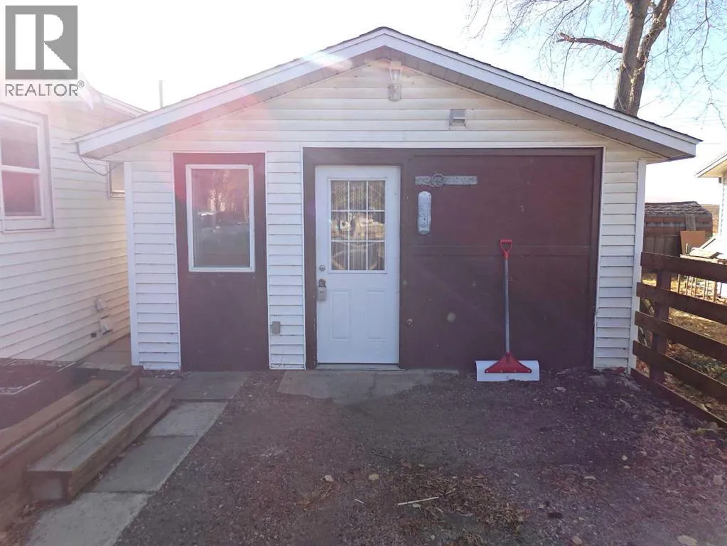 Renovated Bungalow Backing onto Greenspace! A true 'secluded' feel on this oversized lot, situated on the edge of town near a playground and a soccer field. The garage has been transformed into a "Man Cave / She Shed" with it's own heat source, water supply, bathroom, kitchen etc. Inside the home: all new flooring, sub-floor, bathroom & kitchen reno, as well as re-modelling of the floorplan. Fully-fenced back yard with an R.V outlet, alley access, two large storage sheds, as well as a fire pit area. Vacant and can accommodate an immediate possession transfer. (id:27476)