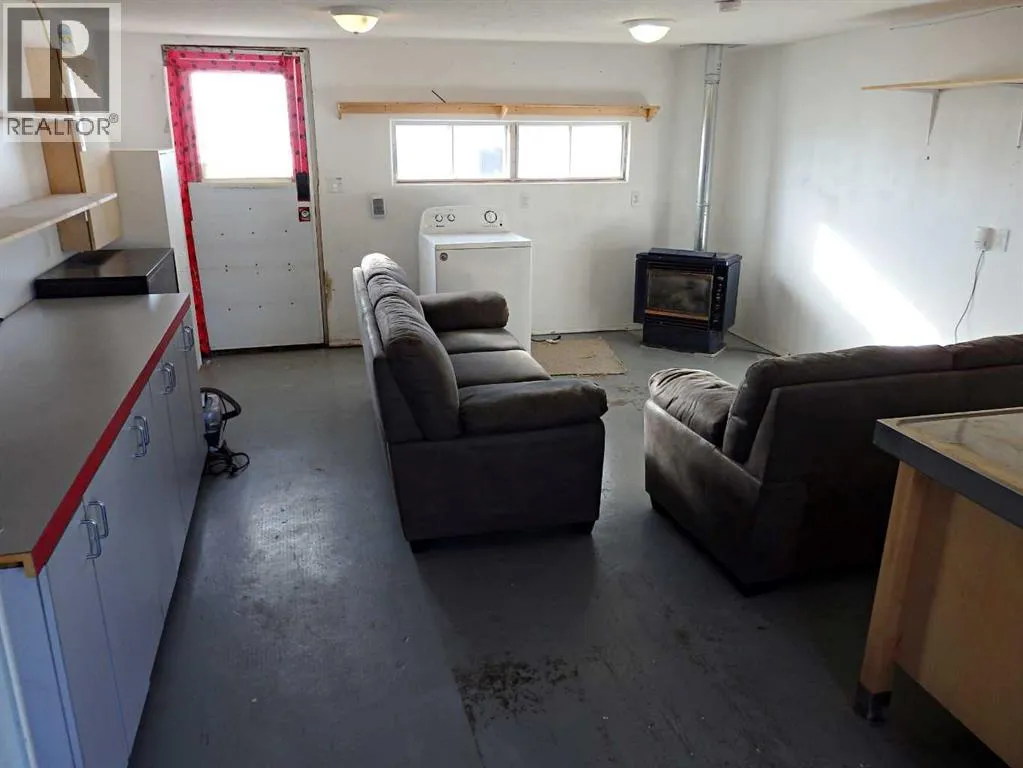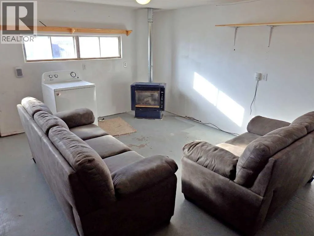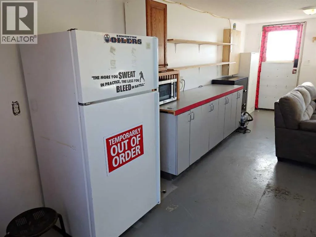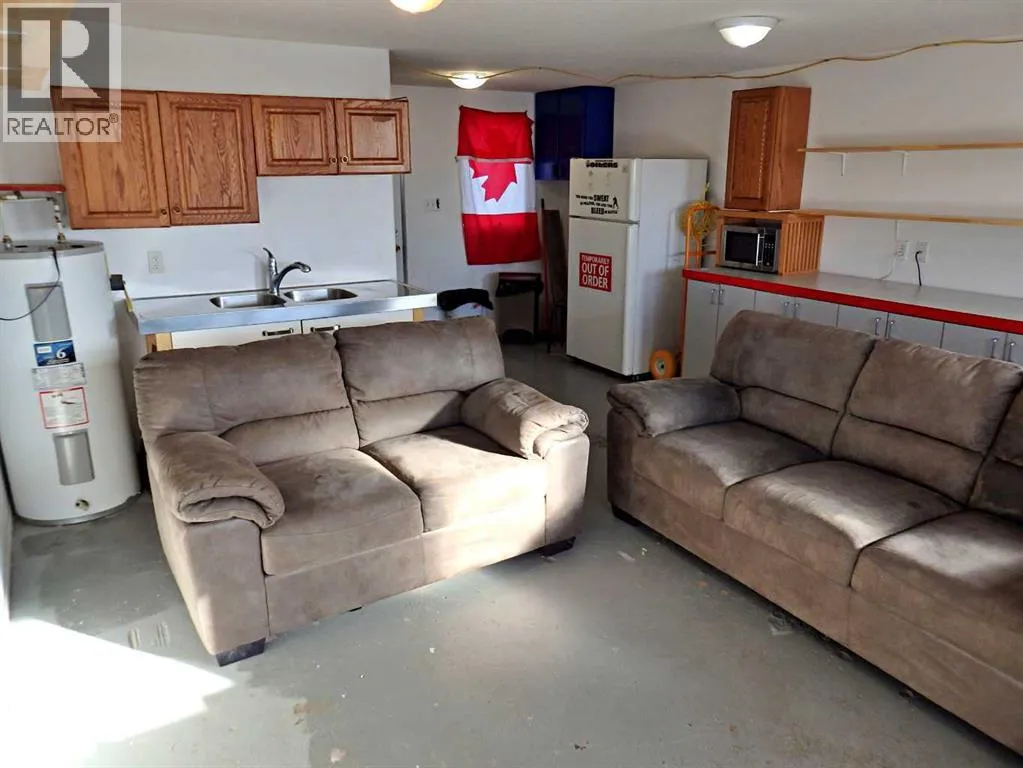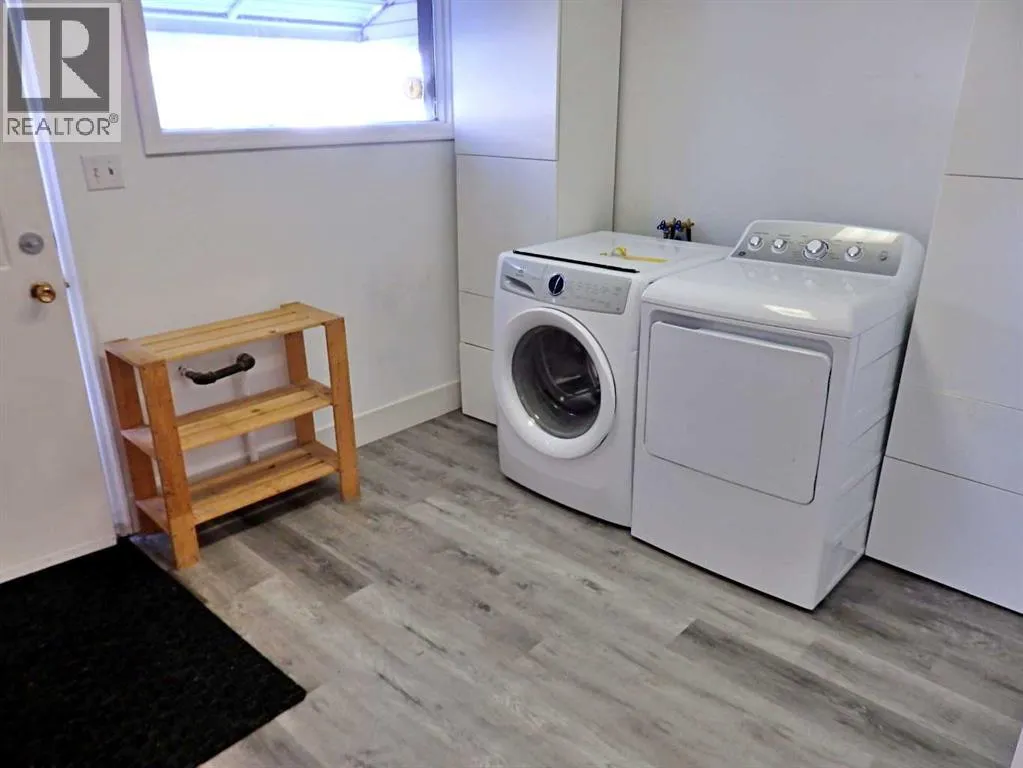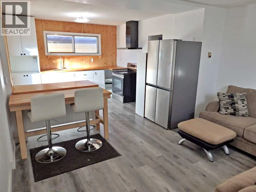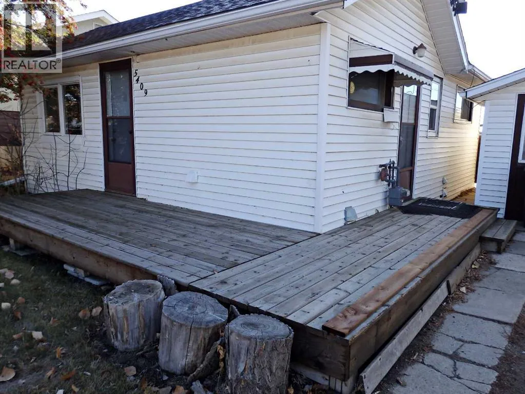 Renovated Bungalow Backing onto Greenspace! A true 'secluded' feel on this oversized lot, situated on the edge of town near a playground and a soccer field. The garage has been transformed into a "Man Cave / She Shed" with it's own heat source, water supply, bathroom, kitchen etc. Inside the home: all new flooring, sub-floor, bathroom & kitchen reno, as well as re-modelling of the floorplan. Fully-fenced back yard with an R.V outlet, alley access, two large storage sheds, as well as a fire pit area. Vacant and can accommodate an immediate possession transfer. (id:27476)