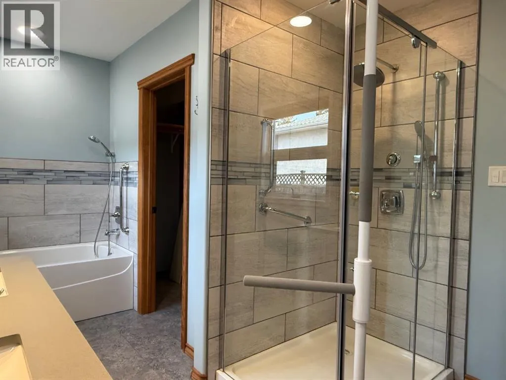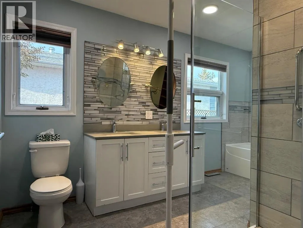 This beautifully updated home welcomes you with an inviting open concept layout, providing a spacious and connected atmosphere. The large kitchen flows seamlessly into both the dining and living areas, making it perfect for daily living as well as entertaining guests. Ample cupboard space and a corner pantry ensure plenty of storage, while the beautiful gas stove and quartz countertops create an elevated, classy feel in the kitchen.A convenient butler pantry expands the functional space, offering additional counters, storage, a second fridge, and a sink, ideal for busy households or hosting gatherings. From the kitchen, step out onto the sunny southwest facing wraparound deck, perfect for afternoon relaxation or enjoy your morning coffee on the east facing deck.The primary bedroom features a walk in closet and a stunning five piece ensuite, created to relax and unwind. On the lower level, you'll find an additional bedroom, a full bathroom, a spacious family room, and a generous storage area, ensuring comfort and versatility for every member of the household.Outside, the property boasts a heated double garage and a carport, both with convenient access from the back alley. This setup offers practical solutions for parking and storage, enhancing the overall functionality and appeal of the home. For your yard tools and equipment, the 9' x 20' shed can hold it all! This is an unique home with beautiful finishes, inviting and warm, looking for the next owners! (id:27476)