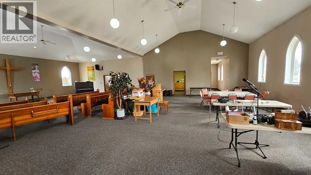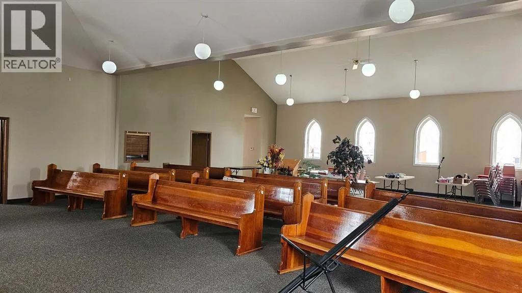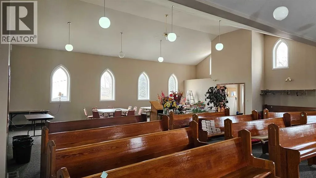 A beautiful former church in Veteran is looking for a second life. Recently renovated and in excellent condition, the main level of this church features eye-catching vaulted ceilings that are sure to make an impression. Enjoy all the natural light from the multiple large pointed-arch windows. There are also two spacious single-occupant bathrooms, a kitchen and a rear meeting room. This church also has an unfinished basement that has been a storage facility, but has great potential to be much more. Imagine the potential of this 3136 square foot building. Check out this great open floor plan that can easily become your future business or residence in the future. (id:27476)