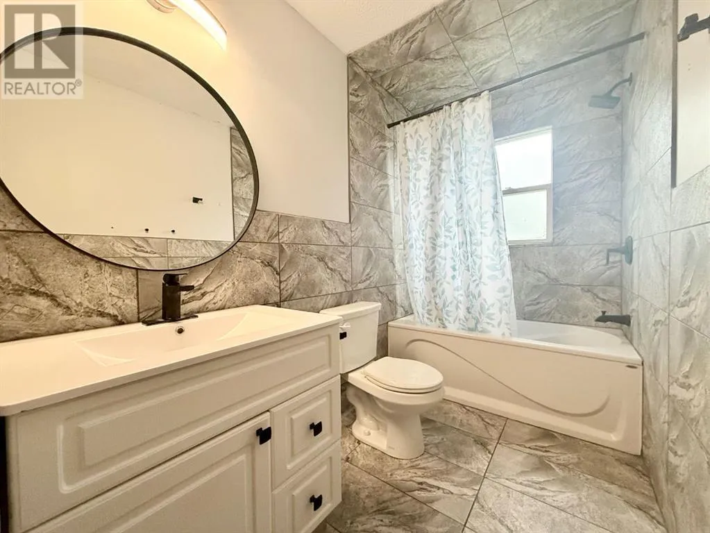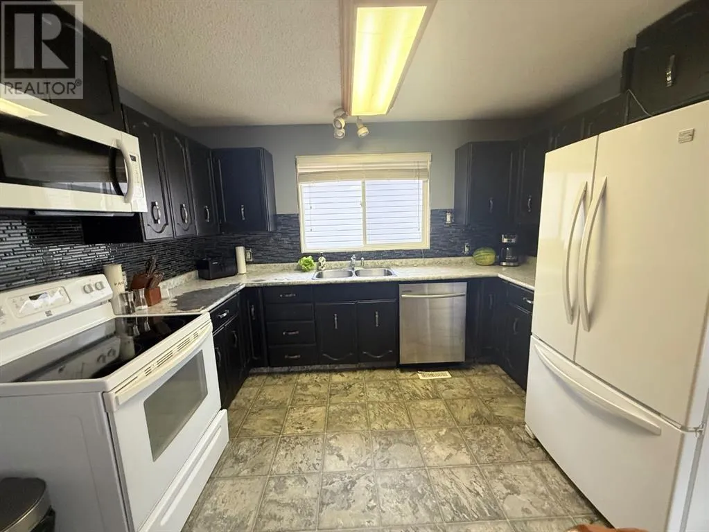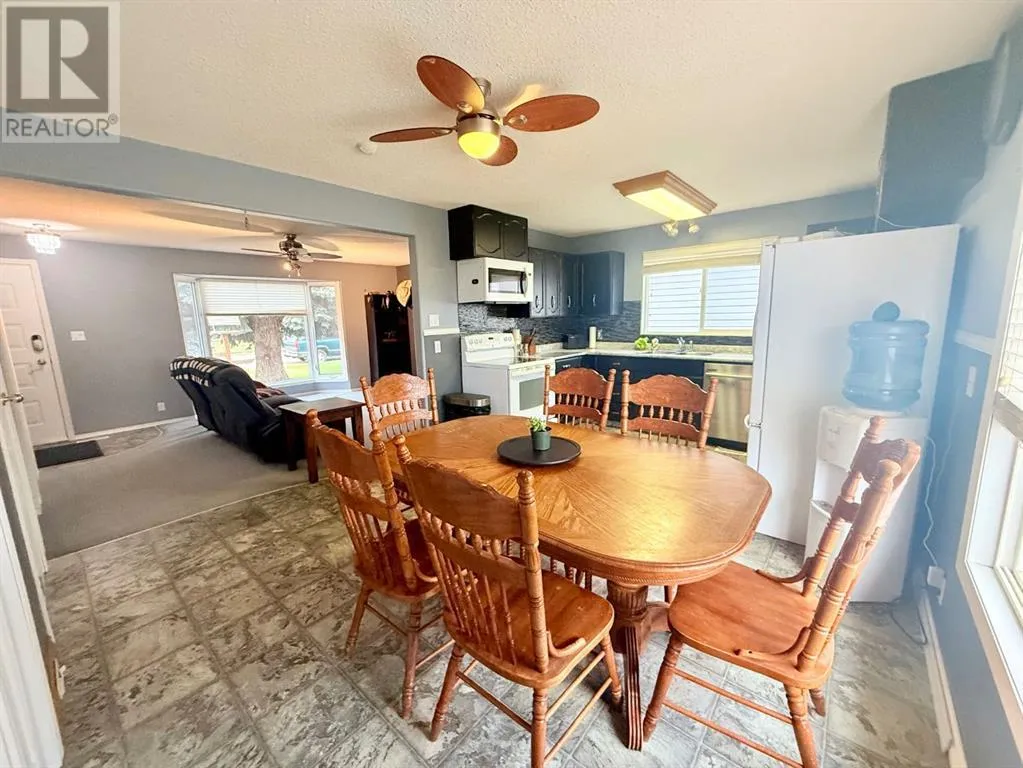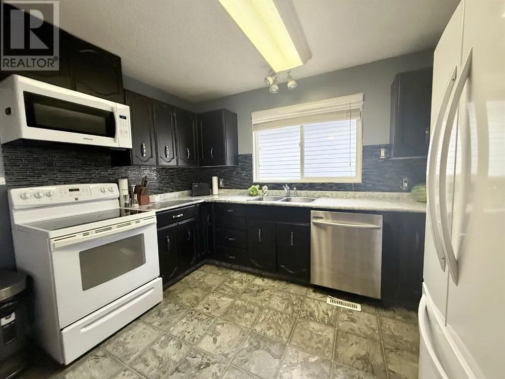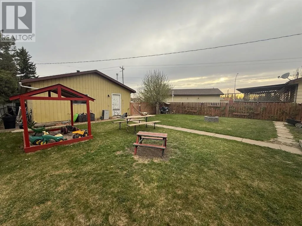 This well-maintained 3-level split in Viking offers incredible value and space for the whole family. As you approach the home, you're greeted by a beautifully front yard featuring a mature evergreen, a lush lawn, and a convenient roadside sidewalk. Step inside to a welcoming entry that flows into the spacious living room, complete with a large bay window that floods the space with natural lightâperfect for enjoying neighborhood views or birdwatching. The main floor also hosts a bright dining area and a spacious kitchen with ample counter space, ideal for family meals and entertaining. A back door off the dining room provides easy access to the large backyard. Upstairs, you'll find a generously sized primary bedroom with a walk-in closet, plus two additional bedroomsâperfect for kids, guests, or a home office. The renovated 4-piece bathroom boasts a fresh, modern look with stylish tile work. The lower level features a huge rec/games room, a beautifully updated 3-piece bathroom, a storage room, and a laundry area within the mechanical room. Need extra storage? The crawl space beneath the main floor is finished with plywood flooring to give you plenty of additional space. Outside, the expansive backyard is built for enjoyment with a cozy firepit, a covered sandbox, and a single parking pad. But the star of the show is the massive 34x24 heated garageâideal for vehicles, projects, or a workshop. Viking is a vibrant community offering a K-12 school, hospital, golf course, multiplex, and stunning night skies free from city light pollutionâperfect for stargazing and catching the Northern Lights. Be sure to check out the 3D virtual tour to fully appreciate everything this fantastic property has to offer! (id:27476)
