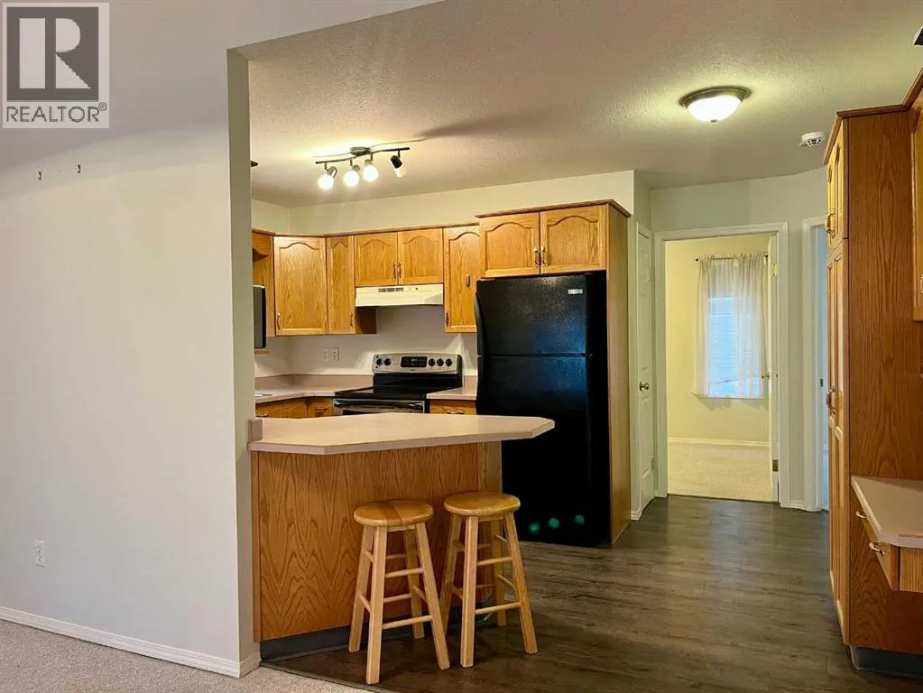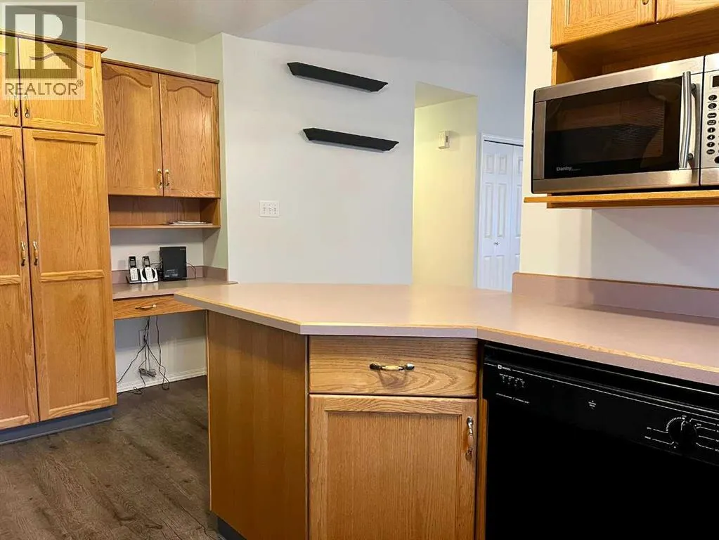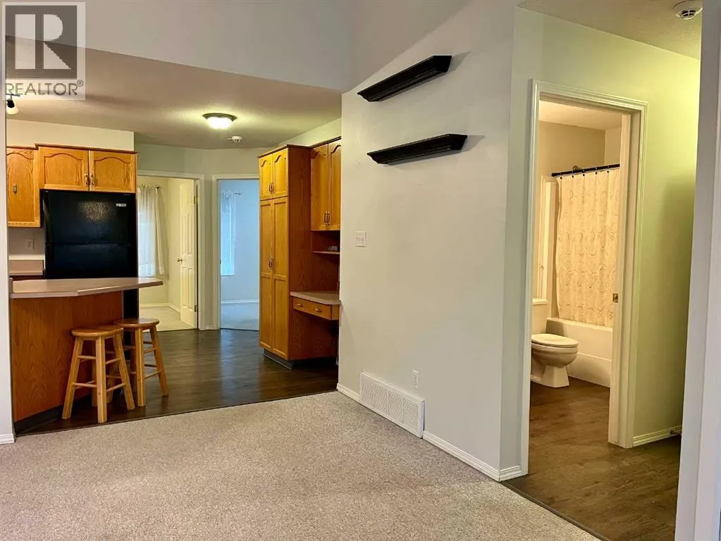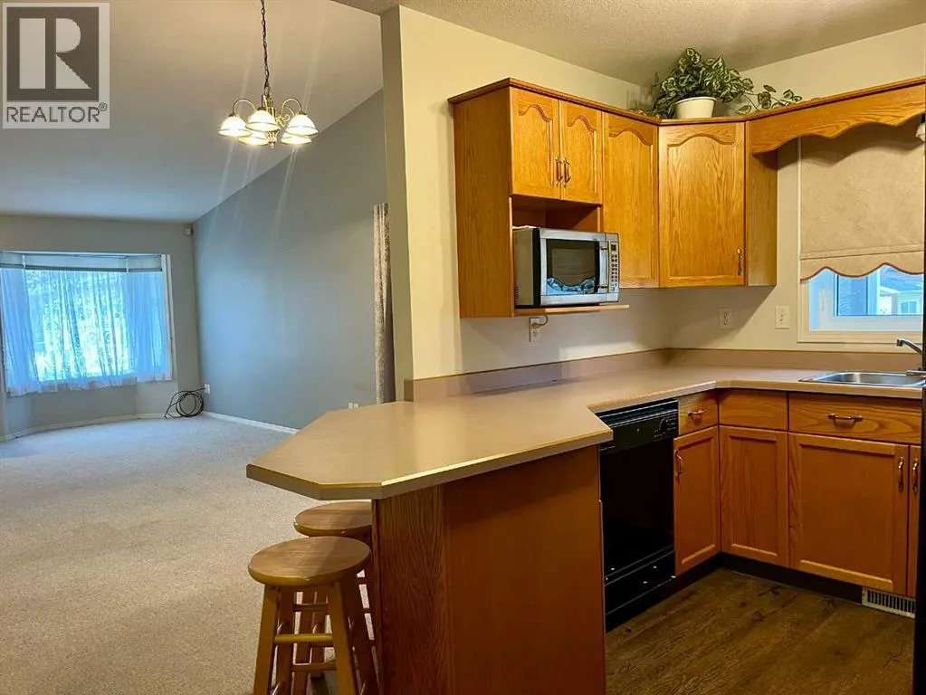 This zero step duplex in Viking is ideally located in the Viking Villas complex where the snow and grass are taken care for you- the perfect place to live if easy living is for you! With 1103 sq ft of main floor space, there is ample room to spread out. An open concept living room and kitchen space lends itself well to entertaining and having friends and family over. Oak cabinetry with a pantry cabinet, a phone desk and u-shaped kitchen design give just the right amount of storage. A generous sized master bedroom with walk-in closet and 3-piece bathroom for your own private oasis. And a second bedroom is great for guests or hobbies! The 4-piece bathroom and laundry complete the main floor. Downstairs, walls and drywall are done and only needs flooring and the ceiling finished! The perfect place for even more storage or lots more living space, with a bathroom already roughed in. An attached single garage to keep the snow off! Your deck off the dining area is enclosed and a fantastic hang out place for nearly any season!! This unit is clean, well maintained and move-in ready. Updates include: Furnace (2023), Air Conditioning (2024), Furnace Humidifier (2025), Stair Lift. (id:27476)