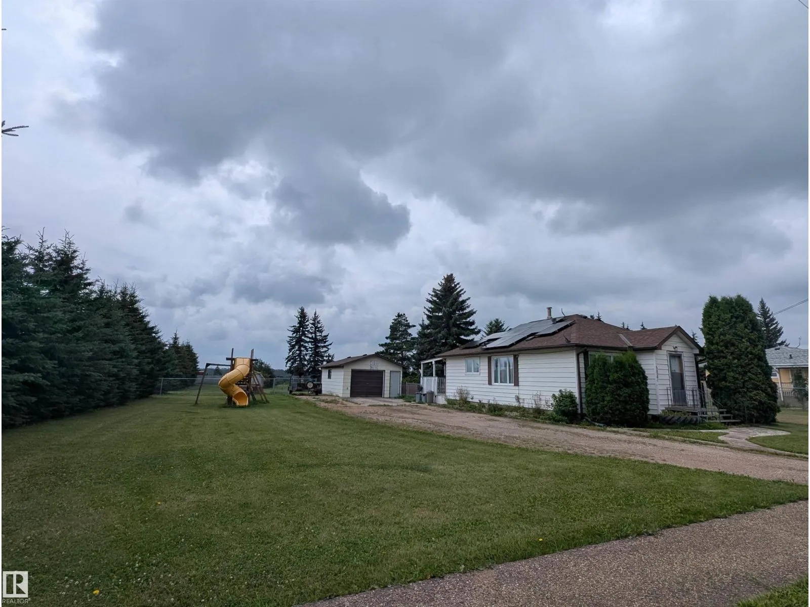Say hello to value and goodbye to power bills with this homes grid tied solar system that generates 800kw/h yearly, enough to comfortably supply a family of three. A fully insulated and heated over sized single garage with work benches is a warm benefit during frigid winter months. Chain link fencing, a/c, new triple pane windows, new shingles, new hwt, and updated electrical panel. The basement is bright and open with new basement windows, one with proper egress allowing for an additional bedroom. There is a water well on the property with a pump for watering the trees, grass and gardens. The rear covered deck has a BBQ natural gas line hookup. Horse shoe pits, fire pit, along with sheds, greenhouse, and garden make the spacious back yard have a park like feel. Many recreational lakes and trails inhabit the area. The famous Iron Horse trail runs through the historic Vilna village and offers a staging area for ATV and horse back riders alike. Non-smoking home. Clean solid home. Quick possession available. (id:27476)