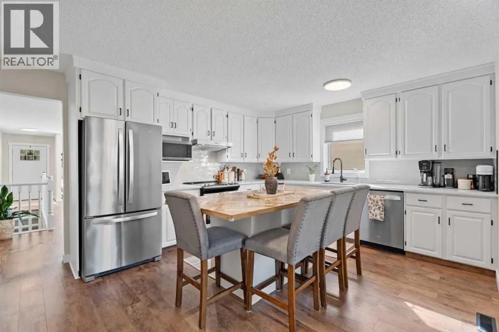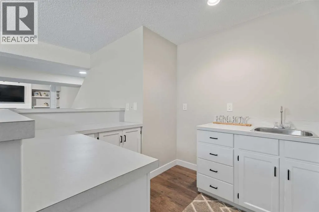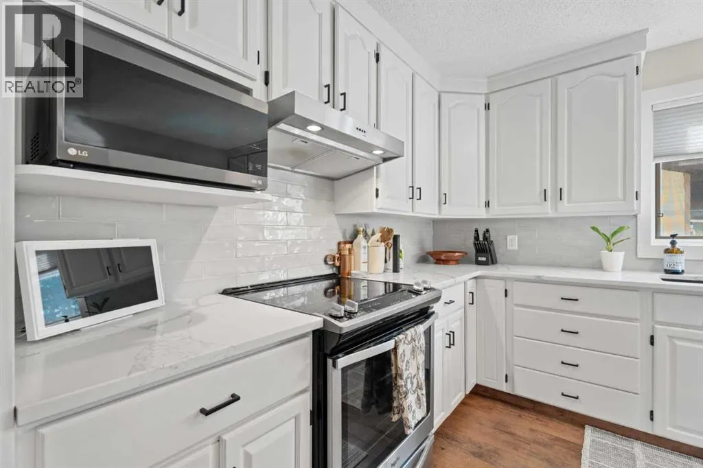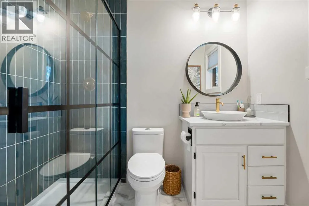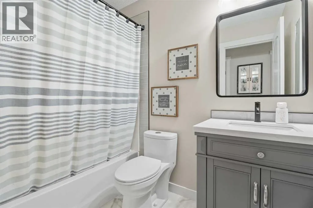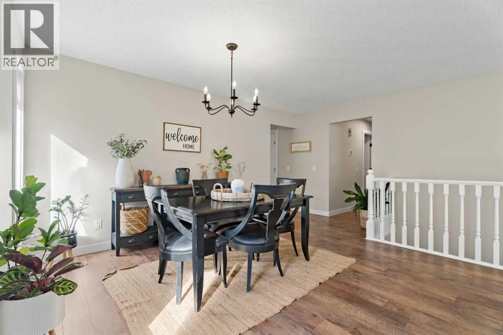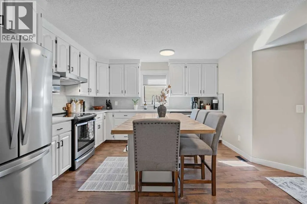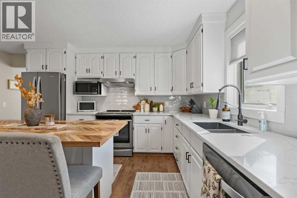 Discover this stylishly renovated front-drive bungalow in the welcoming community of Vulcan. This home offers five bedrooms and three full bathrooms, is fully finished, and ready for you to move in and enjoy. Its stucco exterior and covered front porch, set on a mature, tree-lined street, provide exceptional curb appeal. Step inside to beautifully updated spaces featuring vinyl flooring throughout the living areas, fresh paint and trim, and well-designed living spaces. The front room offers both formal dining and living, leading into an upgraded kitchen with quartz countertops and stainless steel appliances. From the kitchen, enter the sunroom overlooking a spacious backyard perfect for relaxing or entertaining family and friends. On the main floor, find two generous secondary bedrooms, convenient laundry with garage access, an updated four-piece bath, and a primary suite with walk-in closet plus a stunning three-piece ensuite. Comfort is ensured year-round by newer furnace and air conditioning systems. The fully finished basement features a large recreation room with a gas fireplace and bar area, two additional bedrooms, a modern three-piece bathroom, and ample storage space. Vulcan is located midway between Calgary and Lethbridge on Highway 23 a vibrant Southern Alberta Community. The town has embraced its shared name with the iconic Star Trek planet, there are lots of Star Trek themed attractions to check out. Check out the shops, furniture store, grocery, restaurants, parks, schools, hospital, recreation facilities and the community events. Schedule a private showing with your favourite agent today. (id:27476)