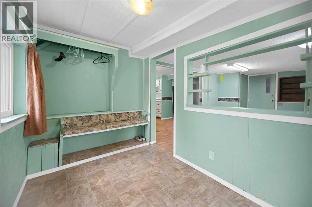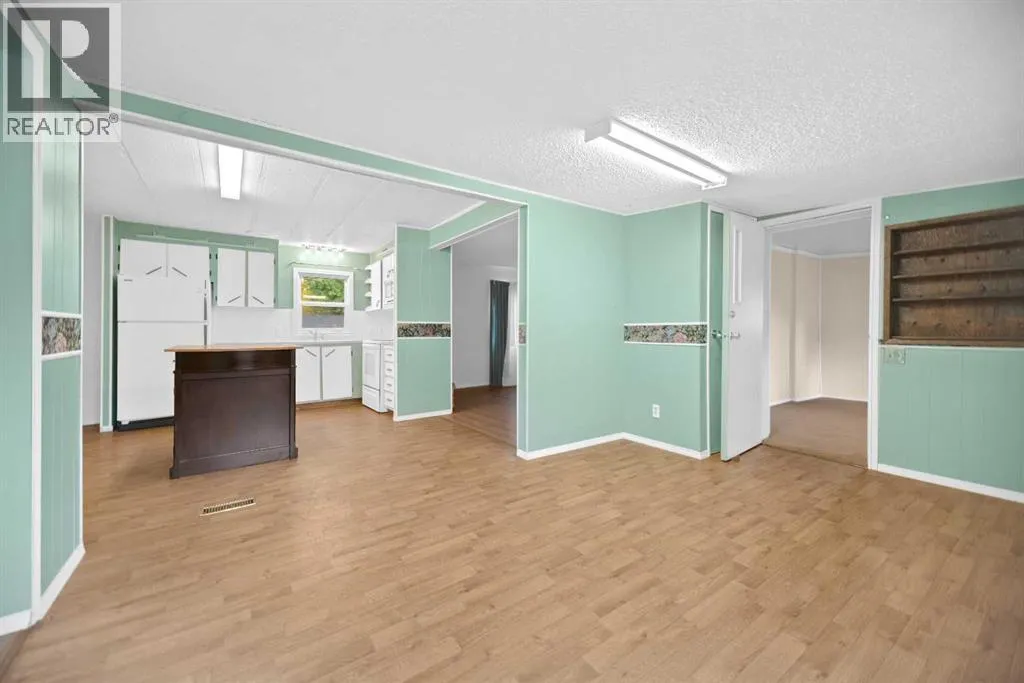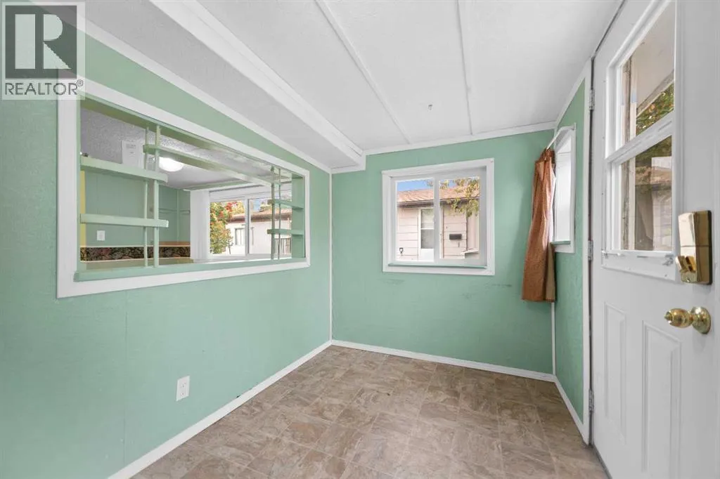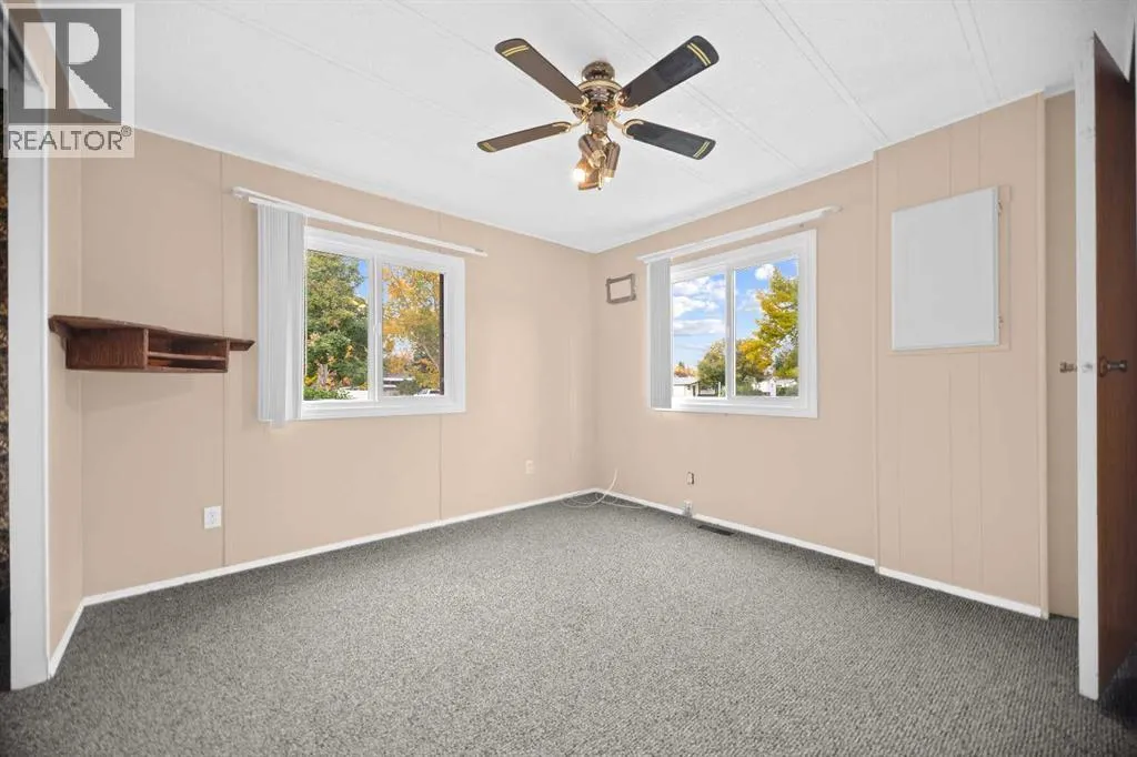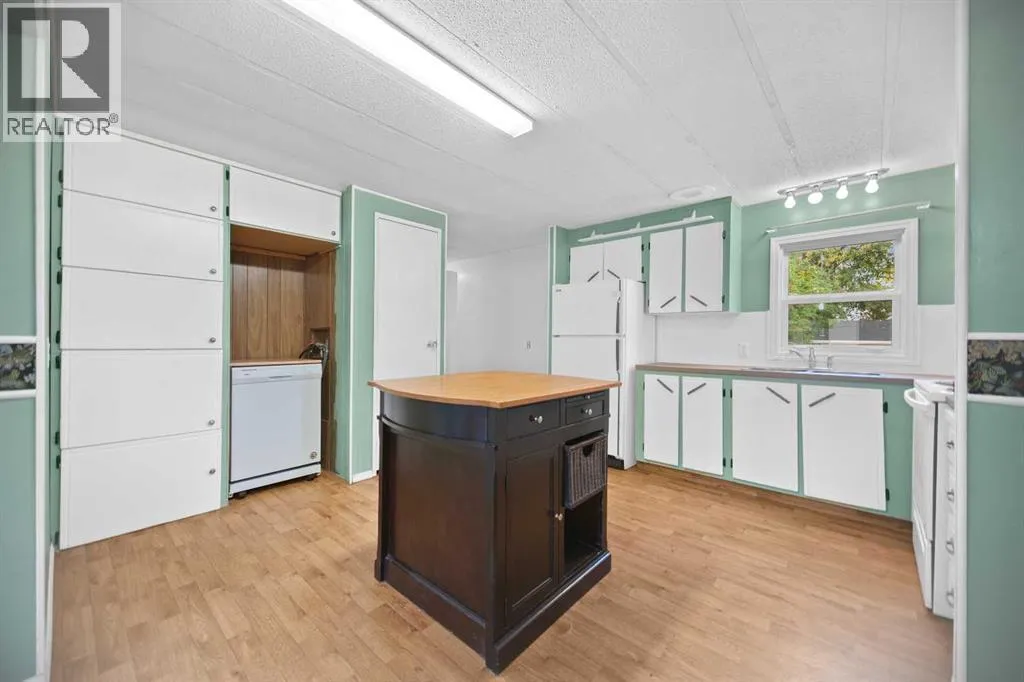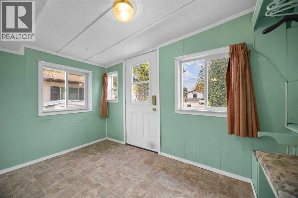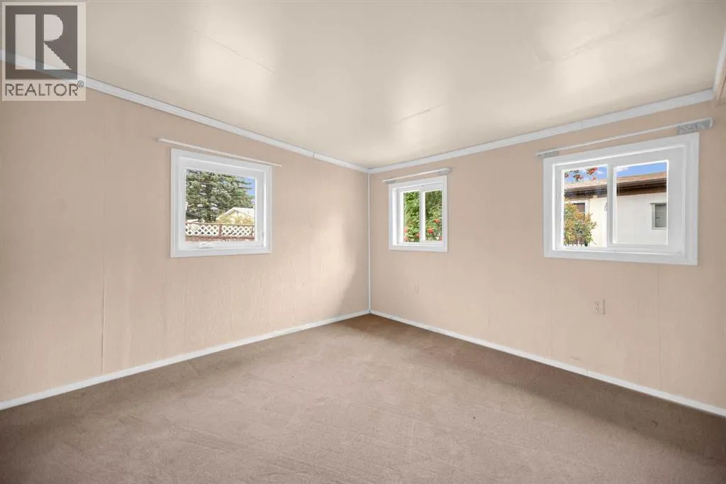 Looking for an affordable 2 bedroom home on its own lot so no pad fees, then look no further! This home is situated on a mature lot and features newer windows, shingles (2020) and newer back door. As you enter the home you will appreciate the large entrance with built in bench, shoe rack and closet. There is a large dining area with lots of natural light - a great place for family mealtimes. The kitchen features white cabinets, a central island, pantry and lots of counterspace. Relax in the spacious living with its lovely wood burning stove - snug and cozy on a cold winters day! There is a great den/office - this room does not have a heat source so is not included in the total square footage of the home. Bedroom # 1 has 2 large windows and is currently where the washer and dryer are hooked up. The primary bedroom has dual aspect windows, a ceiling fan, large closet and a door into the bathroom. The 4 piece bathroom features a large vanity. There is additional storage area too! The yard is fully fenced and features mature trees and shrubs and has 2 storage sheds. There is a gravel driveway to the front of the home so plenty of parking! View 3D /virtual tour/multimedia. (id:27476)