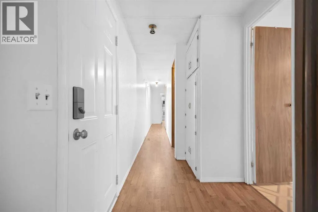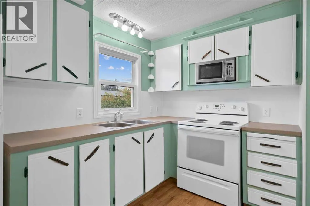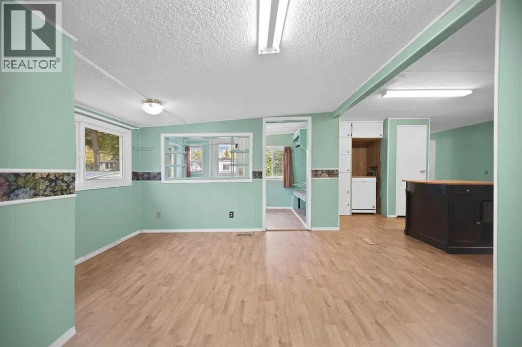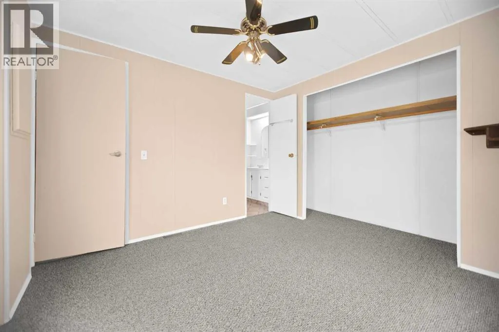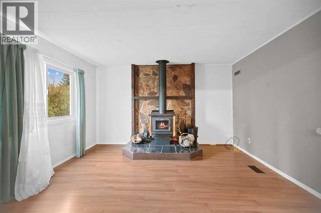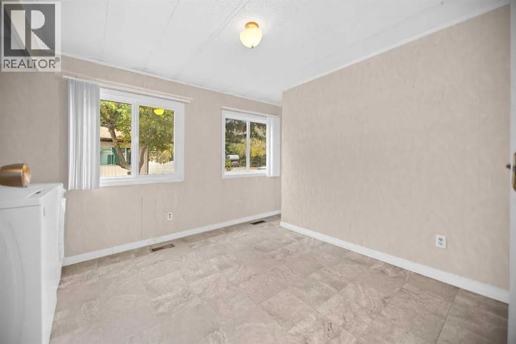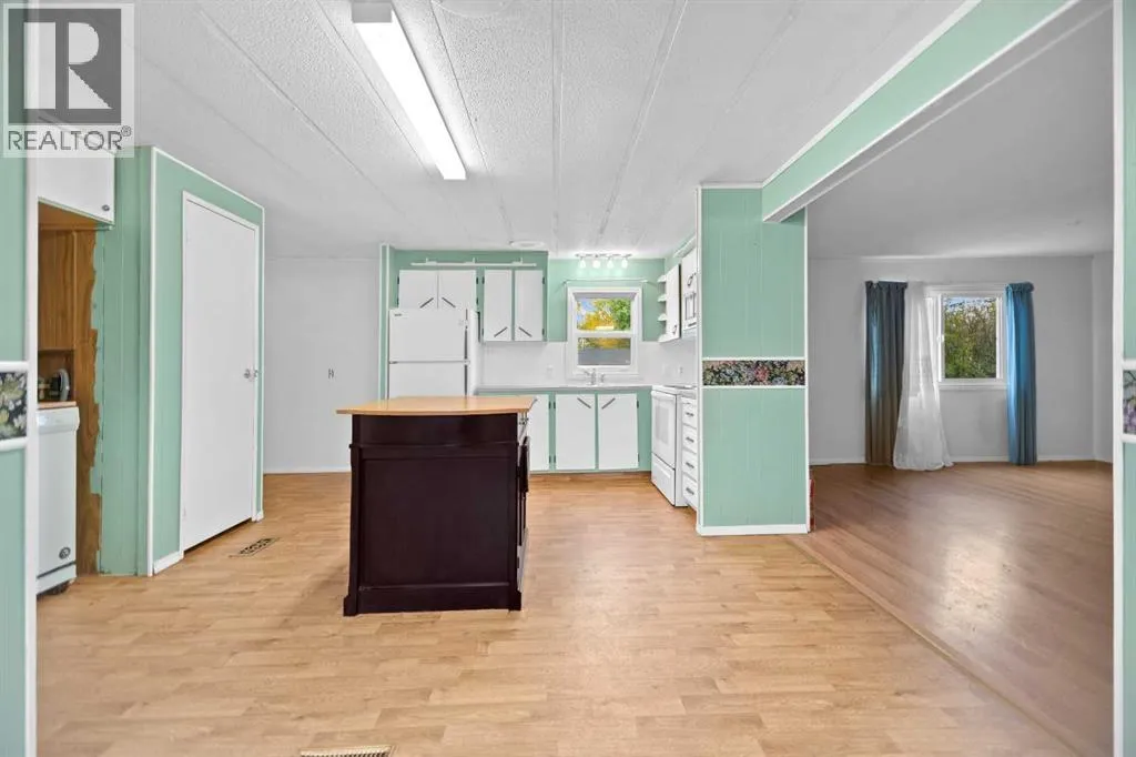 Looking for an affordable 2 bedroom home on its own lot so no pad fees, then look no further! This home is situated on a mature lot and features newer windows, shingles (2020) and newer back door. As you enter the home you will appreciate the large entrance with built in bench, shoe rack and closet. There is a large dining area with lots of natural light - a great place for family mealtimes. The kitchen features white cabinets, a central island, pantry and lots of counterspace. Relax in the spacious living with its lovely wood burning stove - snug and cozy on a cold winters day! There is a great den/office - this room does not have a heat source so is not included in the total square footage of the home. Bedroom # 1 has 2 large windows and is currently where the washer and dryer are hooked up. The primary bedroom has dual aspect windows, a ceiling fan, large closet and a door into the bathroom. The 4 piece bathroom features a large vanity. There is additional storage area too! The yard is fully fenced and features mature trees and shrubs and has 2 storage sheds. There is a gravel driveway to the front of the home so plenty of parking! View 3D /virtual tour/multimedia. (id:27476)
