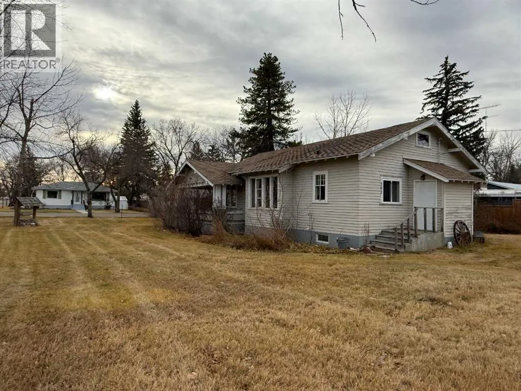 Discover the potential of this character-filled property located on a large corner lot in the Town of Vulcan. Estimated to have been built around 1946, this home offers vintage charm and space to make it your own. The main floor features a front living room/library, formal dining room, large kitchen, two spacious bedrooms, and a 4-piece bathroom. Thereâs also attic access for additional storage possibilities. The partial basement includes laundry, utility, and storage areas. Enjoy the outdoors from the covered L-shaped verandah â perfect for relaxing in the summer breeze or firing up the BBQ year-round. The mature lot provides plenty of room to garden or consider future possibilities, such as adding a workshop or garage. Please note: the property is being sold in as is, where is condition. The home requires substantial repairs, including damage from a burst pipe that occurred last winter. Furnace was replaced in 2016, and the home has 100 AMP electrical service. If youâre looking for a project with potential in a great small-town location, this property could be the one for you. (id:27476)