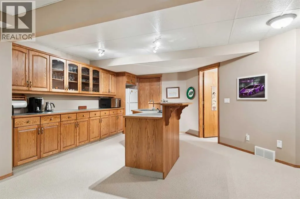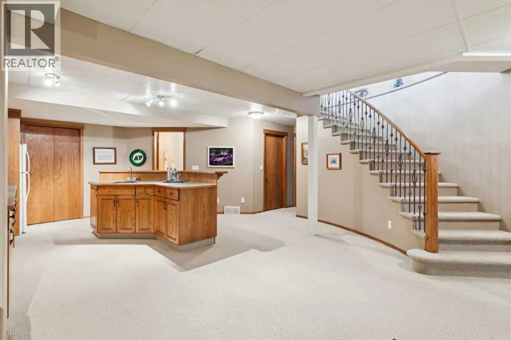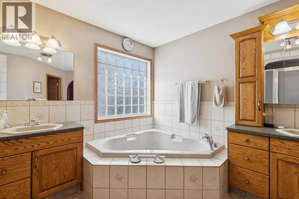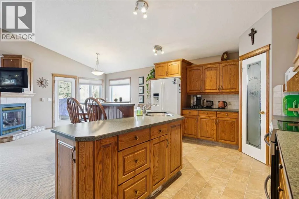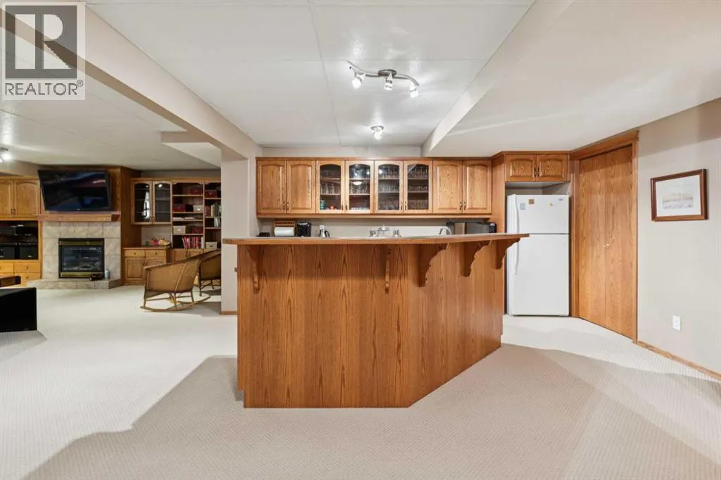 Exceptional luxury 55+ villa that blends elegant design with the ease of low-maintenance living. Thoughtfully crafted and impeccably maintained, this sprawling home offers nearly 2,000 sq.ft. on the main level plus a beautifully developed lower levelâperfect for those who want the convenience of condo living without sacrificing space, comfort, or style. Step through the grand front foyer and instantly feel the openness created by vaulted ceilings, a spacious front hall with closet, and an inviting flow into the formal dining area. The heart of the home is the impressive kitchen, featuring a raised eating bar, corner pantry, abundant shaker cabinetry, and newer stainless-steel dishwasher and stoveâideal for entertaining or daily enjoyment. Adjacent to the kitchen, the cozy breakfast nook overlooks the beautifully landscaped backyard and shares a charming double-sided gas fireplace with the formal living room. Enjoy serene views with no neighbours behind, mature trees, shrubs, and a newly refinished deckâenjoy your private outdoor retreat. The main-floor primary suite is a true sanctuary, offering a 5-piece spa-inspired ensuite, complete with deep soaking tub, dual vanities, fully enclosed shower with built-in seat, and a generous walk-in closet with custom built-ins. A dedicated office/den, convenient main-floor laundry, and a 2-piece powder room off the garage entry complete this level. The oversized heated garage is a dreamâfinished, equipped with a natural-gas heater, and includes a fridge, freezer, that stay with the home. Downstairs, a dramatic curved staircase leads to a spectacular lower level featuring a second gas fireplace with elegant tile surround, a massive open family and games area, and a well-appointed wet bar with fridge and pantry. Perfect for hosting large gatherings or creating the ultimate entertainment zone. This level also hosts two additional bedroomsâone with its own 3-piece ensuite and large closetâplus another 2-piece bathroom and abunda nt under-stair storage. Additional features include Air conditioning, In-floor heating (basement), Updated fixtures, Beautiful landscaping & private yard, Free RV parking, Social room access for all owners This is elevated living at its bestâwhere refined finishes, everyday comfort, and effortless convenience blend seamlessly in a serene, park-like environment. Opportunities in this sought-after complex are rare. Schedule your private showing today and discover the exceptional lifestyle awaiting you. (id:27476)