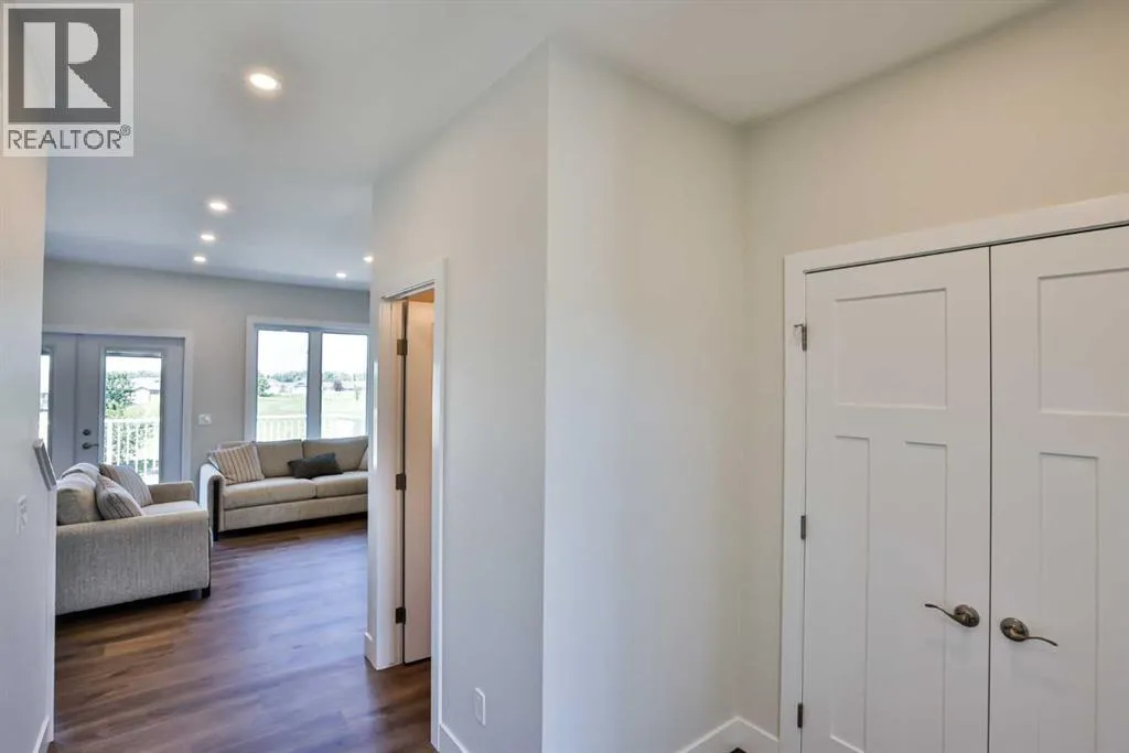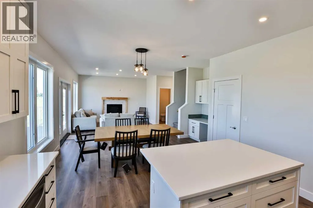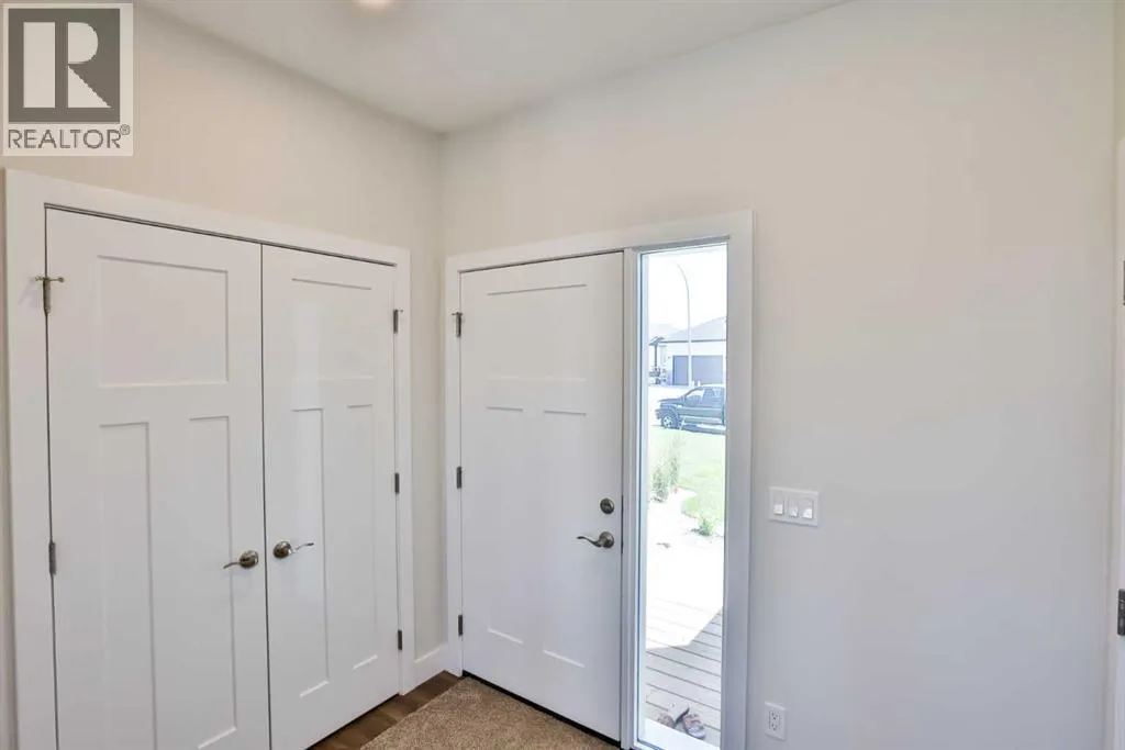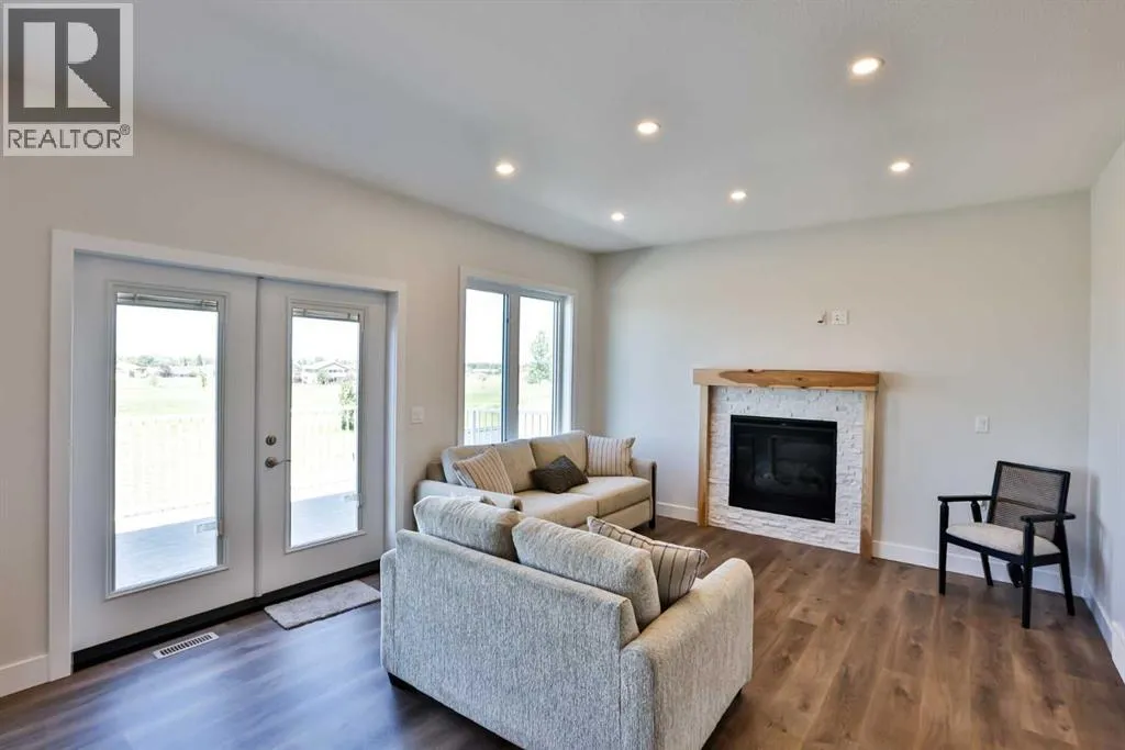 Welcome to your NEXT home! As you approach this residence, you'll immediately notice the beautifully landscaped yard, complete with underground sprinklers that are Wi-Fi enabled for your convenienceâa rare upgrade in a newly constructed home. The stunning exterior rock work highlights the front of the property, and who doesnât appreciate a spacious driveway?Step inside this open-concept home, where vinyl plank flooring flows throughout the main level. Large windows line the back of the house, allowing natural light to fill the space, while a gas fireplace adorned with wood mantle detailing adds warmth and character to the living room. The kitchen features elegant white cabinets and quartz countertops that enhance the room's brightness. You'll find an abundance of pots and pans drawers, accented with lovely black handles. All stainless steel appliances, a built-in butlerâs pantry, and a dedicated desk area with upper cabinets provide ample storage and functionality.The windows at the back of the home offer breathtaking views of the Rocky Mountains and the 12th green of the Vulcan Golf Course. Step out onto your expansive deck that spans the width of the home, perfect for entertaining guests. This outdoor space is finished with vinyl decking and aluminum railing, for low maintenance lifestyle. On the second floor, you'll discover generously sized bedrooms, a full bathroom, and a convenient laundry area. The primary bedroom, situated at the back of the home, boasts a spacious walk-in closet with custom built-ins, as well as a beautiful ensuite bathroom featuring a tub and shower with double sinks.The basement is currently undeveloped and awaits your creative touch! This walkout basement is filled with natural light and leads to a concrete patio that completes the space.Additionally, there is a double attached garage that is insulated and drywalled for your comfort.You'll appreciate the absence of HOA fees in this part of the golf course development, allowin g you the freedom to install a fence if you have a dog or garden. Plus, there are no age restrictions in this area!Living on the Vulcan Golf Course means enjoying a vibrant community, complete with an abundance of amenities, including close proximity to schools, an outdoor pool, parks, a hospital and arena. Located between the cities of Lethbridge and Calgary on Highway 23, this would be a perfect area to call home. Give your REALTOR®? a call today! (id:27476)