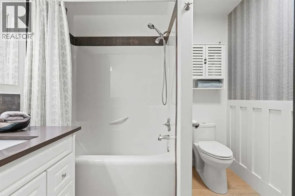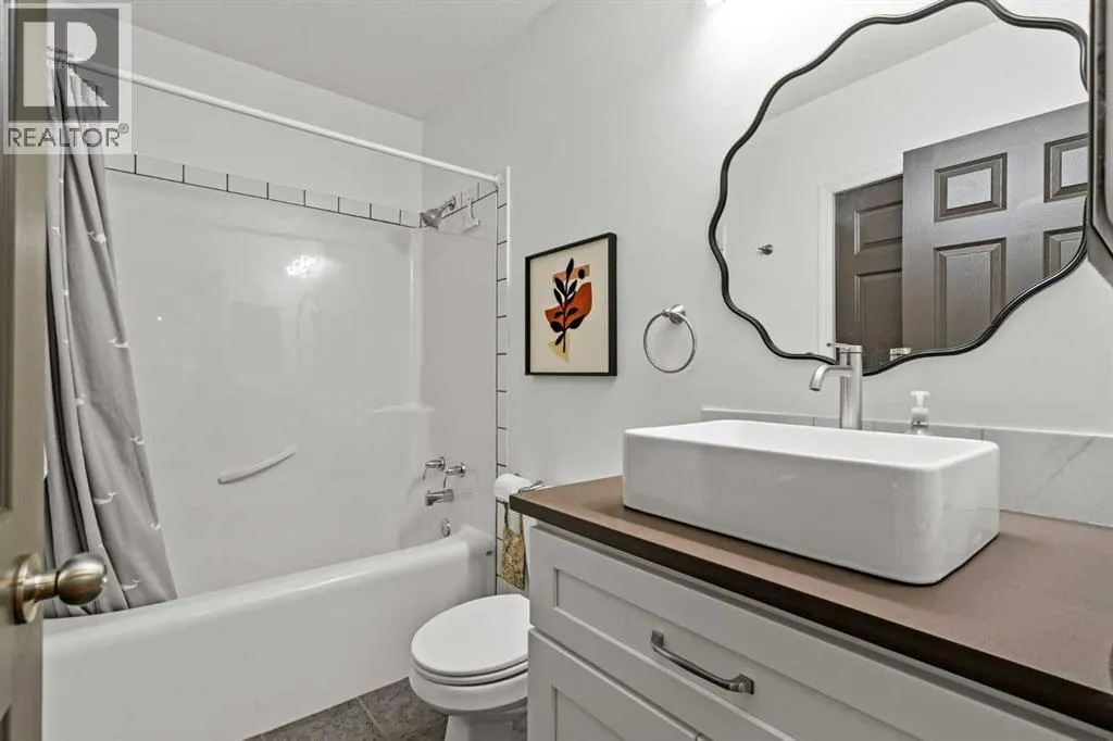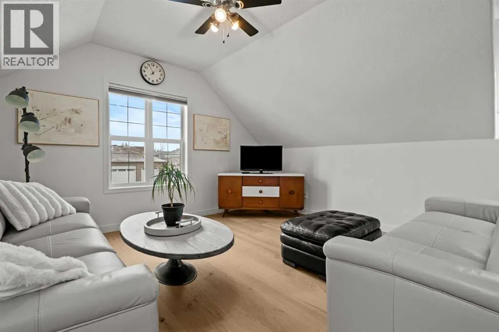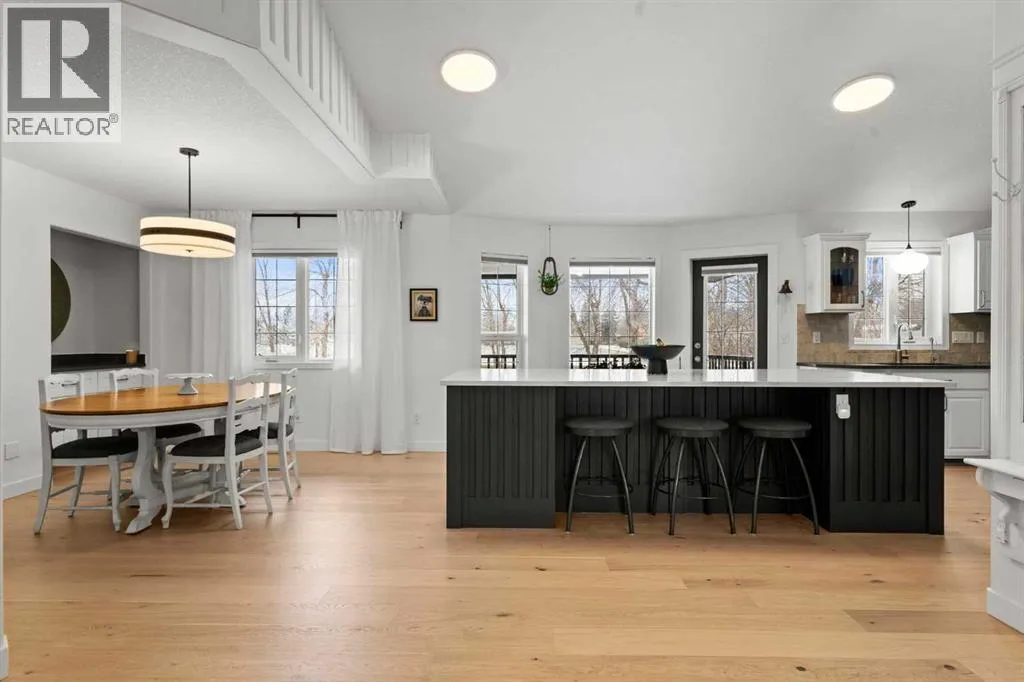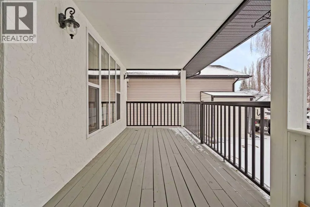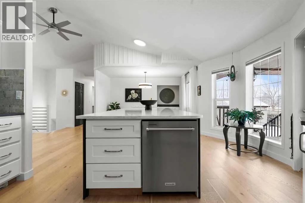 This MOVE IN READY HOME has been thoughtfully updated with features that focus on function in designing this ELEGANT MAKEOVER. A freshly painted front exterior and cozy covered front verandah speak to the classic curb appeal that sets this home apart in a league of it's own. Vaulted ceilings soaring above banks of windows that capture the natural light highlight the open floor plan that flows seamlessly... inviting larger family gatherings or intimate get togethers. A neutral paint palette offsets the gorgeous new engineered hardwood flooring - trimmed with high profile baseboards on the main floor. Masterfully crafted is the focal point of the main floor - a stunning island addition that isn't just an amazing storage and dining area.. it's the hub of this gorgeous family home. Custom designed wood details trim the island and complement the feature walls located in several areas of the house. A massive quartz slab accentuates the grandness of the island and showcases the sleek quartz topped cabinetry at the rear of the kitchen. A refreshed stone tiled backsplash complements the Stainless Steel appliances. Banks of drawers have been added for convenient storage. A spacious Living Room with a re-faced gas fireplace is offset from the kitchen for entertaining. An open-ended dining area boasts enough room for a larger table and a servery/coffee bar has been added for your convenience. The primary suite tucked away at the end of the hall delivers privacy and solitude and features custom wall detailing, a walk in closet and a lovely updated 5 pc ensuite bath complete with a jetted soaker tub and separate shower. Main floor laundry and a 4 pc main bath complete the main level. The bathrooms showcase new quartz topped vanities, tile backsplash and new sinks and taps. Ascending to the loft you are greeted by a spacious room that can be anything you need. Vaulted ceilings, lots of windows and sky lights to brighten the room all day, easy care engineered hardwood flooring... e asy to add an area rug for a TV get away/bedroom or perfect as is for a crafters room. The four piece main bath is at the bottom of the stairs to accommodate a bedroom in the loft area. The lower level has a 4 pc bath, two additional bedrooms and plenty of room to add more with legal egress windows and 9 ft ceilings already in place. In floor heat keeps this level cozy in the winter months and the AC keeps the rest of the house cool in the summertime. A massive open recreation area in the lower level will fit your pool table and gaming desires to create a family sized entertainment area. The oversized 24'11"x 24'11" insulated and drywalled garage has in floor heat, and a 220 V power source. In ground sprinklers, a man sized garden shed with power, perennial beds laid with rocks that flank the perimeter and front grounds, and covered front and rear porches to satisfy your outdoor enjoyment complement the mature landscaping. This home is a dream to show! Call today! (id:27476)