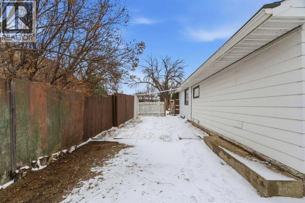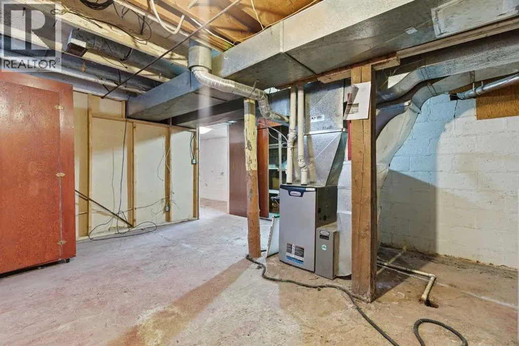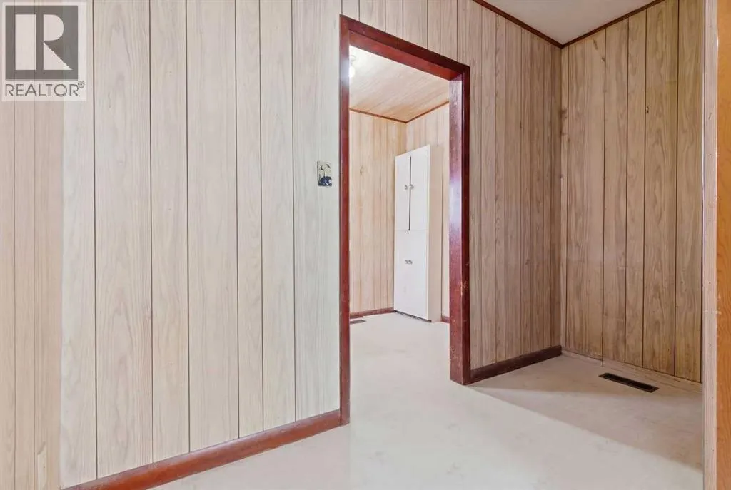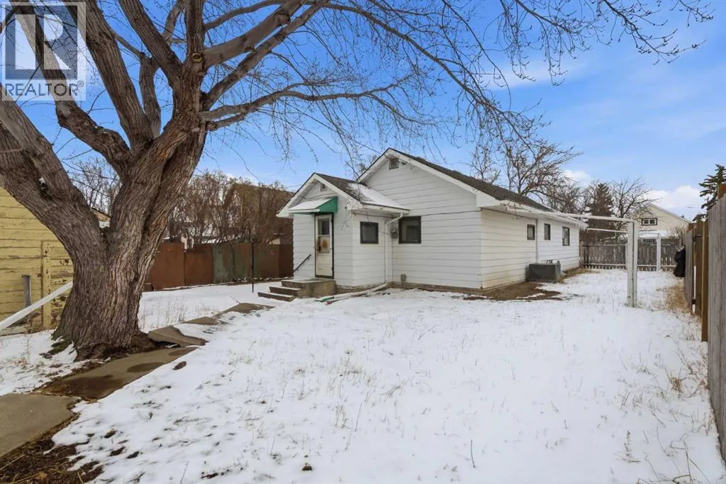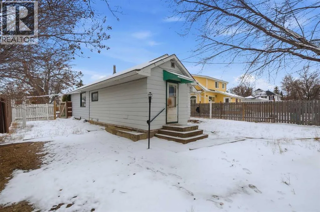 Bungalow home situated on a quiet tree lined street in the heart of Vulcan! Just steps away from restaurants, library, downtown shopping! Main floor offers a spacious living room + dining room, good sized kitchen, 2 large bedrooms, 4pc bath+ back entry mudroom. Lower level is laid out nicely for future development with + Washer/Dryer. Additional Features include: Oversized single garage & Newer HWT + Furnace, walking distance to shopping, restaurants, library, downtown shopping. Exceptional Value! (id:27476)