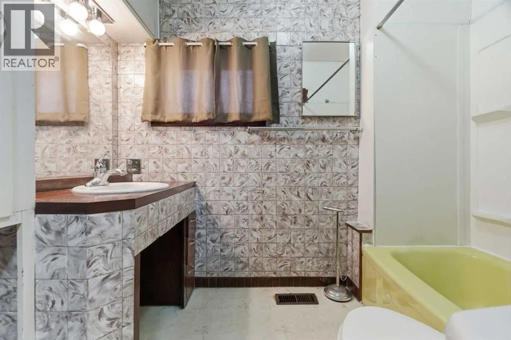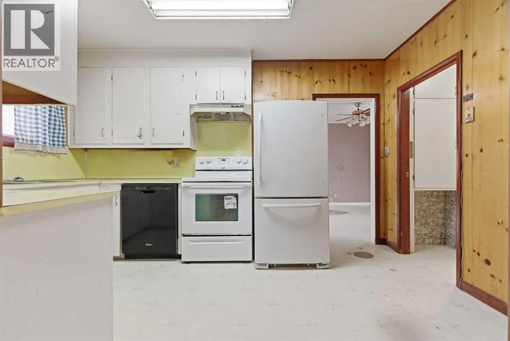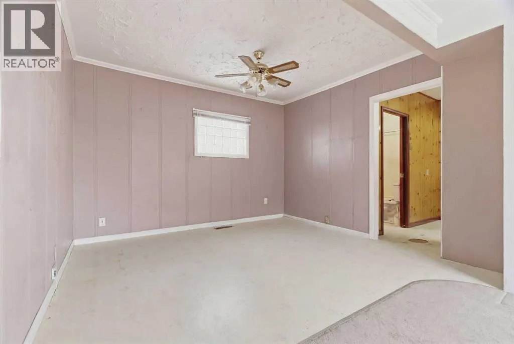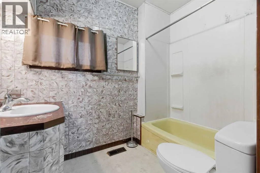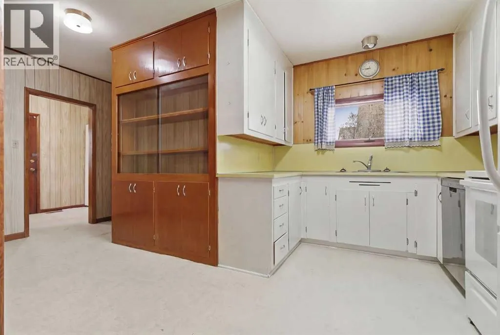 Bungalow home situated on a quiet tree lined street in the heart of Vulcan! Just steps away from restaurants, library, downtown shopping! Main floor offers a spacious living room + dining room, good sized kitchen, 2 large bedrooms, 4pc bath+ back entry mudroom. Lower level is laid out nicely for future development with + Washer/Dryer. Additional Features include: Oversized single garage & Newer HWT + Furnace, walking distance to shopping, restaurants, library, downtown shopping. Exceptional Value! (id:27476)