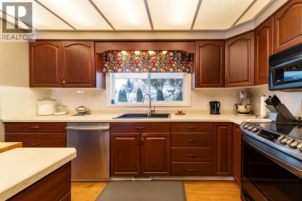 Beautifully maintained lot located in a quiet cul-de-sac on the west side of town. This home is ready to move into. It features 3 bedrooms, 3 baths, air conditioning, pellet stove, a family room and games room, and access to the backyard through the lower level. The backyard is completely fenced with a private covered deck which can be used through most of the year. It is a must see home! (id:27476)