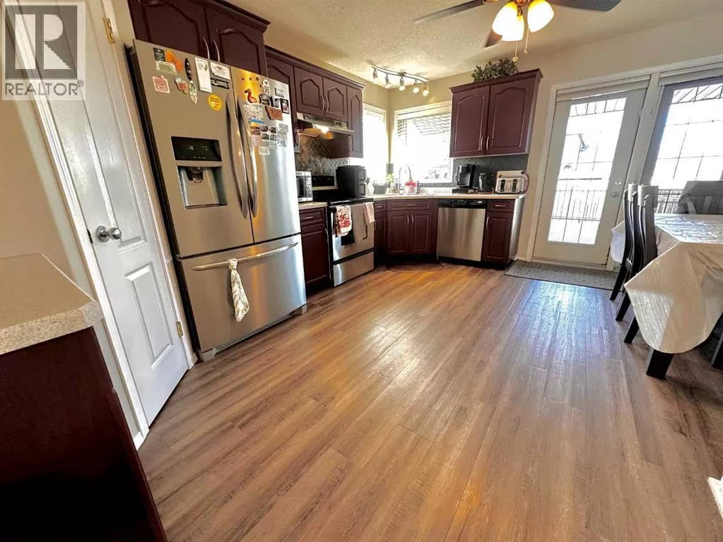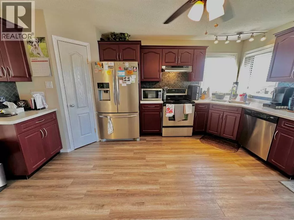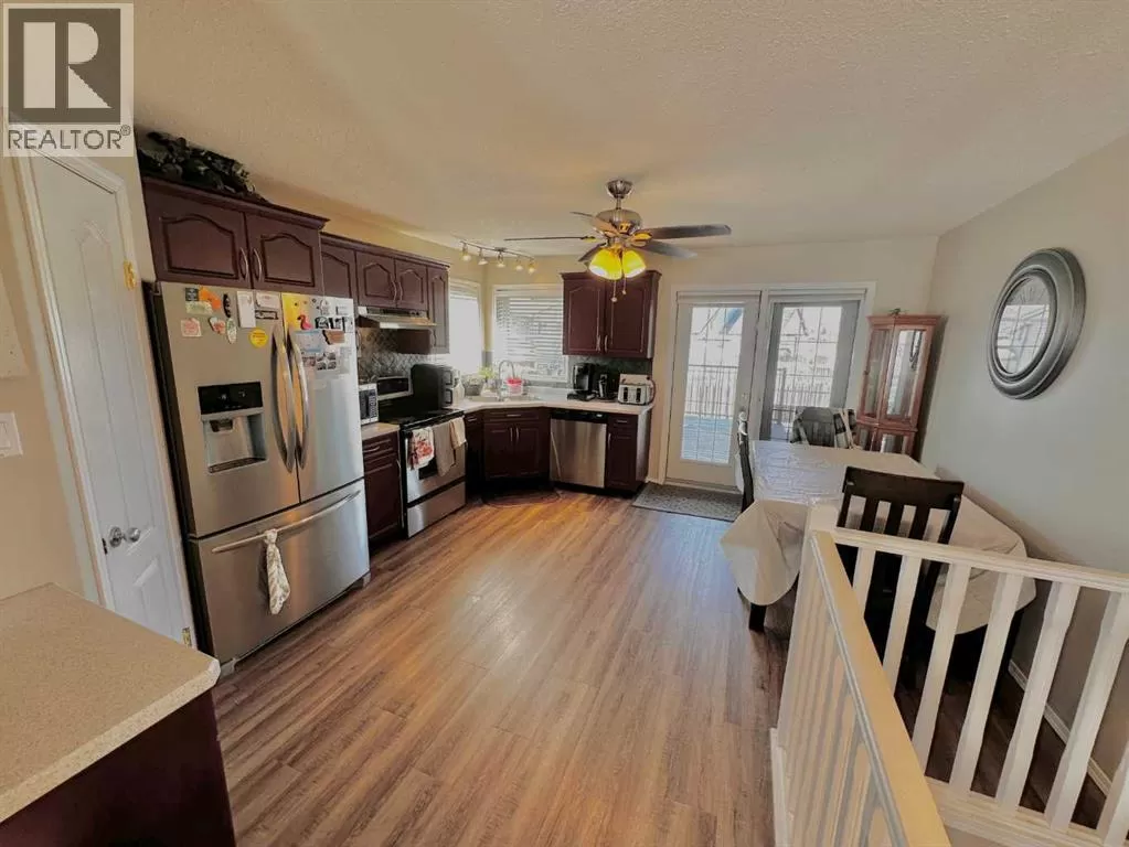 This spacious family home is situated in a quiet cul-de-sac on a large pie shaped lot. Nestled in a peaceful and desirable neighborhood, is this stunning 4-bedroom, 3-up-1-down home with a double attached garage and beautiful 2 tiered deck in back yard. The spacious open-concept main level offers a bright and open living room, dining area, and sunny kitchen with walk-in pantry. The living room offers a cozy ambiance with a wood burning fireplace, creating the perfect space for gatherings. With 3 bedrooms on the main level, this home is the ideal family home. The primary bedroom is complete with a 3pc. ensuite creating a relaxing retreat. The fully finished basement provides you with a large family room, games/rec room, additional bedroom, good sized office/den, & 3pc. bathroom. The covered deck off the dining room accommodates all weather entertaining. Rounding off this property is a fully fenced yard & central air-conditioning! (id:27476)