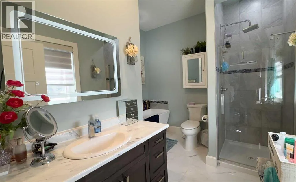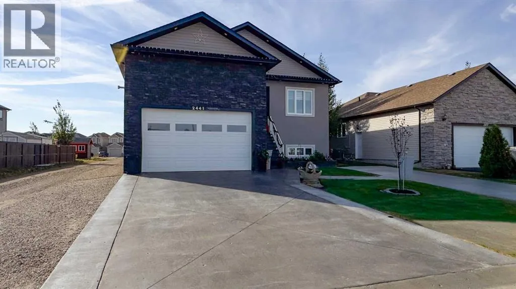 Welcome to 2441 7 Avenue, a beautifully maintained bungalow built in 2017 that combines modern style, comfort, and practicality. With 5 spacious bedrooms and 3 full bathrooms, this home is perfect for families seeking space to grow or those who love to entertain.Step inside to an open-concept main floor with soaring ceilings, a cozy gas fireplace, and upgraded finishes, including vinyl plank flooring, modern fixtures, and ceramic tile. The chefâs kitchen features a large island, gas stove, and plenty of cabinetry, opening to a generous dining space and living room.The primary suite offers a private retreat with a 4-piece ensuite and soaking tub. Two additional bedrooms and another full bathroom complete the main floor, along with the convenience of main-level laundry.The fully finished basement provides even more living space with a massive family/games room, second fireplace, two large bedrooms, and a full bathroomâideal for teens, guests, or a home office setup.Outside, enjoy a beautifully landscaped backyard with a gazebo, perfect for summer evenings, along with a shed for storage. The vinyl fencing adds durability and privacy. With an attached garage, RV parking pad/second driveway, and a BBQ gas line, this property truly covers all your needs.Additional highlights include:Central air conditioningWater softener systemICF foundation for efficiency and durabilityLocated in a family-friendly neighborhood close to shopping, sidewalks, and street lightingThis is a move-in-ready home that blends comfort and functionality in a sought-after location. Donât miss the opportunity to make it yours! (id:27476)