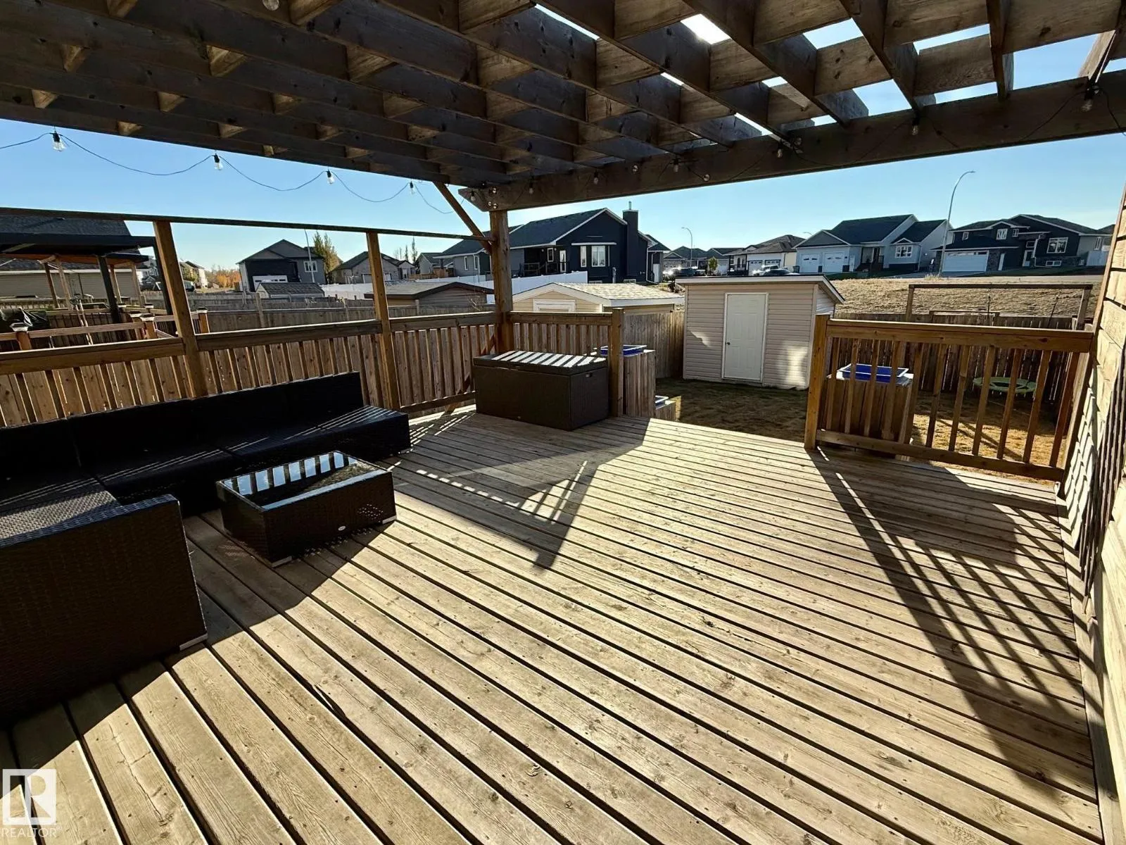 Welcome to this well-maintained 2-storey half duplex located in the Town of Wainwright. Built in 2015, this home offers comfortable living space with a fully developed basement along with a gas fireplace. The main floor features a functional layout with laminate and tile flooring, plus a bright east-facing front exposure. The upper level includes three bedrooms, two full bathrooms including a 5-piece ensuite, and convenient upper-floor laundry. The basement provides additional living space, ideal for a family room or home office. The property includes a single attached heated garage (24â x 14â) and parking for up to three vehicles. Enjoy the private, fenced yard with deckâperfect for outdoor living. Additional features include central air conditioning, central vacuum system, and a poured concrete foundation. Lot in a quiet residential area, with brand new K-6 school across the street. Immediate possession available. Zoned R2. (id:27476)
