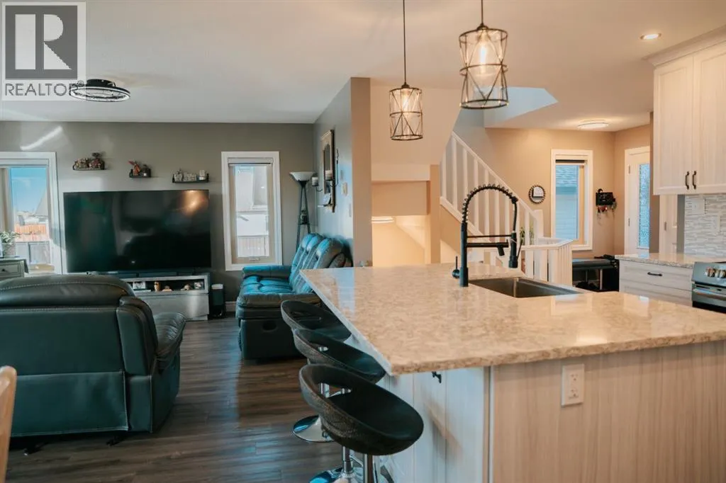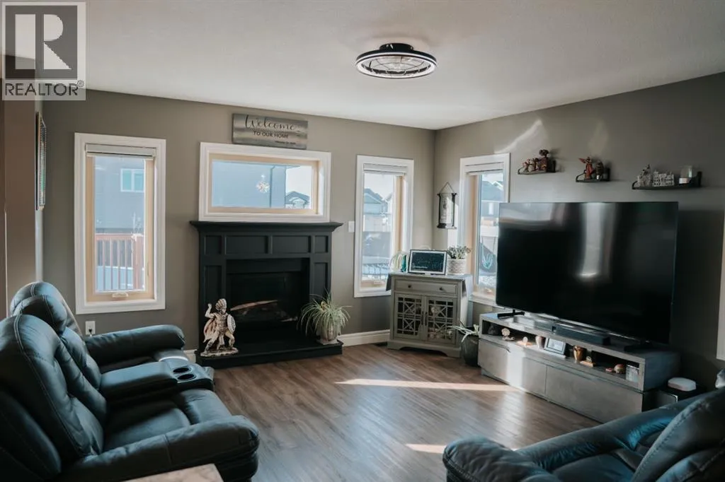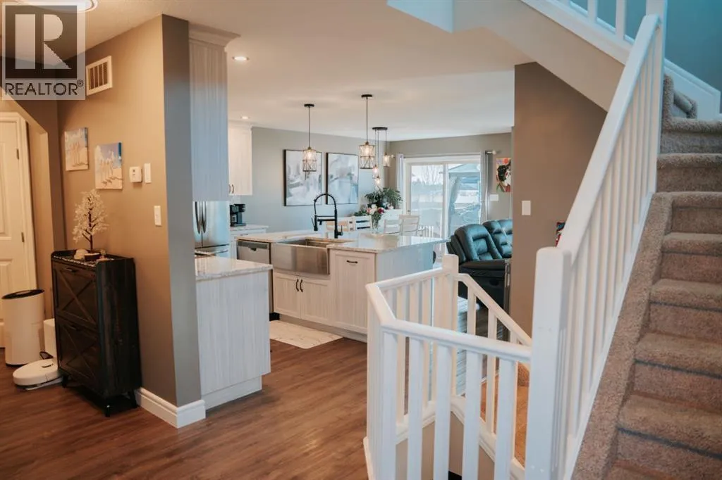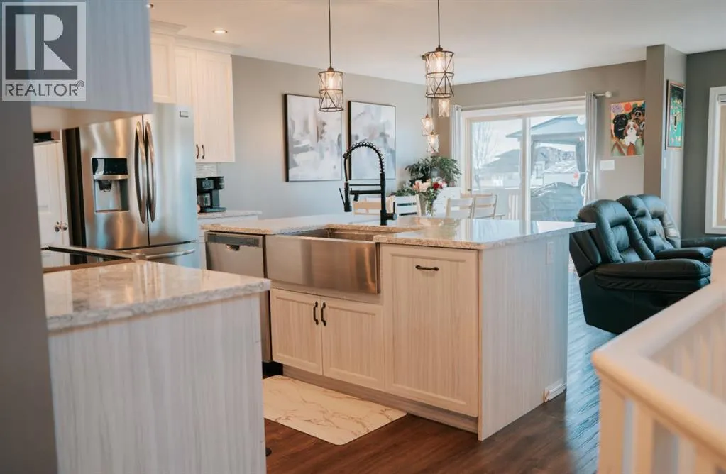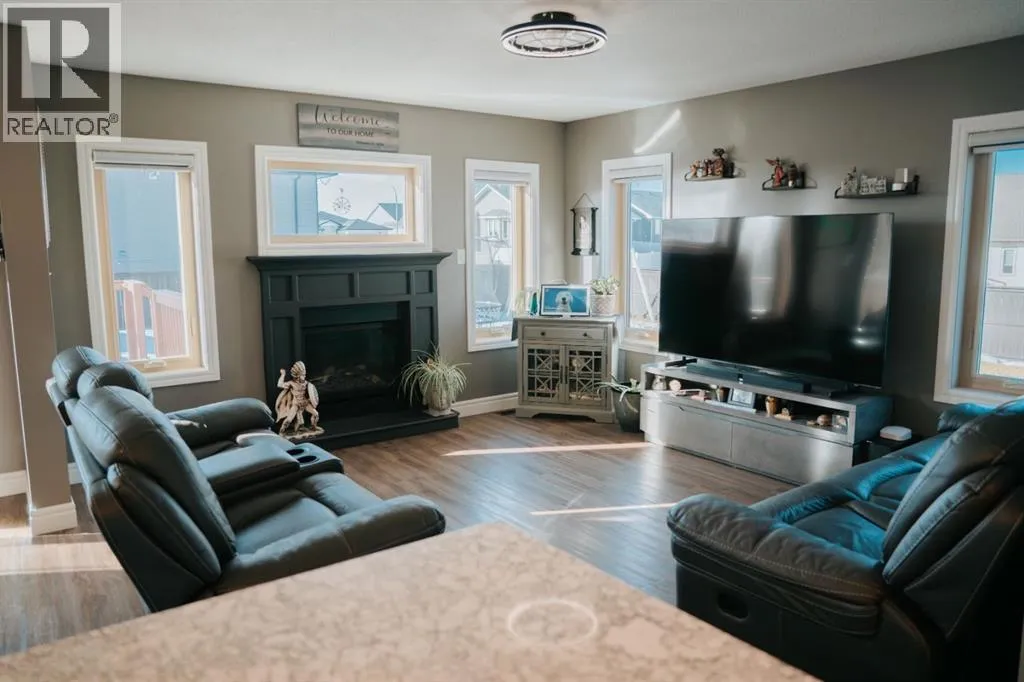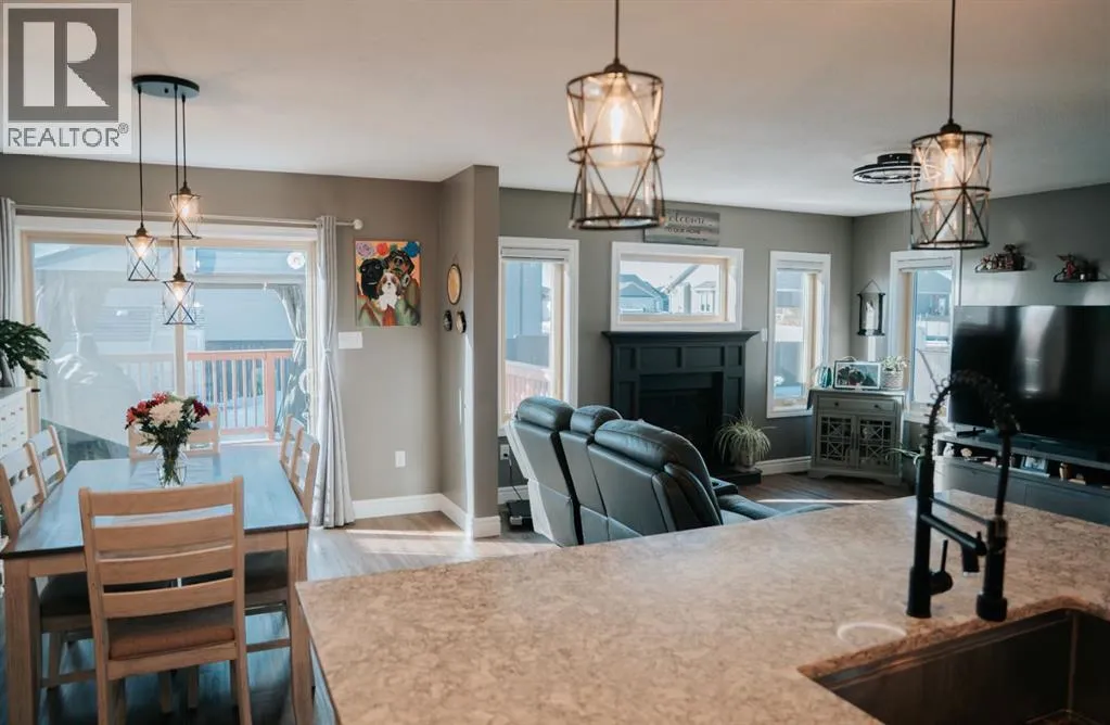 Welcome to this gorgeous 2-storey home nestled in one of Wainwrightâs nicest areas, directly across from the Rotary outdoor park and the brand new K-6 Elementary School currently under construction! Thoughtfully designed and beautifully updated, this home offers the perfect blend of modern style, comfort, and family-friendly living.Step inside and be greeted by sunshine streaming through the open-concept main level. The stunning kitchen has been recently upgraded with brand-new cabinetry, sleek quartz countertops, and a spacious center islandâperfect for meal prep, entertaining, or gathering with family. Luxury vinyl plank flooring flows throughout the main floor, adding both elegance and durability. The dining area provides direct access to the large deck, ideal for summer BBQs, while the inviting living room fireplace creates a warm, cozy atmosphere for relaxing evenings at home.Upstairs, prepare to be impressed by the spacious primary suite featuring a spa-inspired 5-piece ensuite and a generous walk-in closet. Two additional bedrooms, a 4-piece bathroom, and a conveniently located laundry area complete the second levelâperfect for busy family life.The fully finished basement offers even more living space, including a large family room with a second fireplace, an additional bedroom, and a 4-piece bathroomâmaking it an excellent retreat for guests, teens, or extended family.Outside, the yard is fully landscaped and fenced, offering both privacy and space to enjoy. Additional features include central air conditioning, a heated double attached garage, and an impressive 32x40 detached heated garageâideal for vehicles, toys, or the ultimate workshop setup.This move-in-ready home checks all the boxes for comfort, style, and functionality. Donât miss your opportunity to own this exceptional property in one of Wainwrightâs most desirable neighbourhood! (id:27476)