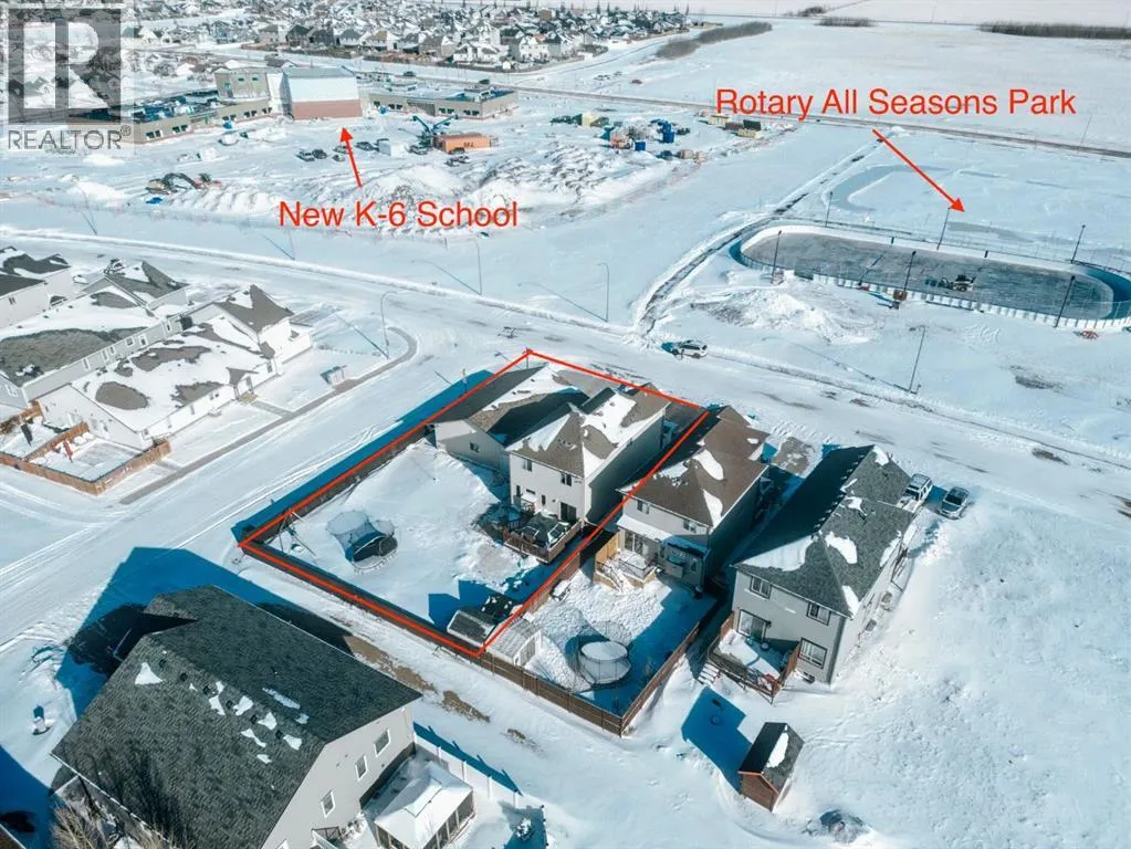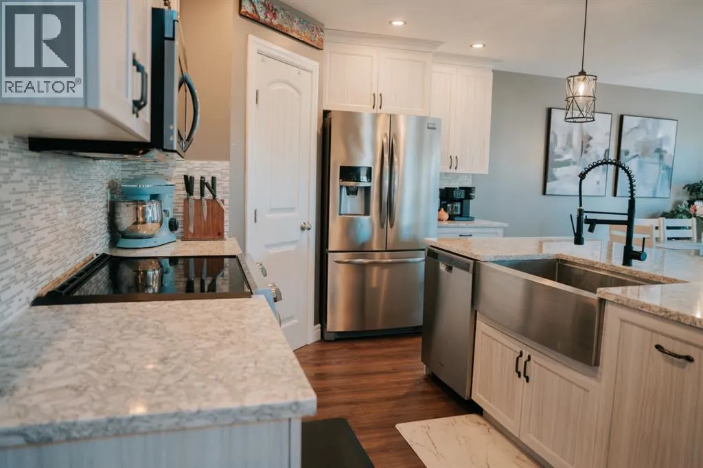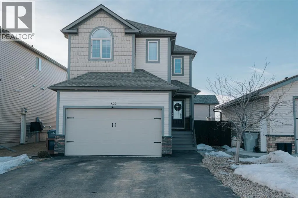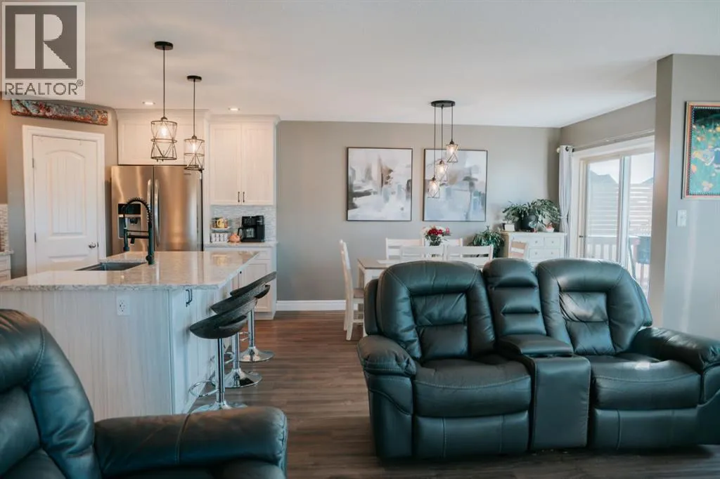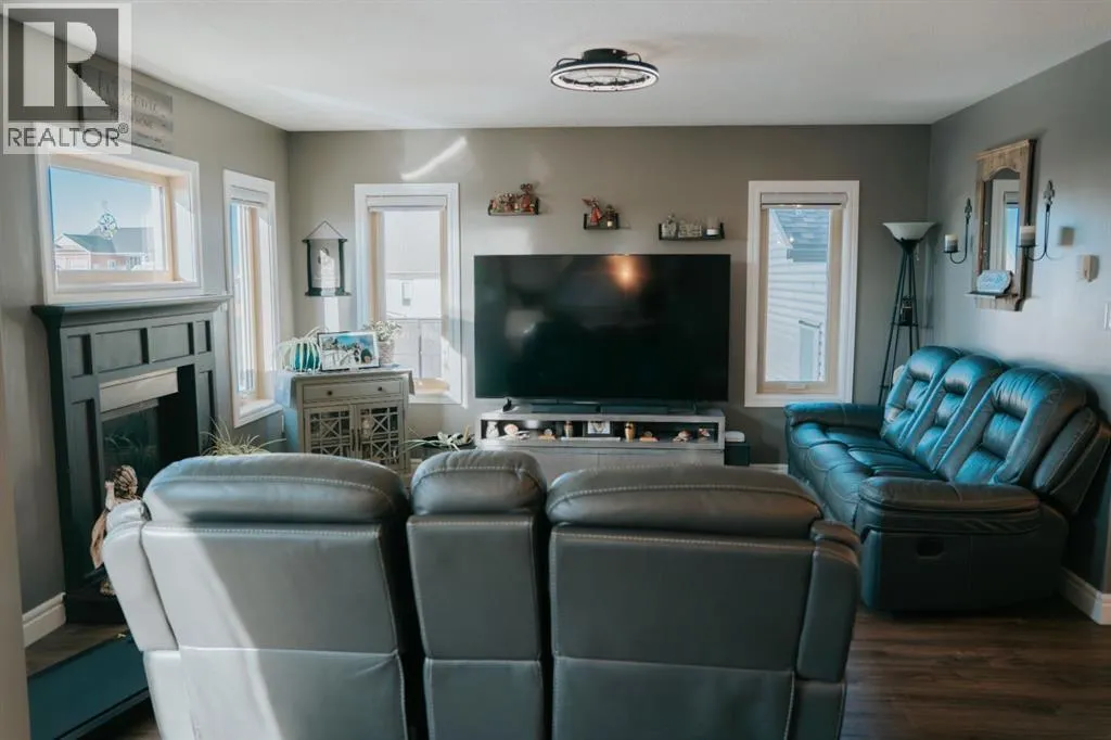Welcome to this gorgeous 2-storey home nestled in one of Wainwrightâs nicest areas, directly across from the Rotary outdoor park and the brand new K-6 Elementary School currently under construction! Thoughtfully designed and beautifully updated, this home offers the perfect blend of modern style, comfort, and family-friendly living.Step inside and be greeted by sunshine streaming through the open-concept main level. The stunning kitchen has been recently upgraded with brand-new cabinetry, sleek quartz countertops, and a spacious center islandâperfect for meal prep, entertaining, or gathering with family. Luxury vinyl plank flooring flows throughout the main floor, adding both elegance and durability. The dining area provides direct access to the large deck, ideal for summer BBQs, while the inviting living room fireplace creates a warm, cozy atmosphere for relaxing evenings at home.Upstairs, prepare to be impressed by the spacious primary suite featuring a spa-inspired 5-piece ensuite and a generous walk-in closet. Two additional bedrooms, a 4-piece bathroom, and a conveniently located laundry area complete the second levelâperfect for busy family life.The fully finished basement offers even more living space, including a large family room with a second fireplace, an additional bedroom, and a 4-piece bathroomâmaking it an excellent retreat for guests, teens, or extended family.Outside, the yard is fully landscaped and fenced, offering both privacy and space to enjoy. Additional features include central air conditioning, a heated double attached garage, and an impressive 32x40 detached heated garageâideal for vehicles, toys, or the ultimate workshop setup.This move-in-ready home checks all the boxes for comfort, style, and functionality. Donât miss your opportunity to own this exceptional property in one of Wainwrightâs most desirable neighbourhood! (id:27476)