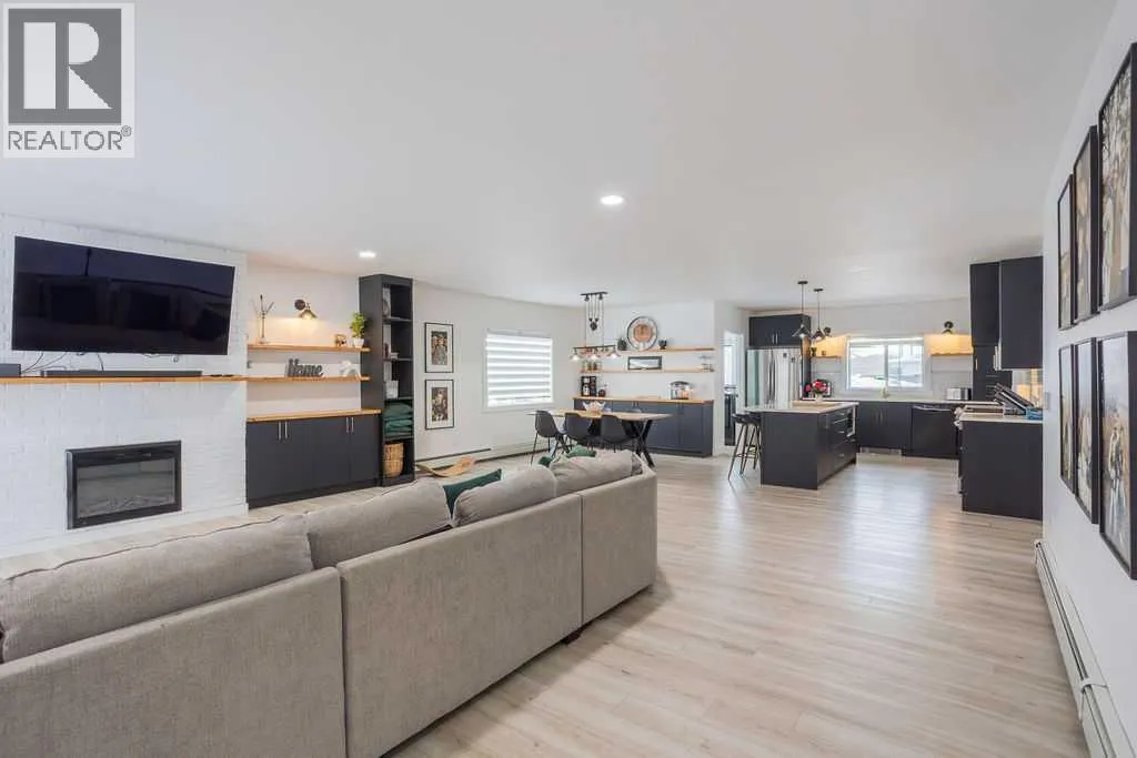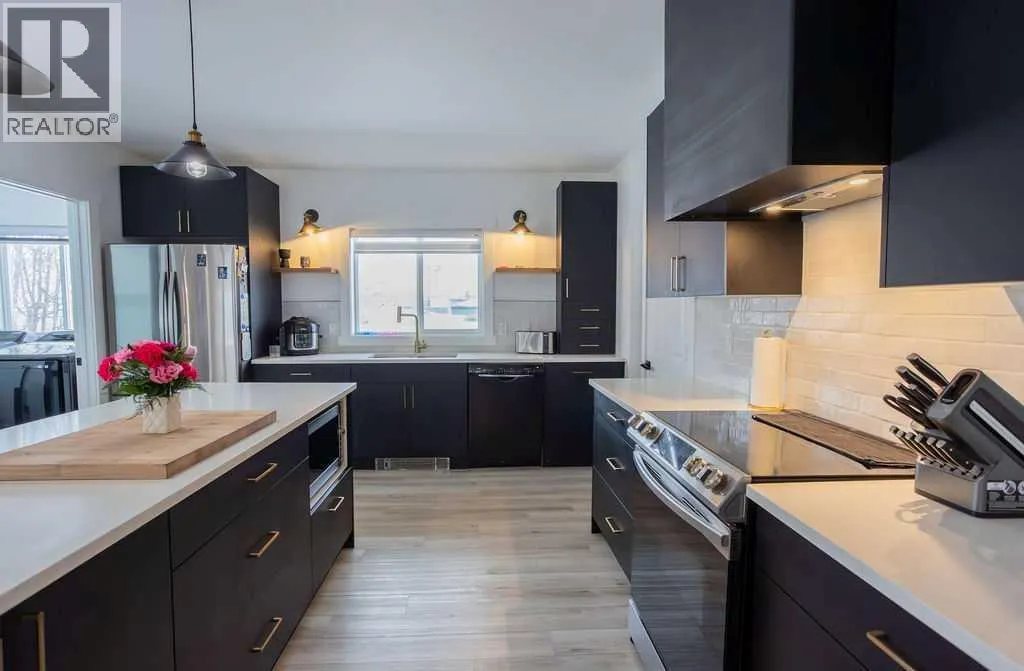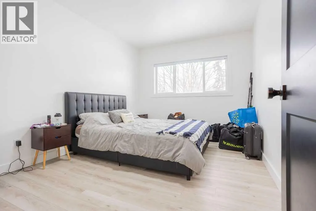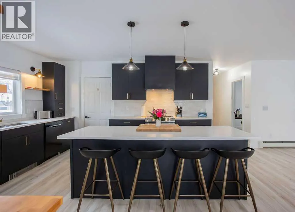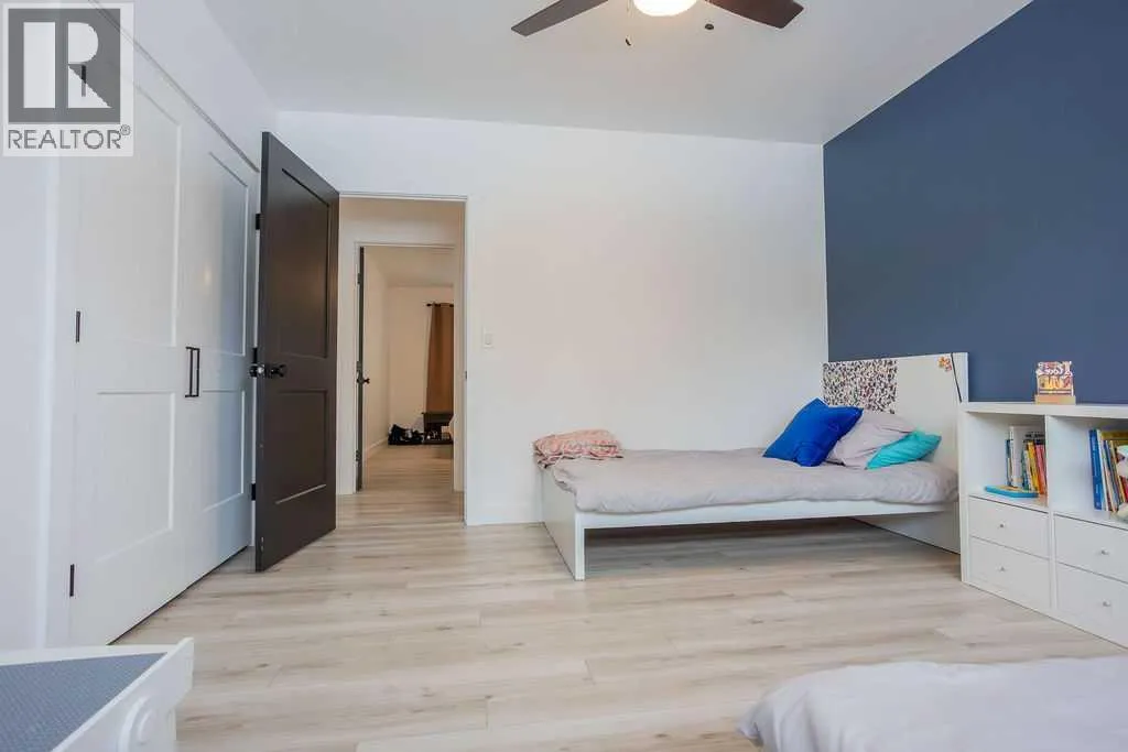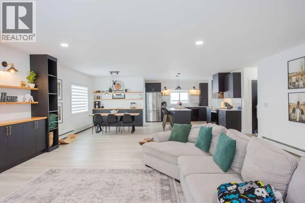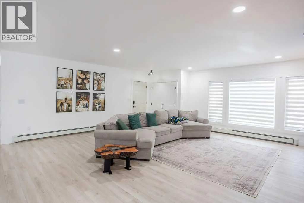 Welcome to this beautifully renovated 2,143 sq ft home situated on a fully fenced double lot with an absolutely stunning, meticulously maintained lawn. From the moment you arrive, youâll appreciate the pride of ownership that shines through both inside and out. Entering through the side door, youâre greeted by a spacious, sun-filled mudroom complete with a convenient 2-piece bathroom â the perfect everyday entry for busy households. From there, the home opens into an expansive living, dining, and kitchen area where south-facing windows flood the space with natural light. The warm, neutral color palette enhances the bright and airy atmosphere, creating a welcoming environment ideal for both relaxing and entertaining. The thoughtfully designed layout keeps public gathering spaces separate from private living areas, offering comfort and privacy when hosting guests. The kitchen is a true showpiece, featuring striking black cabinetry with elegant gold hardware, beautifully contrasted by white stone countertops and light finishes throughout. Just off the kitchen, youâll find a sun-drenched main floor laundry room for added convenience. The main level offers four generously sized bedrooms and a well-appointed 4-piece bathroom complete with a soaker tub, walk-in shower, and additional storage closet. Downstairs, the basement provides exceptional flexibility. A bright 2-bedroom space with its own private entrance, full kitchen, 4-piece bathroom, and separate laundry â ideal for extended family or potential rental income. An additional bedroom and 3-piece bathroom add even more functional space, along with a nearly completed family/recreation area ready for your finishing touches. Comfort is paramount with a new high-efficiency boiler powering a four-zone radiant heating system, ensuring consistent, even warmth and ultimate temperature control throughout the entire home. The built-in security system with owned hardware offers peace of mind. Modern, spacious, and move-in ready â with only one unfinished basement room remaining â this home combines thoughtful design, quality upgrades, and versatile living options, all set on an impressive double lot with exceptional outdoor space. (id:27476)