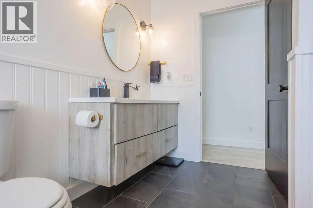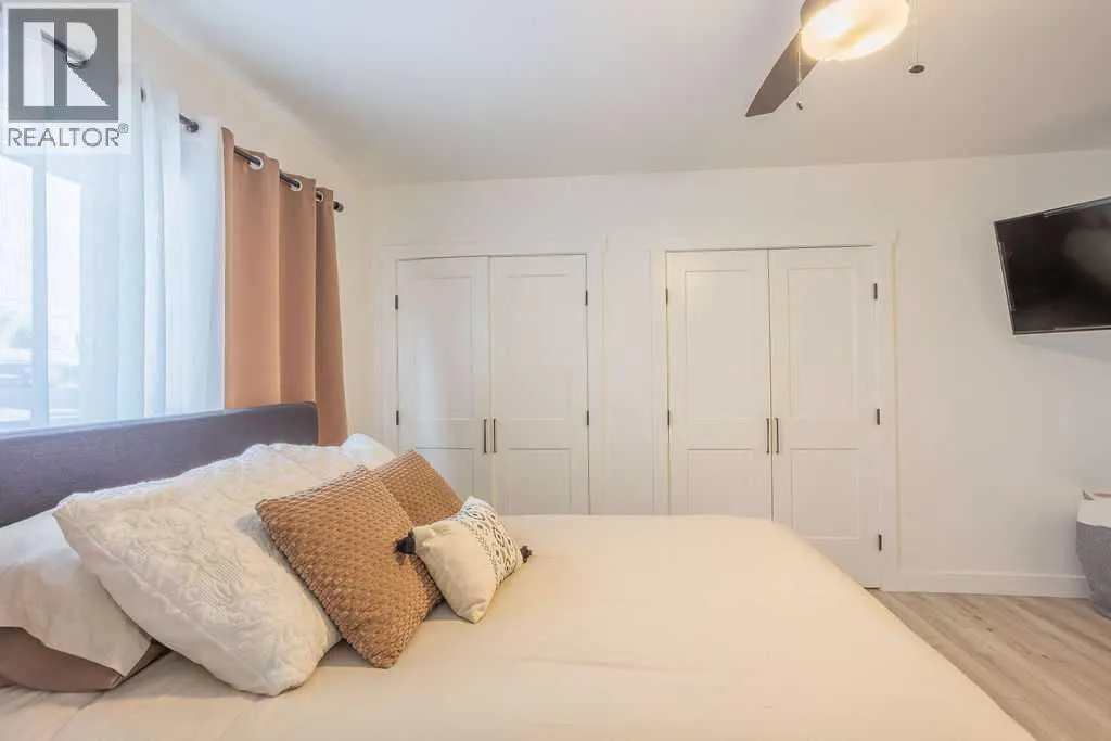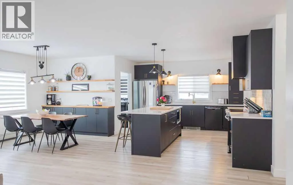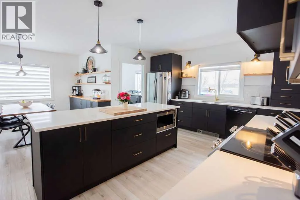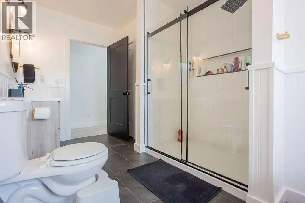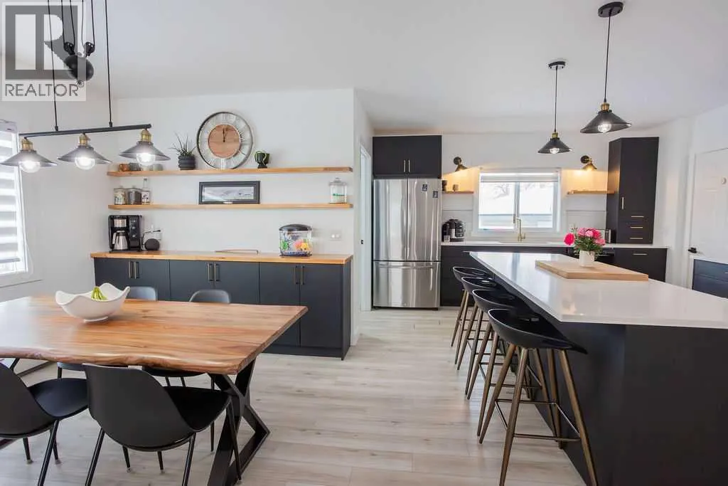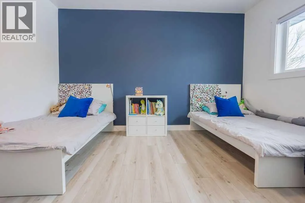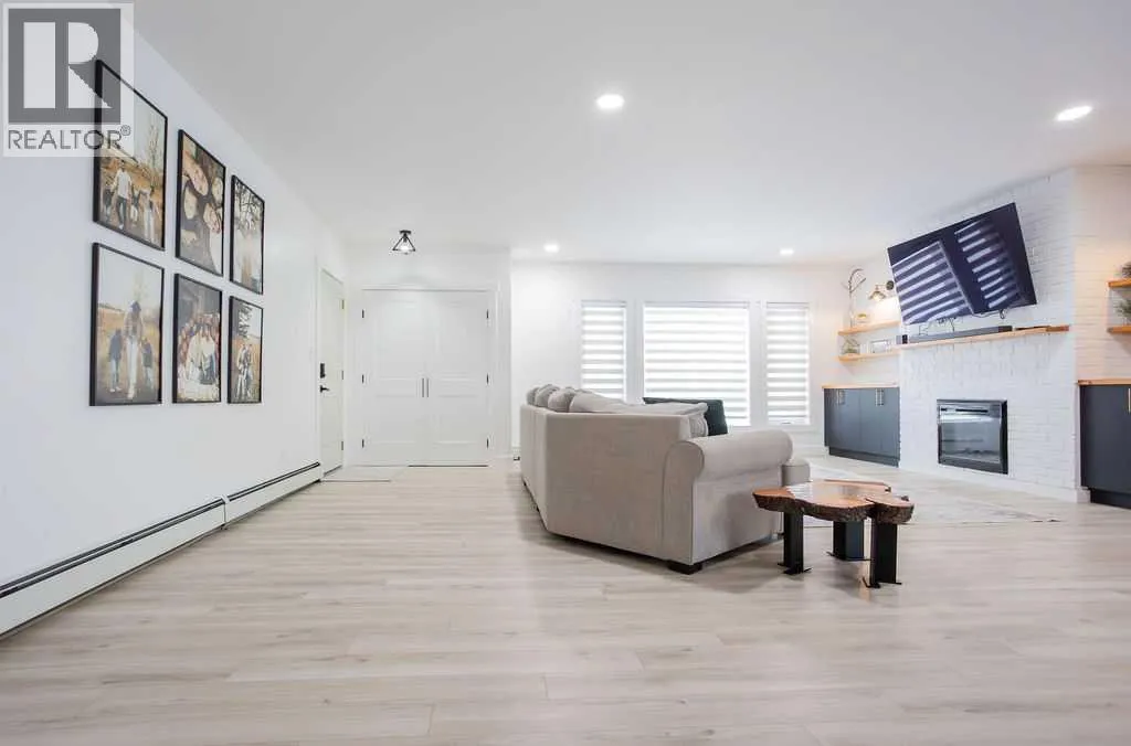 Welcome to this beautifully renovated 2,143 sq ft home situated on a fully fenced double lot with an absolutely stunning, meticulously maintained lawn. From the moment you arrive, youâll appreciate the pride of ownership that shines through both inside and out. Entering through the side door, youâre greeted by a spacious, sun-filled mudroom complete with a convenient 2-piece bathroom â the perfect everyday entry for busy households. From there, the home opens into an expansive living, dining, and kitchen area where south-facing windows flood the space with natural light. The warm, neutral color palette enhances the bright and airy atmosphere, creating a welcoming environment ideal for both relaxing and entertaining. The thoughtfully designed layout keeps public gathering spaces separate from private living areas, offering comfort and privacy when hosting guests. The kitchen is a true showpiece, featuring striking black cabinetry with elegant gold hardware, beautifully contrasted by white stone countertops and light finishes throughout. Just off the kitchen, youâll find a sun-drenched main floor laundry room for added convenience. The main level offers four generously sized bedrooms and a well-appointed 4-piece bathroom complete with a soaker tub, walk-in shower, and additional storage closet. Downstairs, the basement provides exceptional flexibility. A bright 2-bedroom space with its own private entrance, full kitchen, 4-piece bathroom, and separate laundry â ideal for extended family or potential rental income. An additional bedroom and 3-piece bathroom add even more functional space, along with a nearly completed family/recreation area ready for your finishing touches. Comfort is paramount with a new high-efficiency boiler powering a four-zone radiant heating system, ensuring consistent, even warmth and ultimate temperature control throughout the entire home. The built-in security system with owned hardware offers peace of mind. Modern, spacious, and move-in ready â with only one unfinished basement room remaining â this home combines thoughtful design, quality upgrades, and versatile living options, all set on an impressive double lot with exceptional outdoor space. (id:27476)