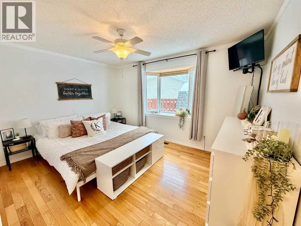 Look no further! This 3 bedroom 3 bath home is perfect for your family. It is located in a quiet neighbourhood and offers the option to use one room as a 4th bedroom. This beautiful kitchen is spacious, boasting custom cabinetry and lots of counter space. It adjoins the dining area and a cozy living room, which features an electric fireplace, hardwood floors and a big bay window. The hardwood floors complete the two upstairs bedrooms and the office. Enjoy the privacy of your own two-piece bath in the Master bedroom. The office features custom-built cabinetry thoughtfully designed to meet your organizational and/or business needs. The second bedroom is a good size and the main bathroom will stun you with its beauty and design featuring a large jetted tub, custom cabinetry and bay window that provides great natural light. The renovated basement is perfect for family gatherings, featuring an open family room was stand alone gas fireplace and an adjoining games/hobby room with a wall of built in cabinets. This room could also be used as a bedroom if needed. Attractive sliding barn doors close off the laundry room, and further down the hall you'll find a 3 pc bath and another bedroom. There is also extra storage found in the utility room and under the stairs. Venture outside and you'll enjoy your days in the private backyard, whether gardening, working in the raised flower beds or relaxing with friends around the table or fire on the concrete pad. This mature yard presents trees, shrubs, raspberries and two kinds of apple trees. The semi-attached double car garage is ideal for those cold winters and the shed is perfect for lawn or garden storage. Located in a very quiet neighborhood with little through traffic, it's great for the kids playing outside. The driveway offers ample parking, with extra space available beside the garage if needed. This house has been well maintained and also features custom blinds, some new light fixtures and some fresh paint. Make this house y our home today! (id:27476)