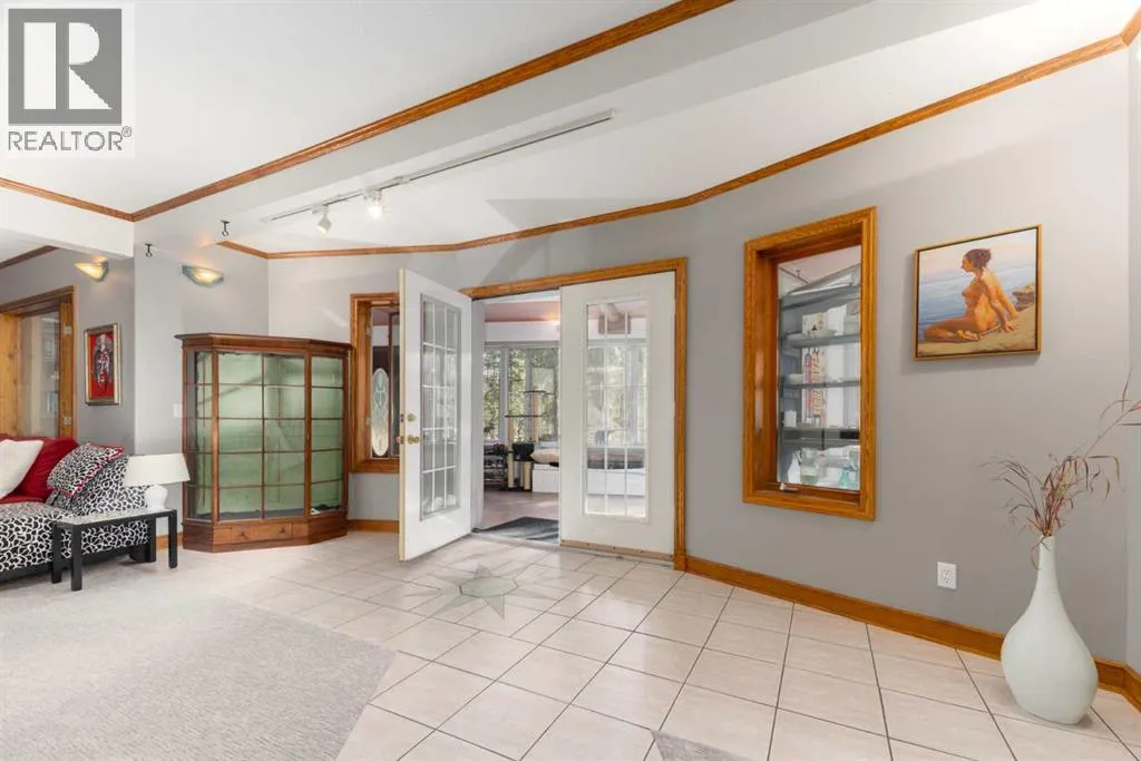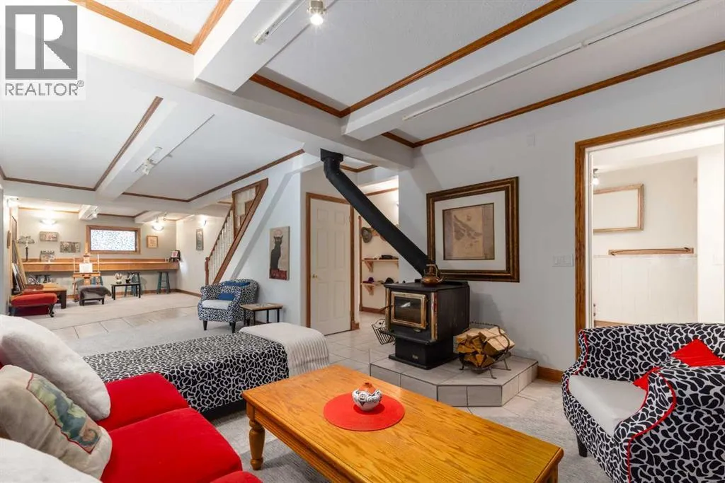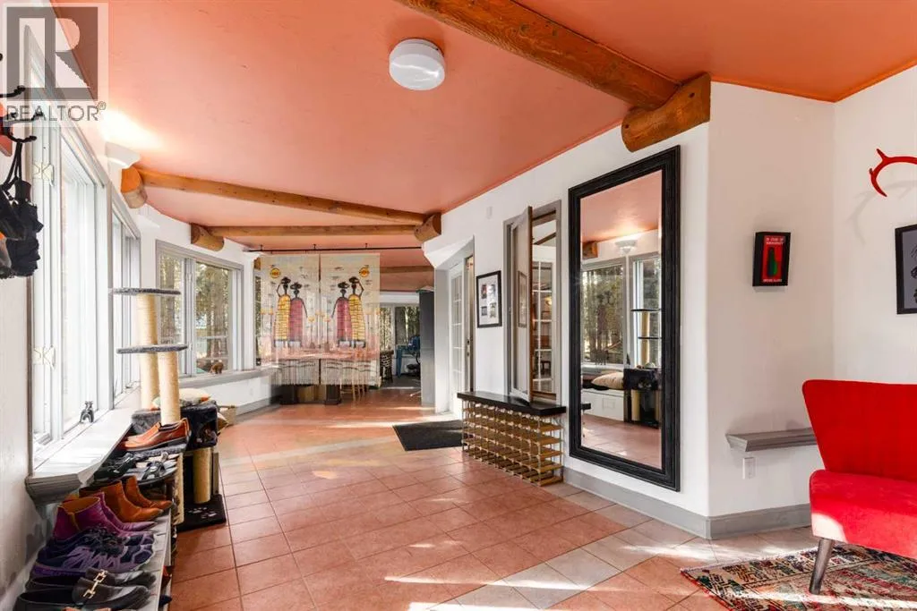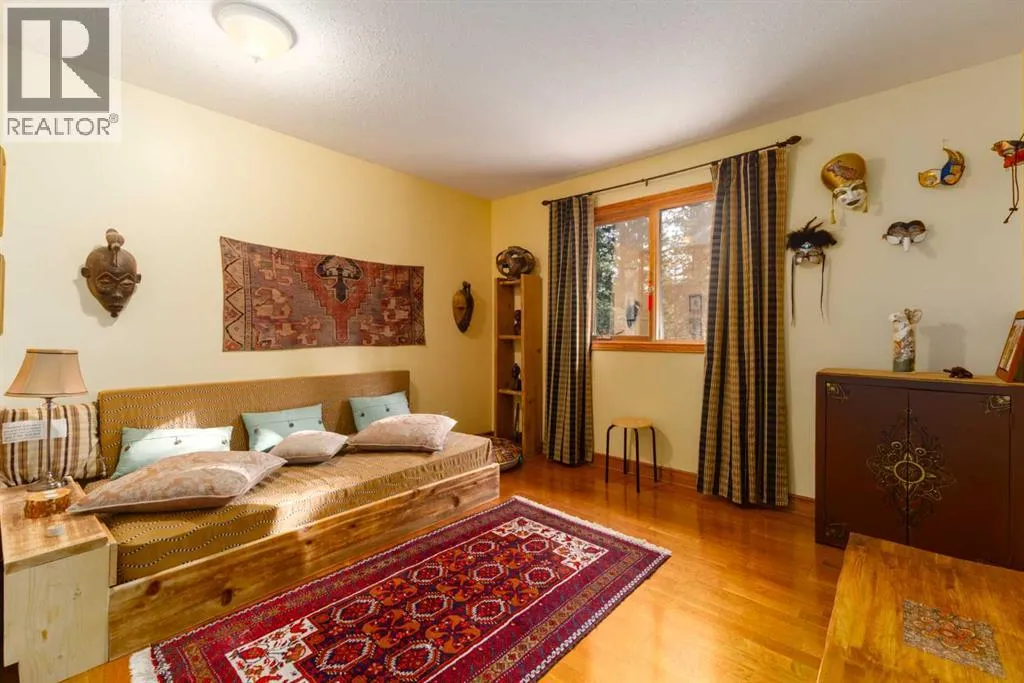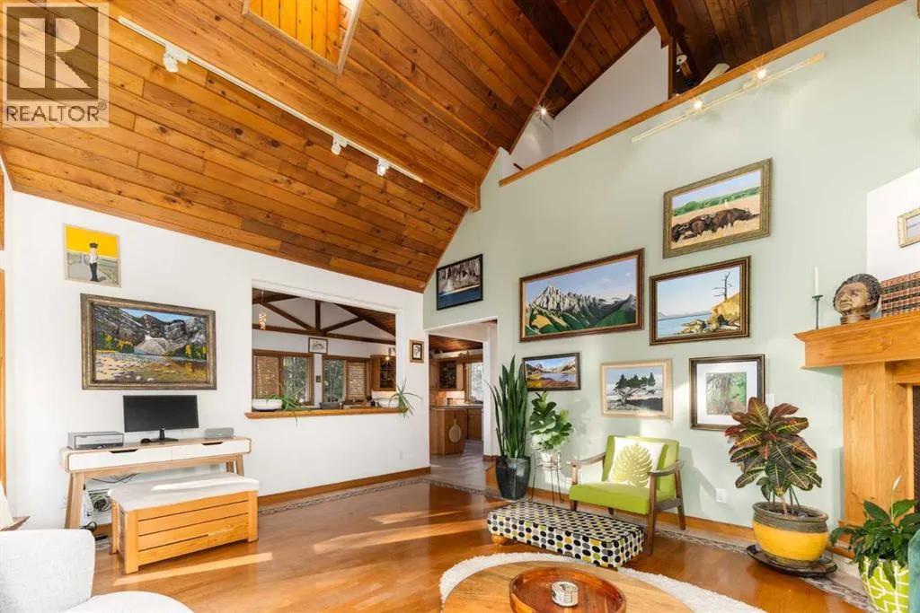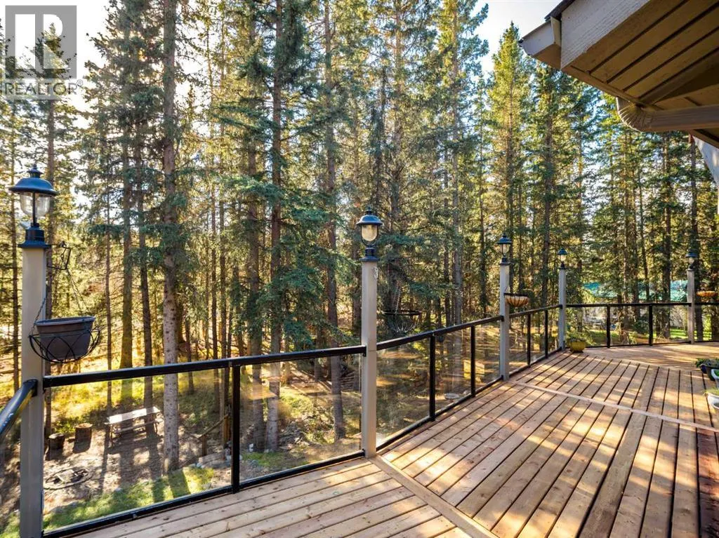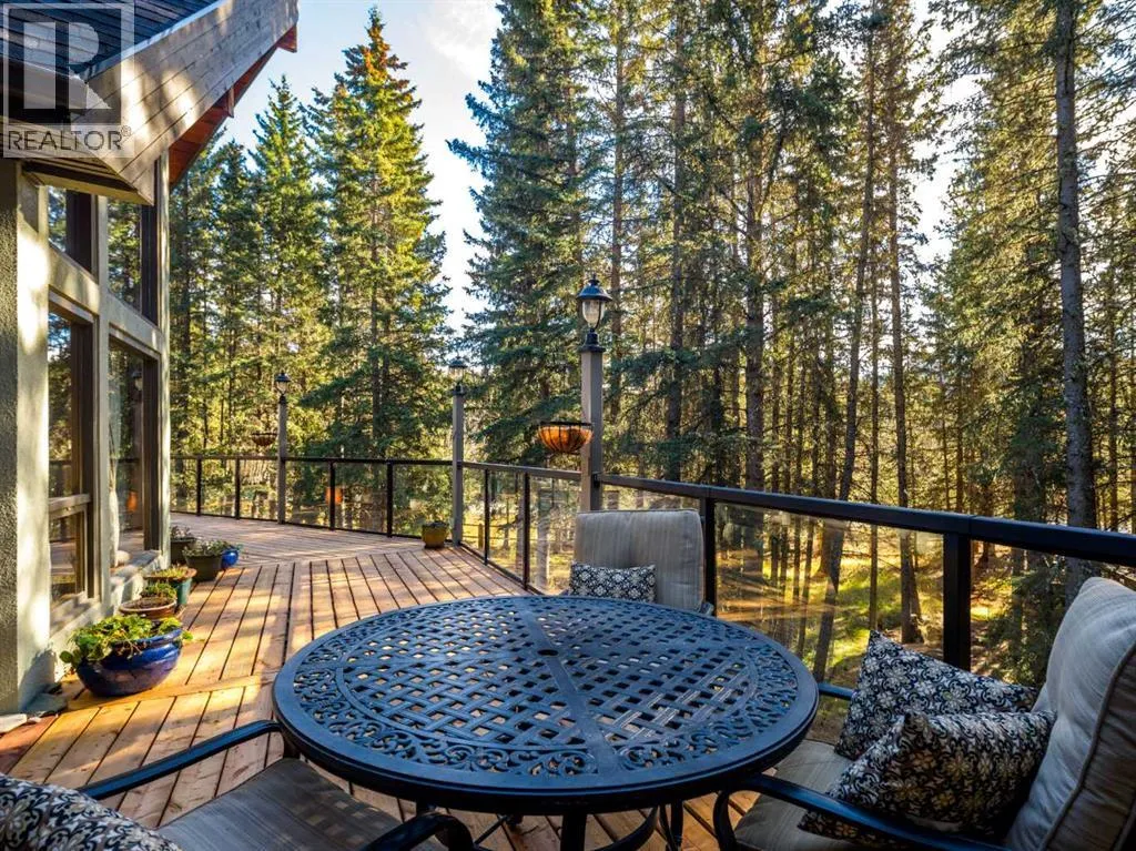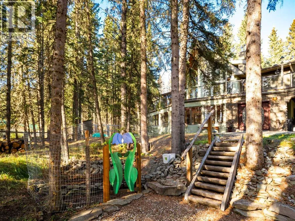 Welcome to 4 Forestry Trail in Waiparous Village â an enchanting home surrounded by trees. With over 3400 sq. ft. of total living space, this 4-bedroom, 3-bath home is full of character and light. Unlike many newer builds that feel the same, this home is anything but ordinary â whimsical, inspiring, and full of character and charm. Whether youâre an artist, nature lover, or dreamer at heart, this is a place where creativity and calm come naturally.The soaring vaulted ceilings on the main level are tall enough for the grandest Christmas tree, while expansive windows and open studio areas make this an artistâs dream. Step outside to the huge wrap-around deck and take in the serene forest views, complete with a recessed fire pit, tranquil water feature, greenhouse, wood shed, and even berry bushes. The main level features an open kitchen, walk-in pantry, large dining area, gas fireplace in the living room, 2 bedrooms, full bath, and 2 access points to the outdoors. The upstairs loft makes a perfect primary bedroom with 3 piece ensuite. The lower walk-out level features an additional bedroom, large bathroom, and 2 designated living areas and a wood stove. A unique feature is the large 4 season sunroom/foyer that makes a perfect art studio or hobby area. This room has in-floor heating, which runs through the lower and main levels, and is surrounded by windows overlooking the beautiful trees. The home is meticulously cared for with numerous updates: new roof (2020), IBC boiler (2023), UV filtration (2022), reverse osmosis, sink & dishwasher (2024), central vac (2025), new carpet (2025) and a new wooden deck (2025). Enjoy walking access to the Ghost River, fishing, and endless trail systems â all while living harmoniously among wildlife. Just 30 minutes to Cochrane, 15 to Ghost Lake, and 40 to the mountains. A truly whimsical, inspiring home that stands apart from the rest. (id:27476)
