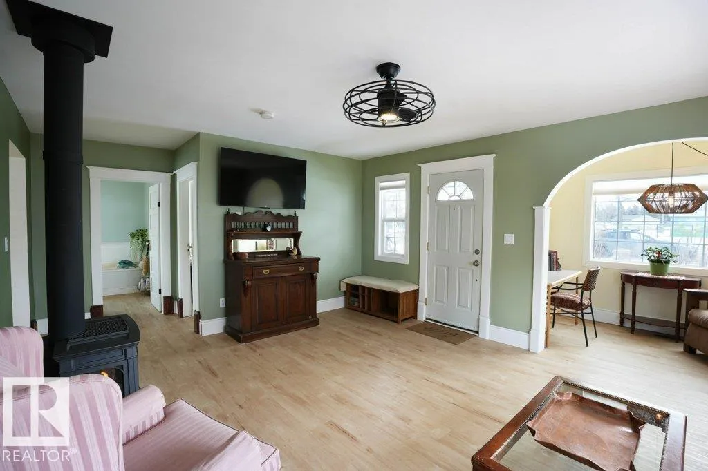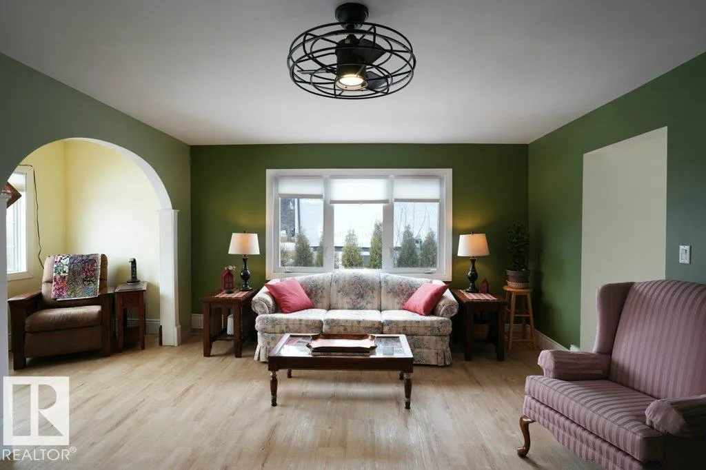 Charming 1½-storey character home in the heart of Warburg, perfectly located directly across from Central Park! This inviting home offers 3 bedrooms, main floor laundry, and a warm, welcoming interior full of charm and personality. Many upgrades have been completed over the years, blending modern comfort with timeless character. Step outside to a beautifully treed yard surrounded by mature lilac bushes, caragana hedges, cedar and blue spruceâyour own private, peaceful retreat. Enjoy morning coffee on the welcoming front porch and a functional layout ideal for everyday living. Plenty of space to relax, garden, or entertain. Whether you're starting out, downsizing, or looking for small-town charm, this property offers incredible value and lifestyle. Donât miss your chance to own this unique gem in a quiet, friendly community! (id:27476)