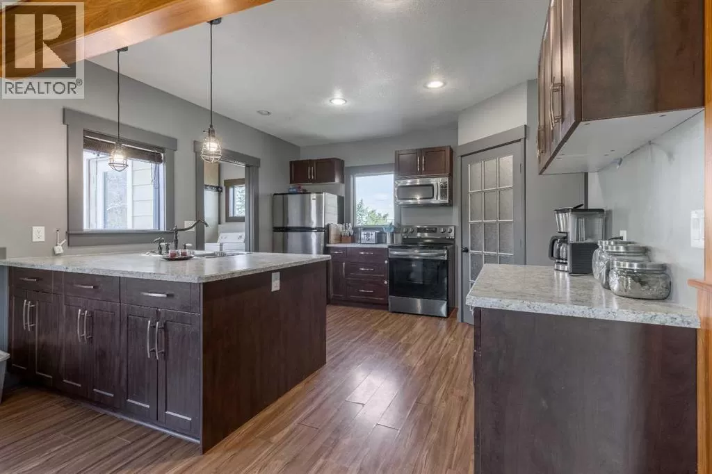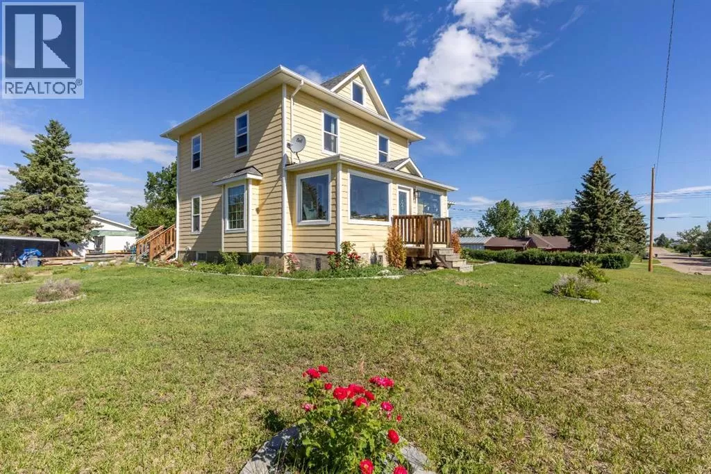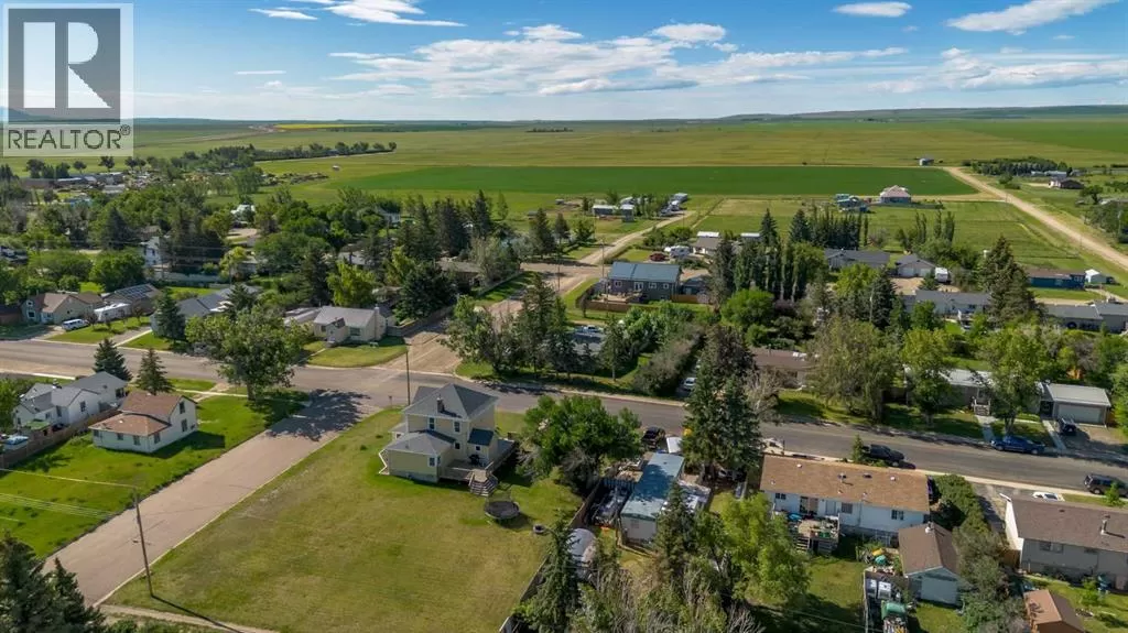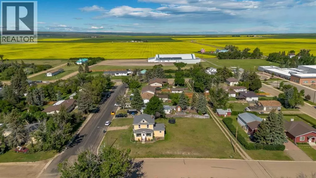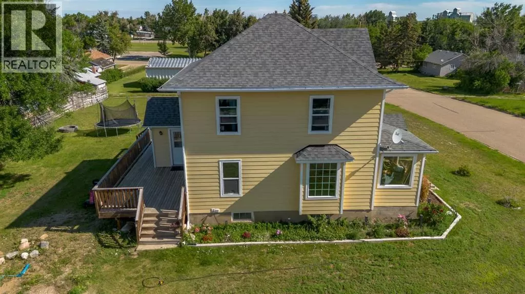 Welcome to this charming and beautifully updated 5-bedroom home in the heart of Warner, Alberta! Situated on a spacious third of an acre lot surrounded by mature trees, this property boasts incredible curb appeal with the beautiful yellow siding, abundant off-street parking, and the perfect blend of character and modern convenience. Step inside to discover an inviting open-concept kitchen, dining, and living area, ideal for entertaining or family living. The kitchen features stainless steel appliances, ample cabinetry, and a large pantryâoffering both style and function. With five generous bedrooms, there's plenty of space for a growing family, guests, a home office or all of the above! The full bathroom is bright and well-appointed, and the basement offers extensive storage options and even more potential to personalize the space. You'll love the updated flooring and fresh paint throughout, enhancing the homeâs timeless charm while providing a modern touch. This is small-town living at its bestâspacious, stylish, and full of warmth. Donât miss your chance to make this special property your new home! (id:27476)