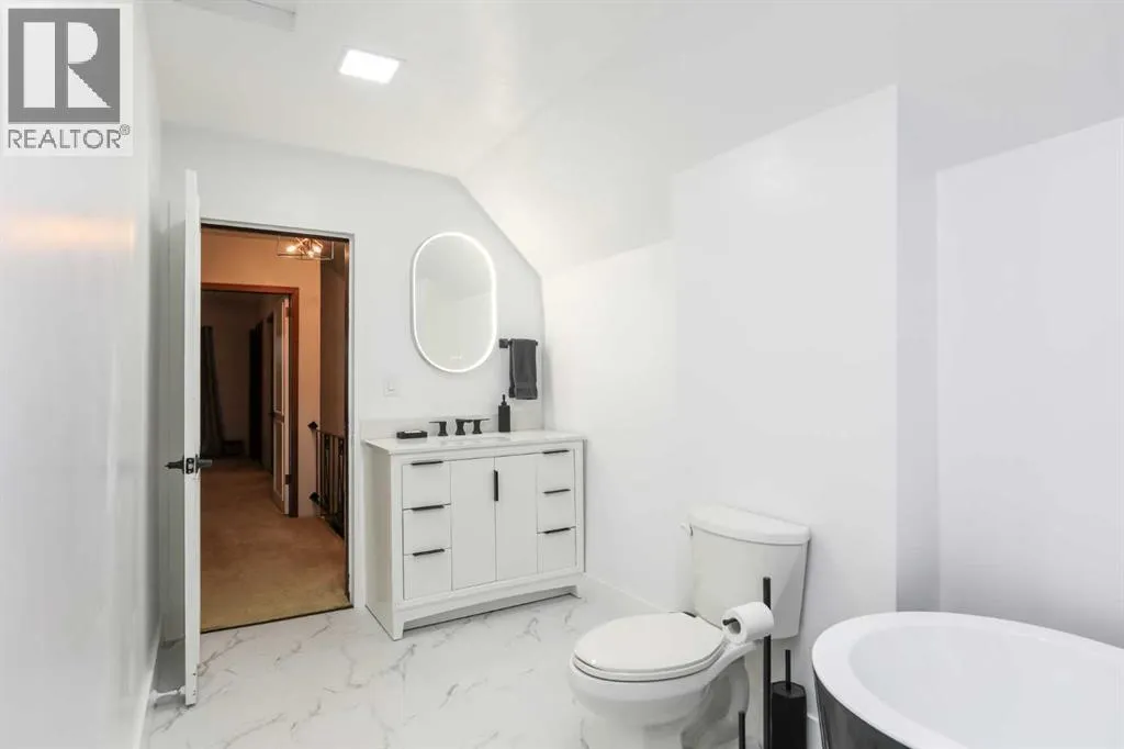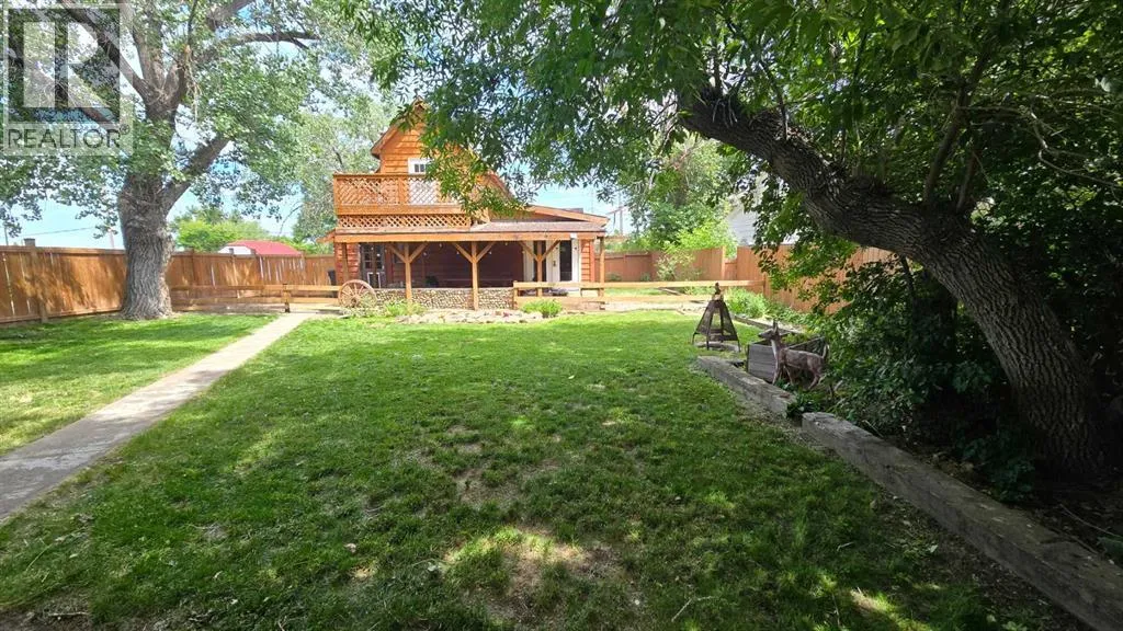 This beautifully updated two-storey home has been thoughtfully renovated to maintain the original character and charm of the property, offering nearly 2,100 sq ft of comfortable living space on a desirable corner lot in the welcoming community of Warner. Surrounded by mature trees, the property features a covered patio and lower wood deck â ideal for outdoor relaxation and entertaining. The expansive backyard includes two oversized sheds, providing ample storage with the potential to convert one into a garage with convenient street access. The large yard is perfect for gatherings with family and friends. Inside, youâll find a fully renovated kitchen complete with stainless steel appliances, updated plumbing, stylish vinyl plank flooring, and all-new lighting throughout the home. The spacious dining area opens to a warm and inviting living room, where you can cozy up by the wood-burning fireplace. A generous games room on the main floor offers flexible use â it could easily function as an office with its own entrance or be reimagined as an additional bedroom. Throughout the home, original wood details and thoughtfully preserved finishes add to the homeâs timeless appeal. Upstairs, youâll discover two expansive bedrooms, a brand new, fully renovated 4-piece bathroom, and a second-storey balcony that provides a peaceful spot to unwind. The basement includes a large games room, an additional bedroom, and a half-bath, with plumbing already in place and ready for the addition of a full bathroom if desired. Recent updates include select windows and doors replaced in the past six years, a newer furnace and hot water tank, and a roof that was replaced approximately 10 years ago. Located just a few blocks from the local bakery, and with Warner School (offering early learning through Grade 12) nearby, this property combines small-town living with modern comfort. If youâre looking for a unique and inviting home in a close-knit community, contact your REALTOR® today to arrange a private showing! (id:27476)