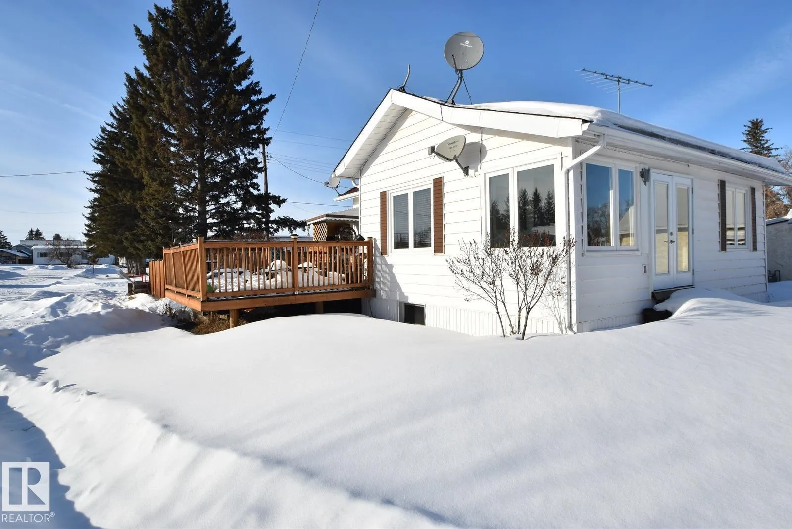 Affordable Small-Town Living with serene views! Welcome to this cozy home in the Village of Waskatenau! Offering 2 bedrooms plus a den, a bright sunroom at the front entry, and a spacious living room with a wall-mounted electric fireplace and large windows. The kitchen opens to a south-facing deck overlooking a ravine across the road, where you can enjoy your morning & evening sunshine! The primary bedroom features patio doors leading to a private, fully fenced backyard. Additional highlights include an attached carport to park in, and a basement with laundry, utilities, and a large windowed room suitable for future bedroom or recreation space. The Village of Waskatenau backs onto the Iron Horse Trail. Has most amenities nearby including a K-12 school and arena + more. Conveniently located one hour NE of Edmonton at the junction of Hwy 28 & Hwy 831. (id:27476)