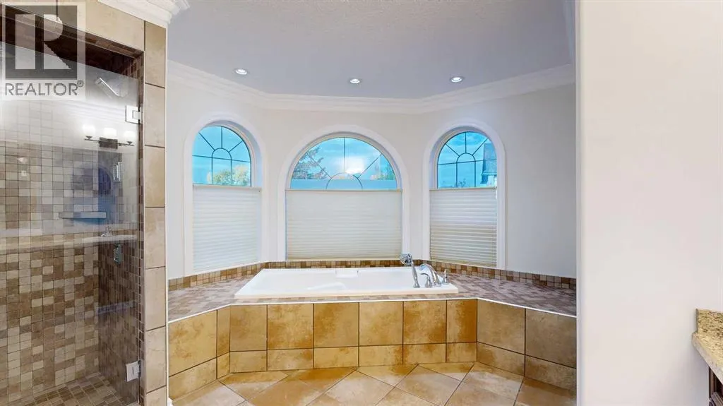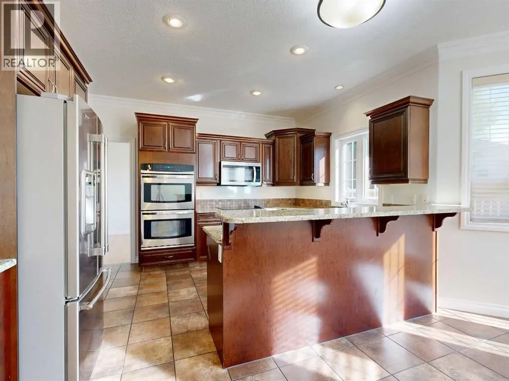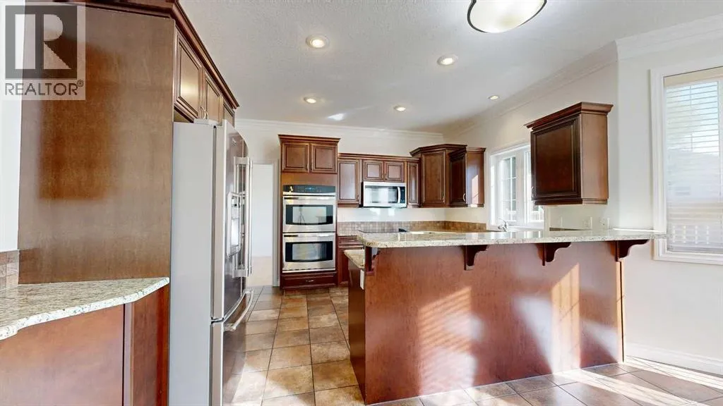 Prepare to be captivated by this exquisite, custom-built residence offering 2,200+ sq ft of unparalleled elegance and comfort in the sought-after community of Wedgewood. Step through a regal entrance featuring a stunning tiled foyer and a dramatic staircase highlighted by an intricate wrought iron railing. The main level invites relaxation and entertaining with a formal living room centered around a cozy gas fireplace and showcasing hardwood flooring.The heart of the home is the chef's kitchen, a culinary dream equipped with: granite countertops, two built-in wall ovens, flat top stove, sleek under-cabinet lighting, practical eating bar, and stainless steel appliances.An adjacent, bright dining area flows seamlessly through to the large deck and backyard, perfect for memorable gatherings. Convenience is key with valuable main floor office space, a dedicated laundry area with sink & ample countertops and separate, 2- piece powder room.Ascend to the upper level to discover the lavish primary bedroom, a true sanctuary featuring its own gas fireplace for a touch of romance. The suite includes a huge walk-in, customized closet offering exceptional storage and organization. The accompanying luxurious spa-inspired ensuite offers the ultimate in relaxation with a jetted tub, a tiled, jetted shower, double sinks and a private water closet. Main bathroom, hall closets and three spacious additional bedrooms complete the upper floor, providing ample space for family or guests.The fully developed basement is an entertainer's paradise, boasting a stylish entertainment bar, large, private fifth bedroom with a roomy closet, and well-appointed full bathroom.For year-round comfort, both the basement and the oversized double garage feature in-floor heating. For the summer heat, there is air conditioning to help you stay cool. Interior was just freshly painted making it truly move-in ready. This home isn't just a house; it's a lifestyle, offering grandeur living at a truly reas onable price. Don't miss the chance to make it yours! (id:27476)