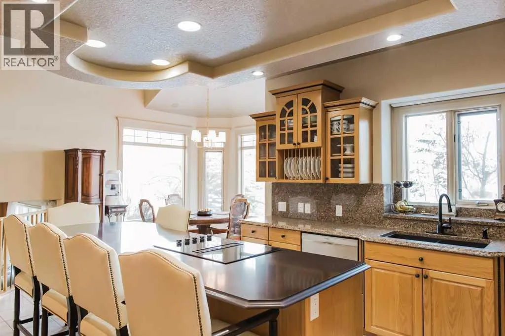 This 5 level split home is located on a great lot in Wedgewood. The property is beautifully landscaped with a very private backyard. The top level has a master suite including a large bedroom, soaker tub, double sinks, walk in shower and water closet. Accompanied by a large walk in closet. This level also includes a nice landing/hallway leading to a 3 piece bathroom, 2 good sized bedrooms and a laundry room that includes nice cabinetry, sink, folding counters and new appliances. The 2nd level has a formal dining area, breakfast dining area, kitchen and living room. The 3rd level has a spacious entry, powder room, entry closet, living room and office. The 4th level has a games room hang out area, tv/projector area, gym and bathroom. The 5th level has been converted to a bedroom but could easily be used for its previous use of a pool table games room or could be a great in law suite. The garage has a drain and is heated. The landscaping is stunning and low maintenance and comes with an irrigation system. Overall the home has a unique but high functioning floor plan with high end finishes. Should be viewed to be appreciated. Owner is a licensed real estate agent in the province of Alberta. (id:27476)