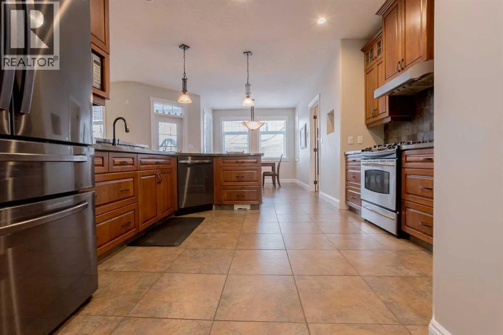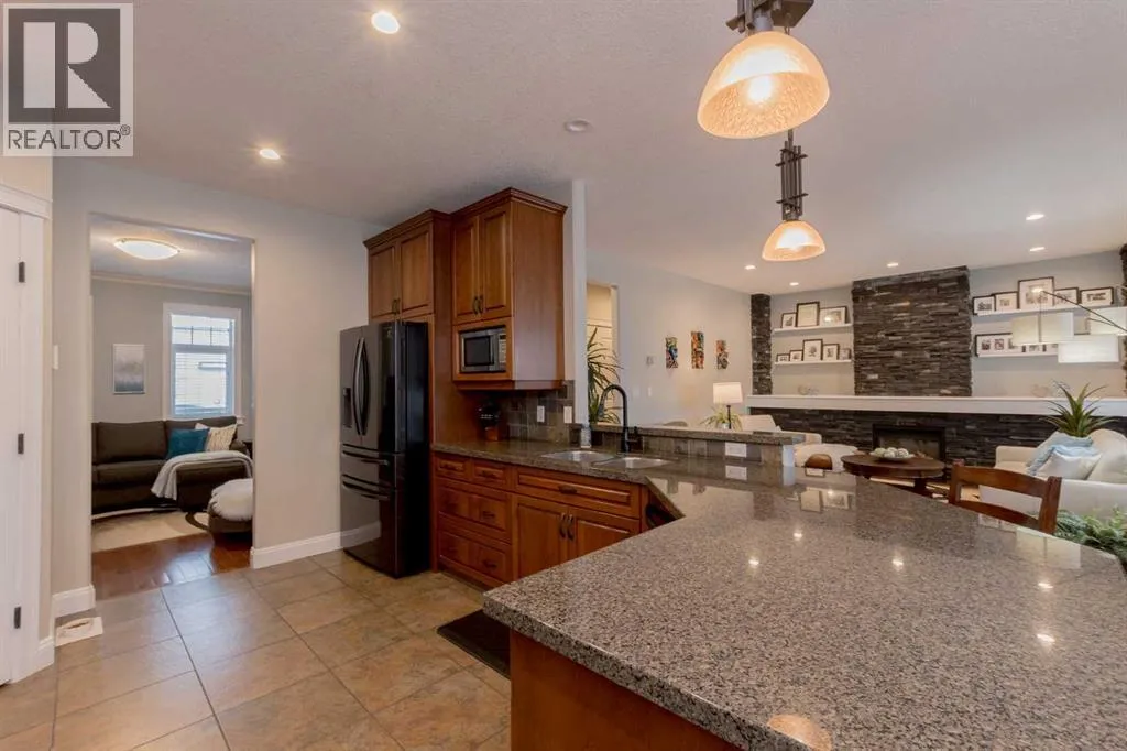 This spacious, custom-built home showcases exceptional craftsmanship and high-quality finishes throughout, starting with an ICF block foundation, rich hardwood floors, and heated tile flooring in the kitchen and bathrooms. The thoughtfully designed main floor features a stunning chefâs kitchen with granite countertops, a formal dining room, an inviting living room with fireplace, a dedicated office, and a beautiful primary bedroom complete with a large walk-in closet and a luxurious ensuite offering a tiled walk-in shower and relaxing soaker tub. Above the heated triple-car garage is a fully finished loft with its own bathroom, perfect for guests, a studio, or additional living space. The fully developed basement is ideal for entertaining, boasting a wet bar, two bedrooms with a Jack-and-Jill bathroom, a spacious recreation area with projector, and an additional large den perfectly suited for a home gym. Outside, the immaculate yard is enhanced by a brand-new irrigation system, elegant water fountain, a large separate RV parking pad on the north side of the home, and a covered deck at the back for year-round enjoyment. Complete with central air conditioning and central vacuum, this impressive property is truly a must-see, offering countless features and qualities that must be experienced in person to be fully appreciated. (id:27476)