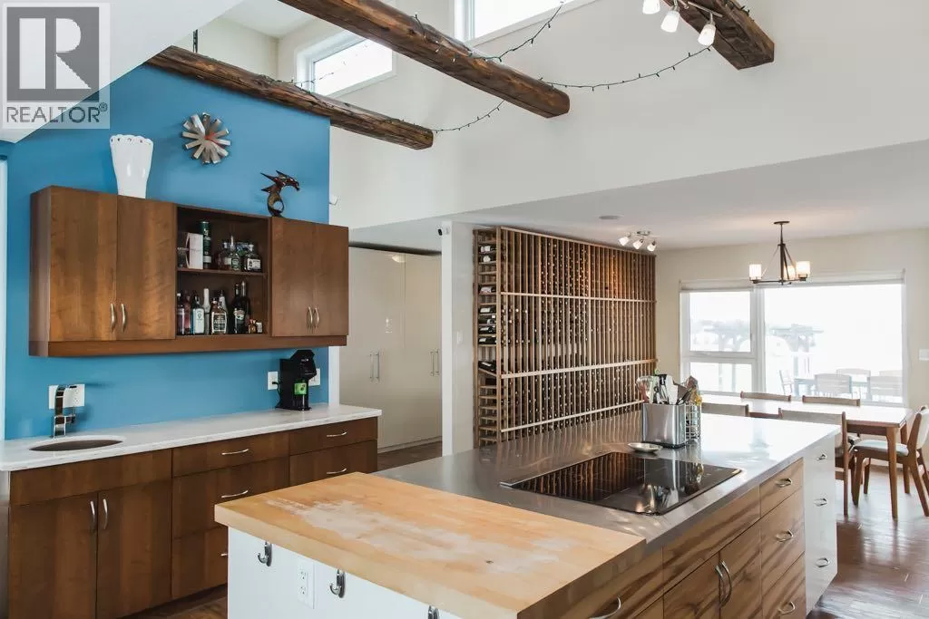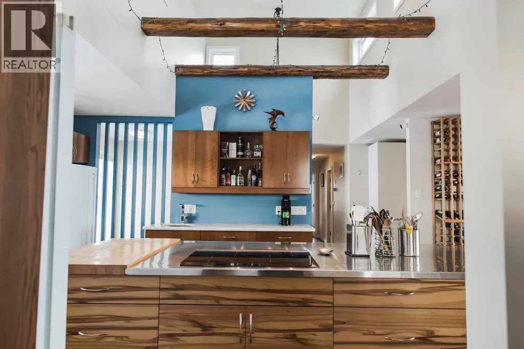 This stunning 1,761 sq. ft. custom-built Fusion home sits on 9.2 acres of serene countryside, offering breathtaking mountain views, ultimate privacy, and gorgeous sunsets. Designed with both luxury and functionality in mind, it features 5 spacious bedrooms and 3 bathrooms, including a primary suite with a spa-like 5-piece ensuite and walk-in closet. The homeâs charm is enhanced by real wood beams, triple-pane windows, power blinds, and a cozy window seat with wood-burning fireplace. The chefâs kitchen boasts Corian, stainless steel, and butcher block countertops, an induction cooktop, built-in oven, wine rack, large walk in pantry with ample storage, tons of natural light, all complemented by stylish and durable vinyl plank flooring. Additional highlights include an ICF foundation for superior energy efficiency, in-floor heating in the bathrooms and laundry room, a pre-wired sound system, and a heated garage with an extra-long bay. Outdoor enthusiasts will appreciate the 30-amp RV plug, natural gas bbq hook up, 28x12 shed on skids for extra storage, and a beautifully landscaped yard with an irrigation system and 1,000L tank. Well report available, tank and field septic. This exceptional property is the perfect blend of modern comfort and peaceful country livingâschedule your private showing today! (id:27476)
