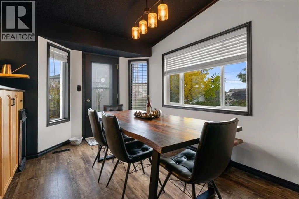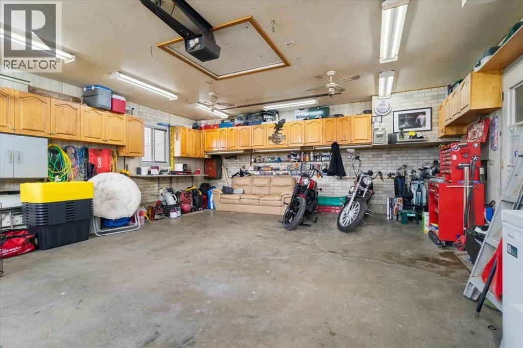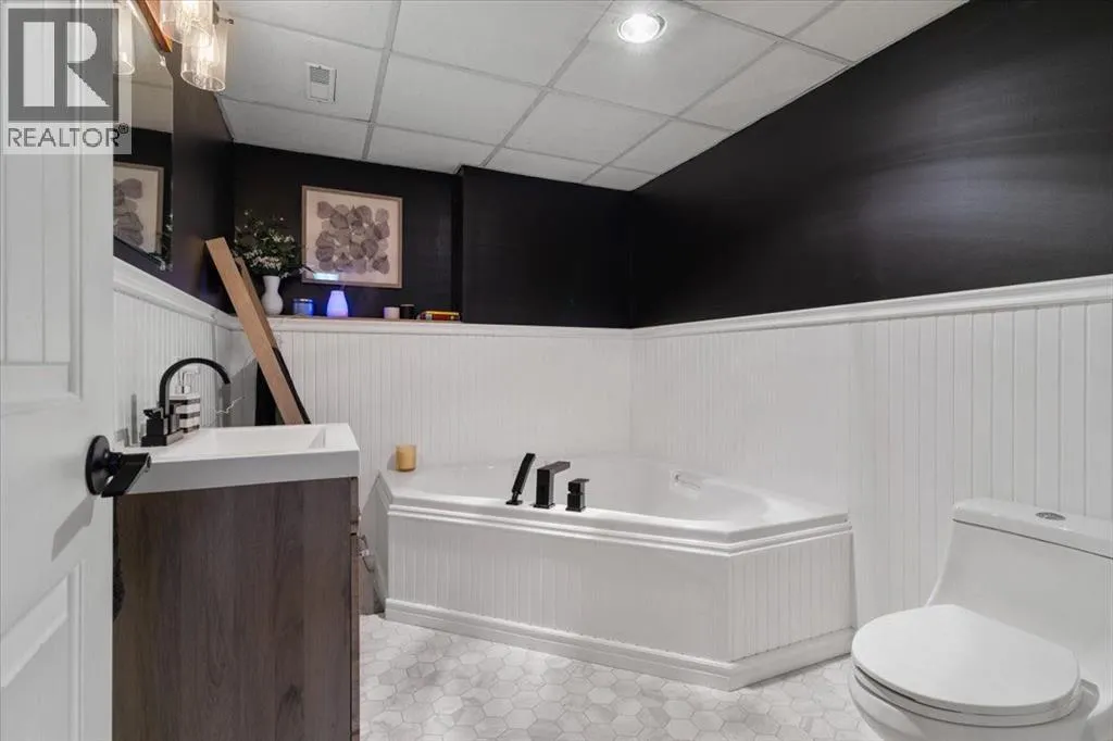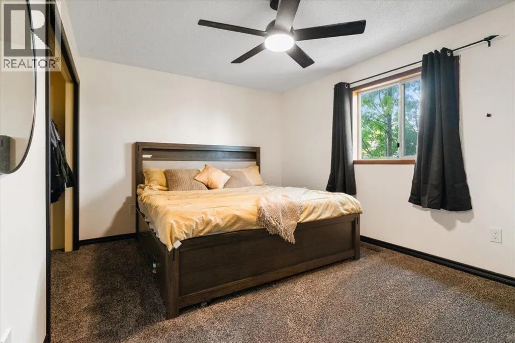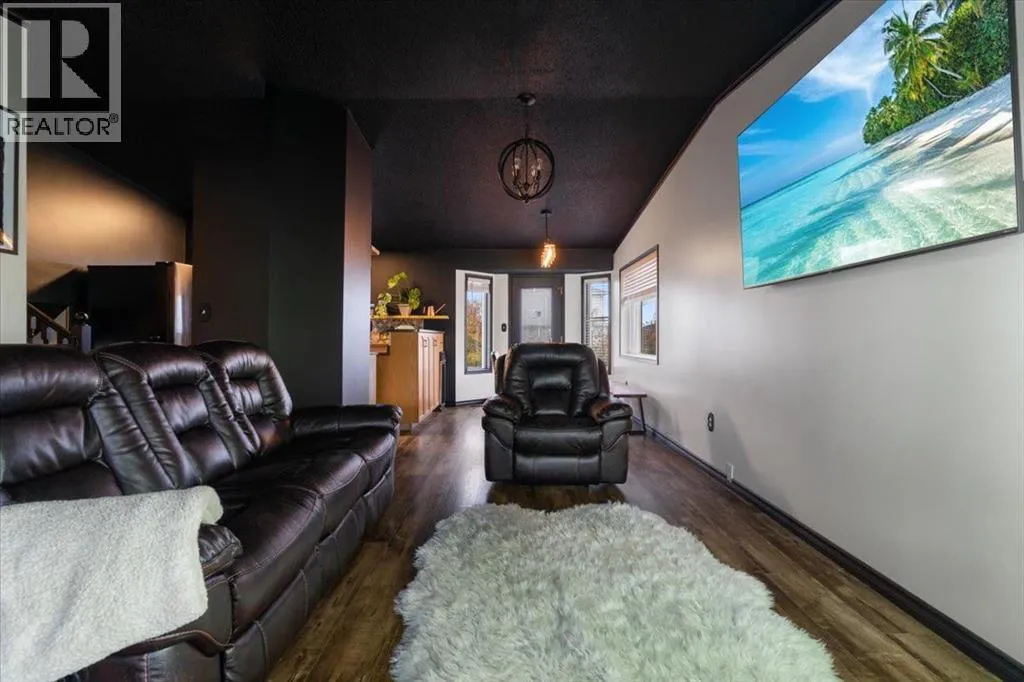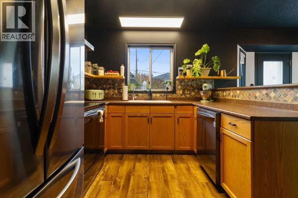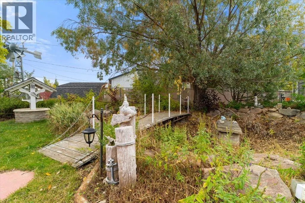 This spacious and updated 4-level split sits on two beautifully landscaped lots. Featuring two garages, two driveways, and RV parking. The main level is fully renovated with vinyl plank flooring, and modern dark ceilings and trim giving the whole space a modern industrial feel. The kitchen includes newer modern appliances, open wood shelving, a pantry, and breakfast bar. Upstairs, youâll find three bedrooms with brand-new carpet, a 3-piece ensuite, and another fully renovated 3-piece bathroom with a sleek stand-up shower. The third level has a cozy rec room, the fourth bedroom, a large laundry room, and a stunningly renovated third bathroom with a deep soaking tub. The basement adds even more living space with a third living room and a large furnace/storage room. Outside is truly something special: beautifully landscaped like a private oasis, it includes brick pathways, mature trees, a firepit area, water features, a charming bridge, a powered gazebo, and a powered garden shed. With taps throughout the yard and raised beds ready to go, it's made for easy outdoor living. Tucked away on a quiet, low-traffic street, the home backs onto an easement with a direct path to a nearby Kâ3 school, ideal for families looking for both space and peace of mind. Other big ticket updates include: central air, high effiecency furnace, new shingles (2022) newer hot water tank, and some vinyl windows. (id:27476)