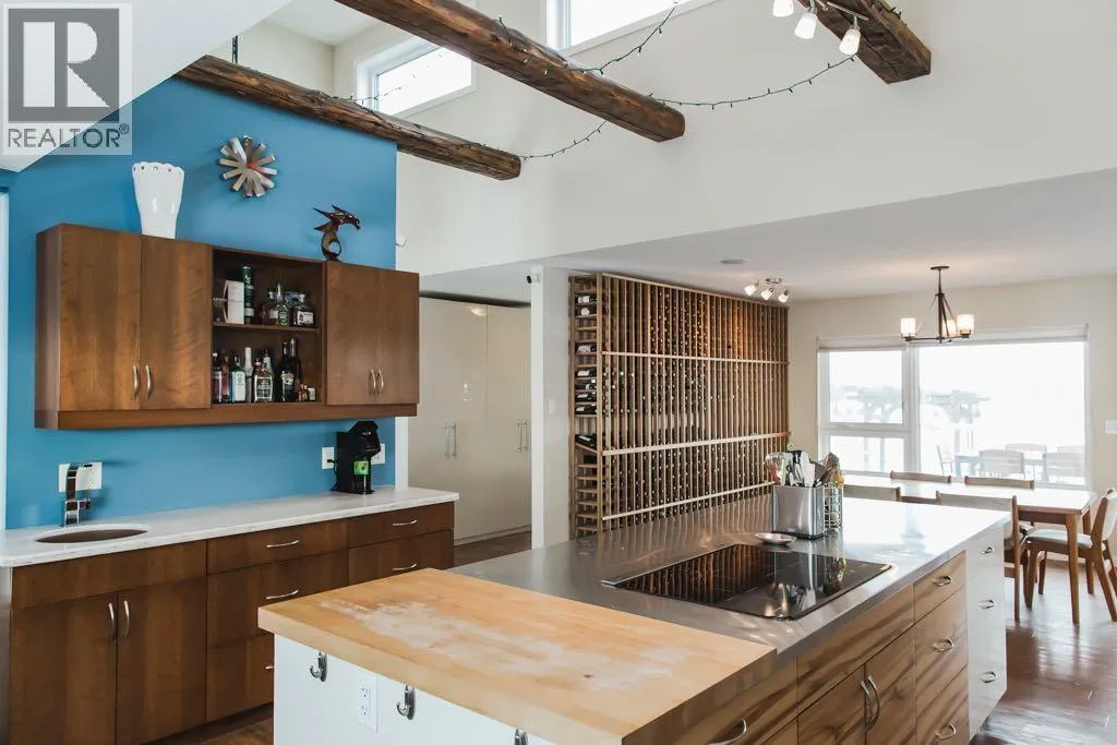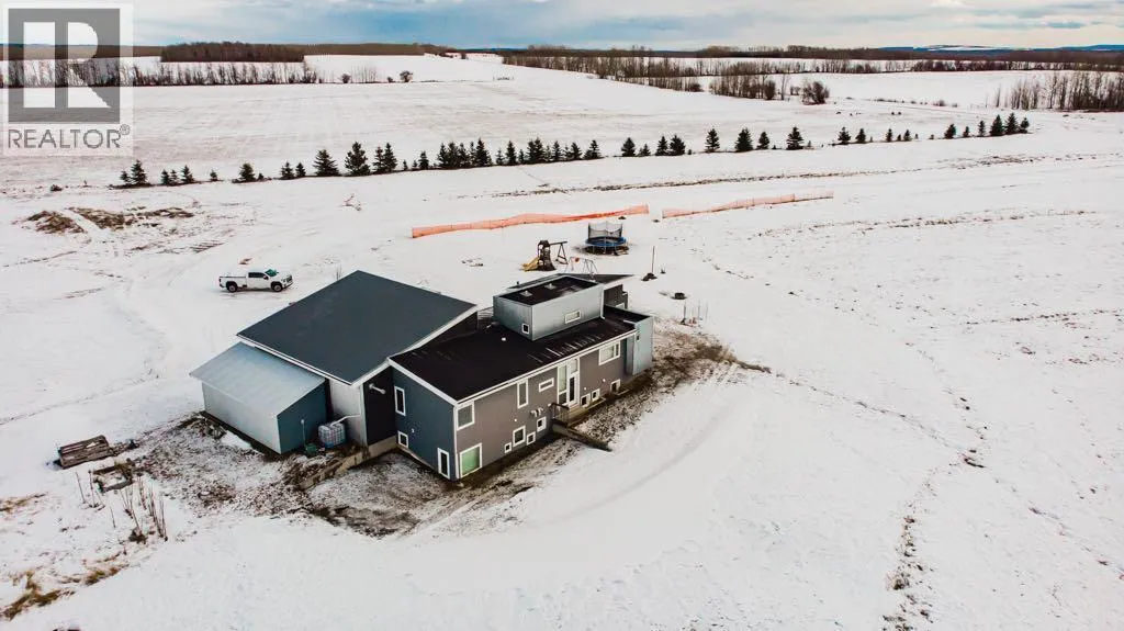 This stunning 1,761 sq. ft. custom-built Fusion home sits on 9.2 acres of serene countryside, offering breathtaking mountain views, ultimate privacy, and gorgeous sunsets. Designed with both luxury and functionality in mind, it features 5 spacious bedrooms and 3 bathrooms, including a primary suite with a spa-like 5-piece ensuite and walk-in closet. The homeâs charm is enhanced by real wood beams, triple-pane windows, power blinds, and a cozy window seat with wood-burning fireplace. The chefâs kitchen boasts Corian, stainless steel, and butcher block countertops, an induction cooktop, built-in oven, wine rack, large walk in pantry with ample storage, tons of natural light, all complemented by stylish and durable vinyl plank flooring. Additional highlights include an ICF foundation for superior energy efficiency, in-floor heating in the bathrooms and laundry room, a pre-wired sound system, and a heated garage with an extra-long bay. Outdoor enthusiasts will appreciate the 30-amp RV plug, natural gas bbq hook up, 28x12 shed on skids for extra storage, and a beautifully landscaped yard with an irrigation system and 1,000L tank. Well report available, tank and field septic. This exceptional property is the perfect blend of modern comfort and peaceful country livingâschedule your private showing today! (id:27476)