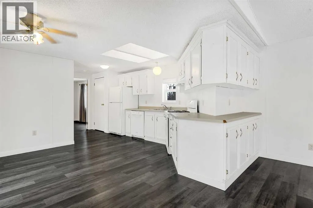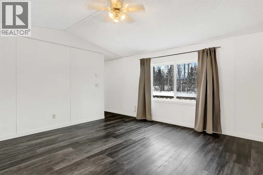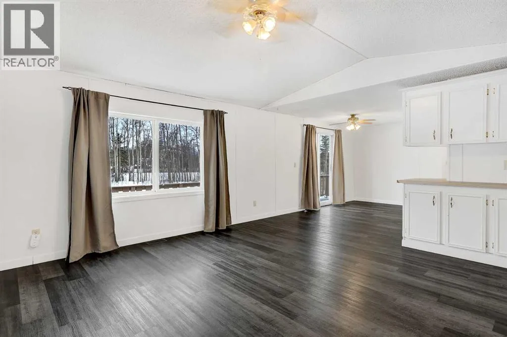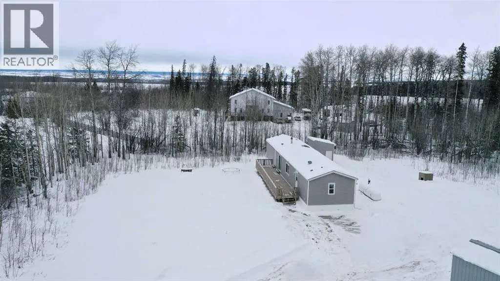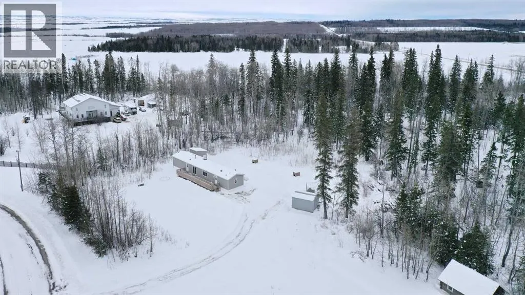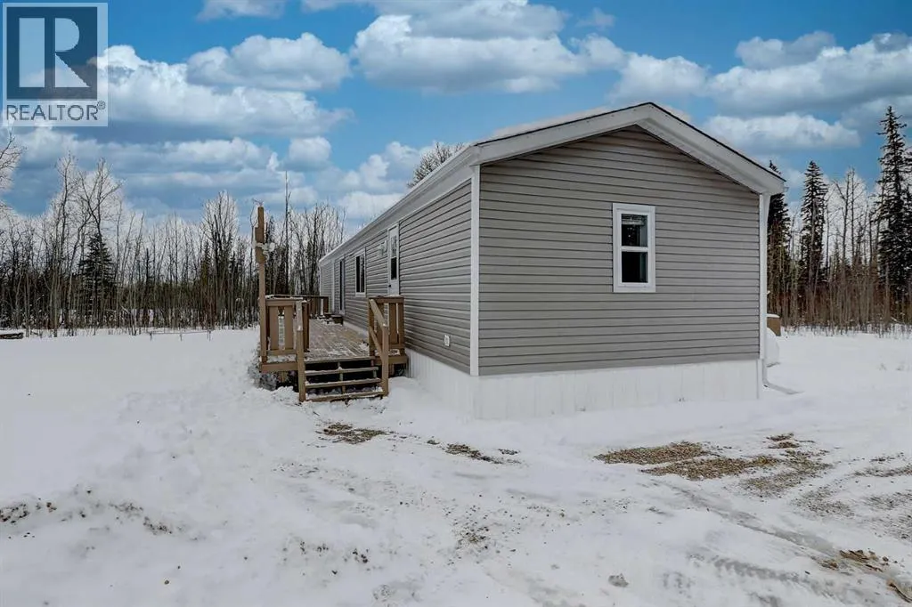 Escape to the peace and privacy of Mountain Side Estates, just 20 minutes west of Grande Prairie. Situated on 5.44 beautifully treed acres, this well-maintained manufactured home offers the perfect blend of country living and modern updates. Featuring 3 bedrooms and 2 full bathrooms, including a private ensuite, this home is thoughtfully laid out for comfortable everyday living. The interior showcases a no-carpet design with newer flooring, fresh paint, updated baseboards, siding, and skirting â creating a clean, move-in-ready feel throughout. The kitchen is equipped with a desirable gas range, ideal for those who love to cook and entertain. Step outside to the massive front deck, built in 2020 â a standout feature perfect for hosting gatherings, summer BBQs, morning coffee, or simply enjoying the surrounding nature and quiet setting. Major infrastructure updates provide peace of mind. The property features a drilled well (2020) that feeds an above-ground 9-cubic-meter cistern housed in an enclosed pump house. A 4-stage septic system (installed in 2020) adds long-term reliability. The home sits on screw pile foundation and includes heat-traced plumbing â an important upgrade for Alberta winters. The dryer was replaced approximately two years ago. The mostly treed lot offers excellent privacy while still providing usable space for recreation, gardening, or future development. A well-built shed with sliding door adds convenient storage for tools, toys, or equipment. If youâve been looking for an affordable acreage with key mechanical upgrades already completed â all within easy driving distance to Grande Prairie â this property checks the boxes. Lots of room to build a future garage or shop and there is some good flexibility with CR-4 zoning for animals! (id:27476)